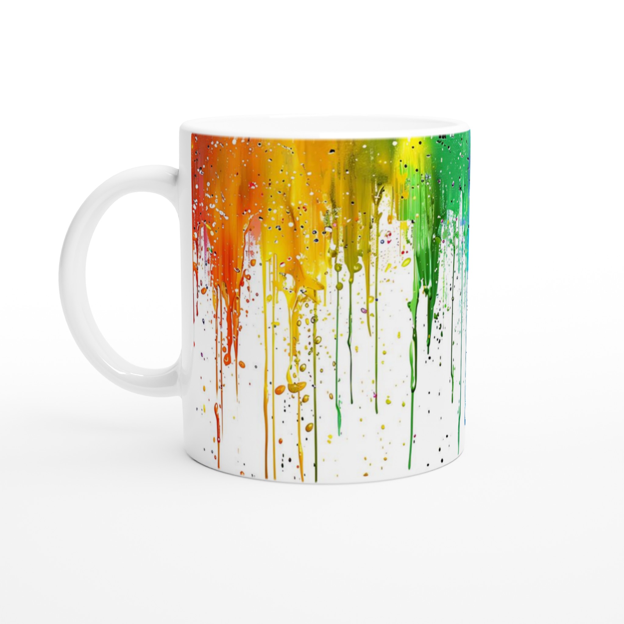 Inspirerad av en exploderande färgpalett, tillåter denna mugg dig att uttrycka din unika stil. Välj mellan en rad levande färger för att hitta den som bäst matchar din personlighet eller inredning. Den blanka vita ytan ger ett skarpt och levande tryck som verkligen sticker ut, oavsett om det är en personlig design, ett roligt citat eller en present till någon du tycker om.