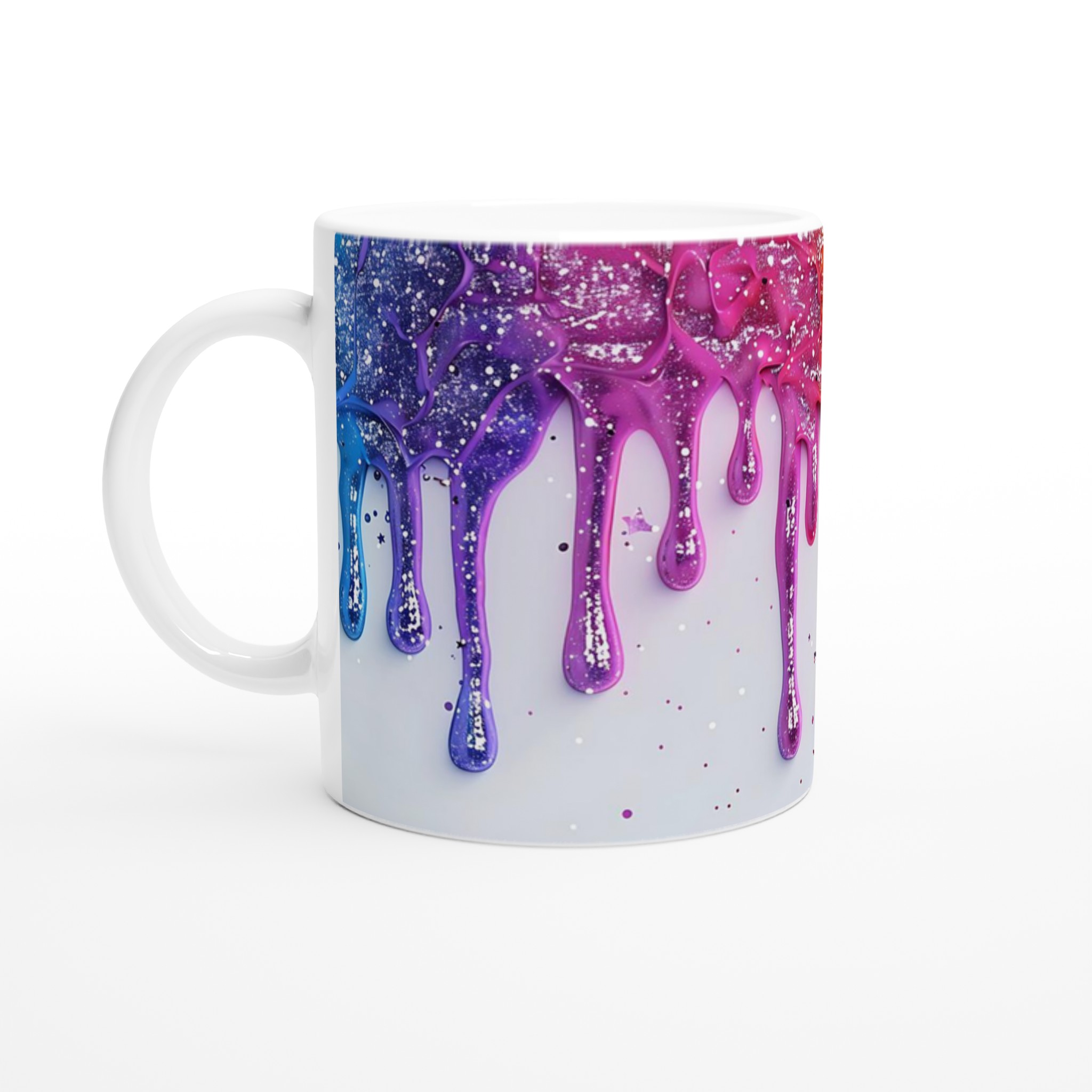 Låt varje klunk bli en färgsprakande upplevelse! Vår ”Färgexplosion” keramiska mugg är prydd med en dynamisk regnbågsdesign, smyckad med glittrande stänk som fångar ljuset och din uppmärksamhet. Denna mugg förvandlar din dryck till en fest för ögat och är perfekt för dig som älskar lekfulla mönster och en touch av glamour. Välj bland en palett av livfulla färger som låter dig uttrycka din unika stil: Ceramic White, Ceramic Yellow, Ceramic Pink, Ceramic Green, Ceramic Red, Ceramic Black eller Ceramic Blue.