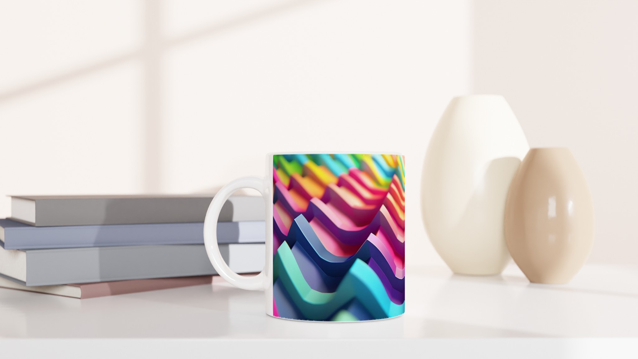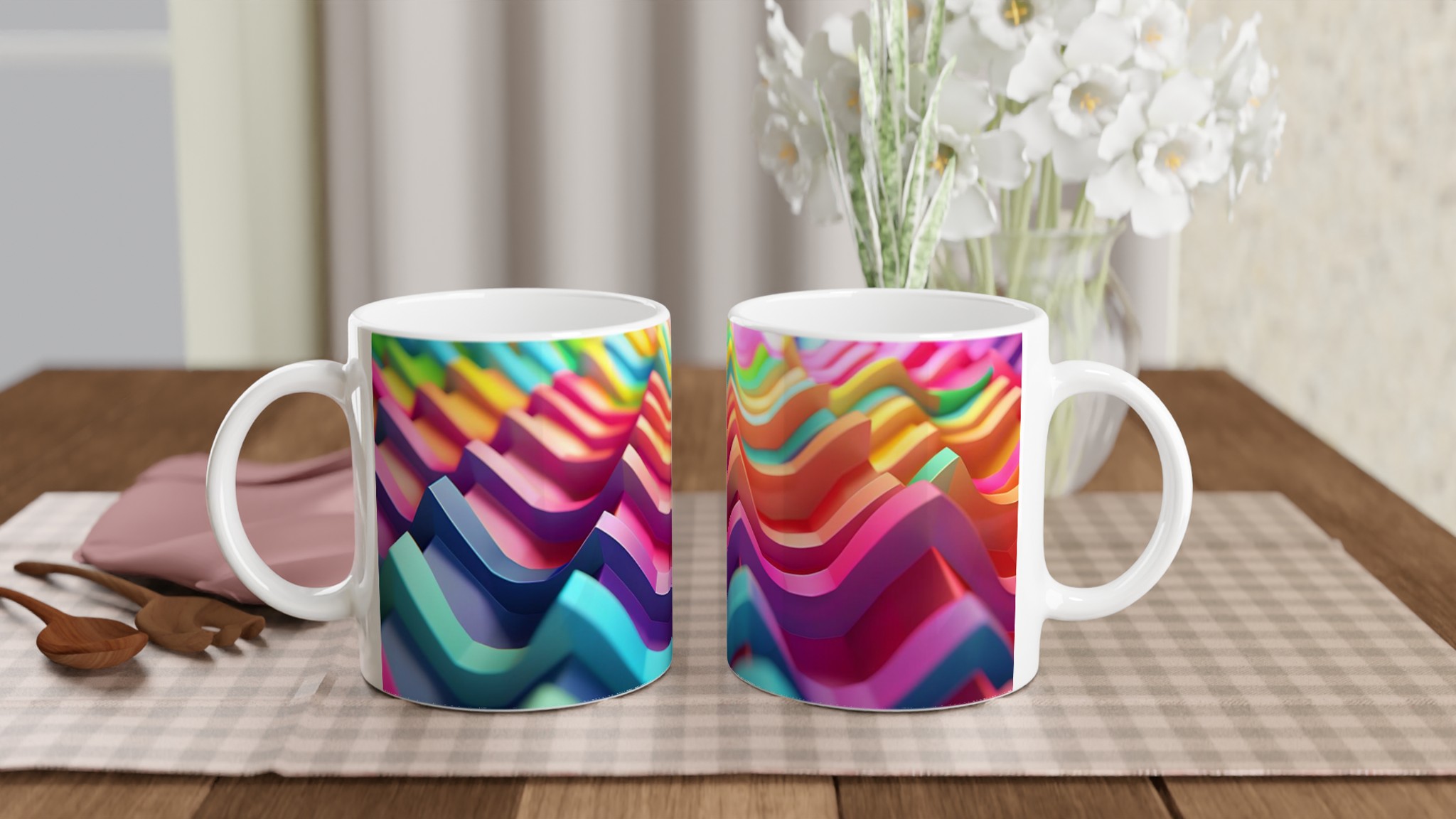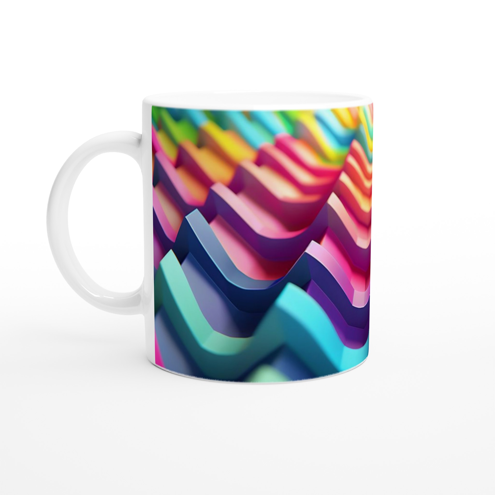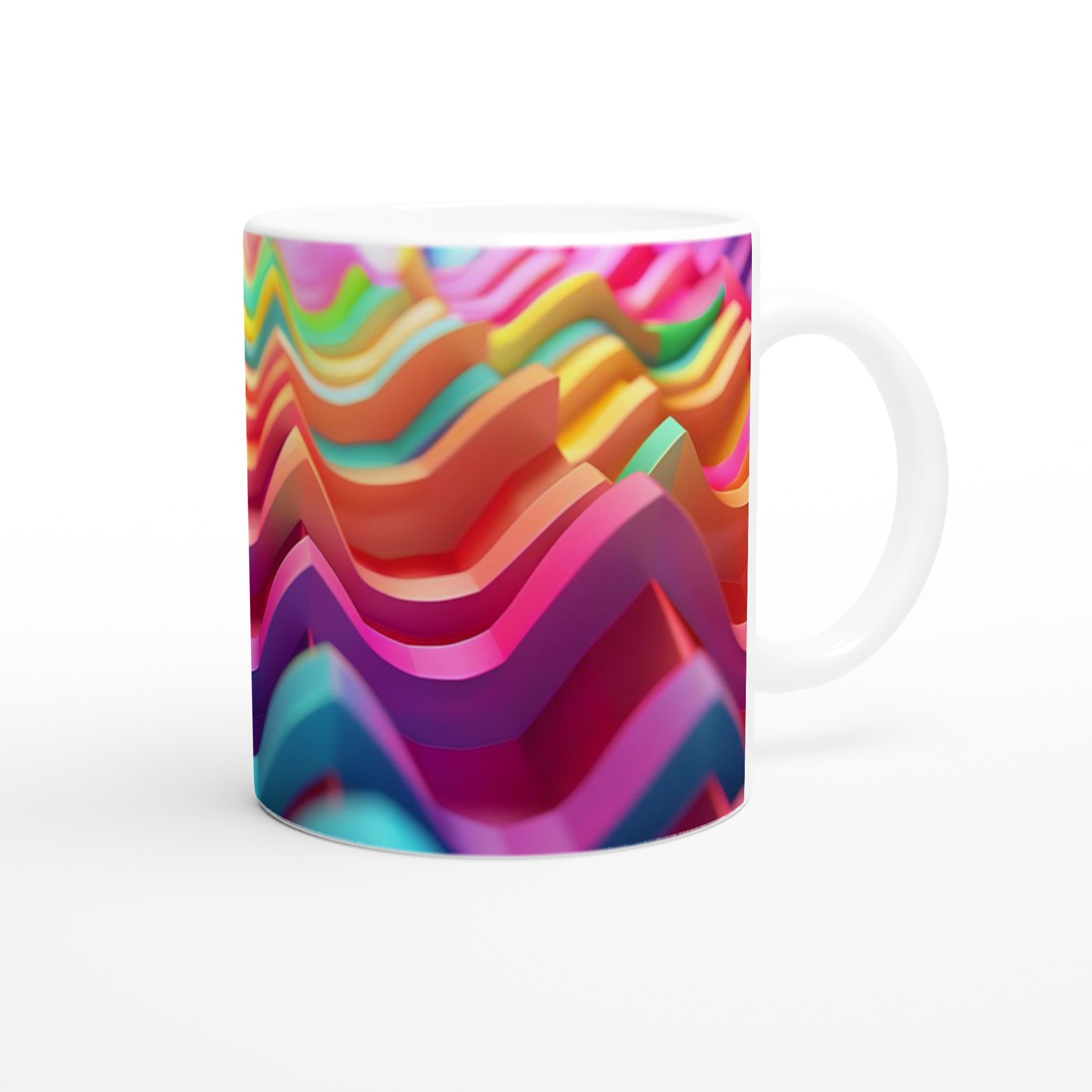 Väck dina sinnen med vår Färgexplosion keramiska mugg, inspirerad av de dynamiska vågformerna och den rika färgpaletten i bilden. Denna stilrena och vackra keramikmugg är perfekt för alla dagens stunder – morgonkaffet, en värmande kopp te eller en härlig varm choklad. Den blanka ytan gör att trycken framträder klart och färgstarkt, vilket gör muggen till en riktig favorit i vardagen. Tack vare den höga kvaliteten behåller trycket sin lyster även efter många omgångar i både mikrovågsugn och diskmaskin.