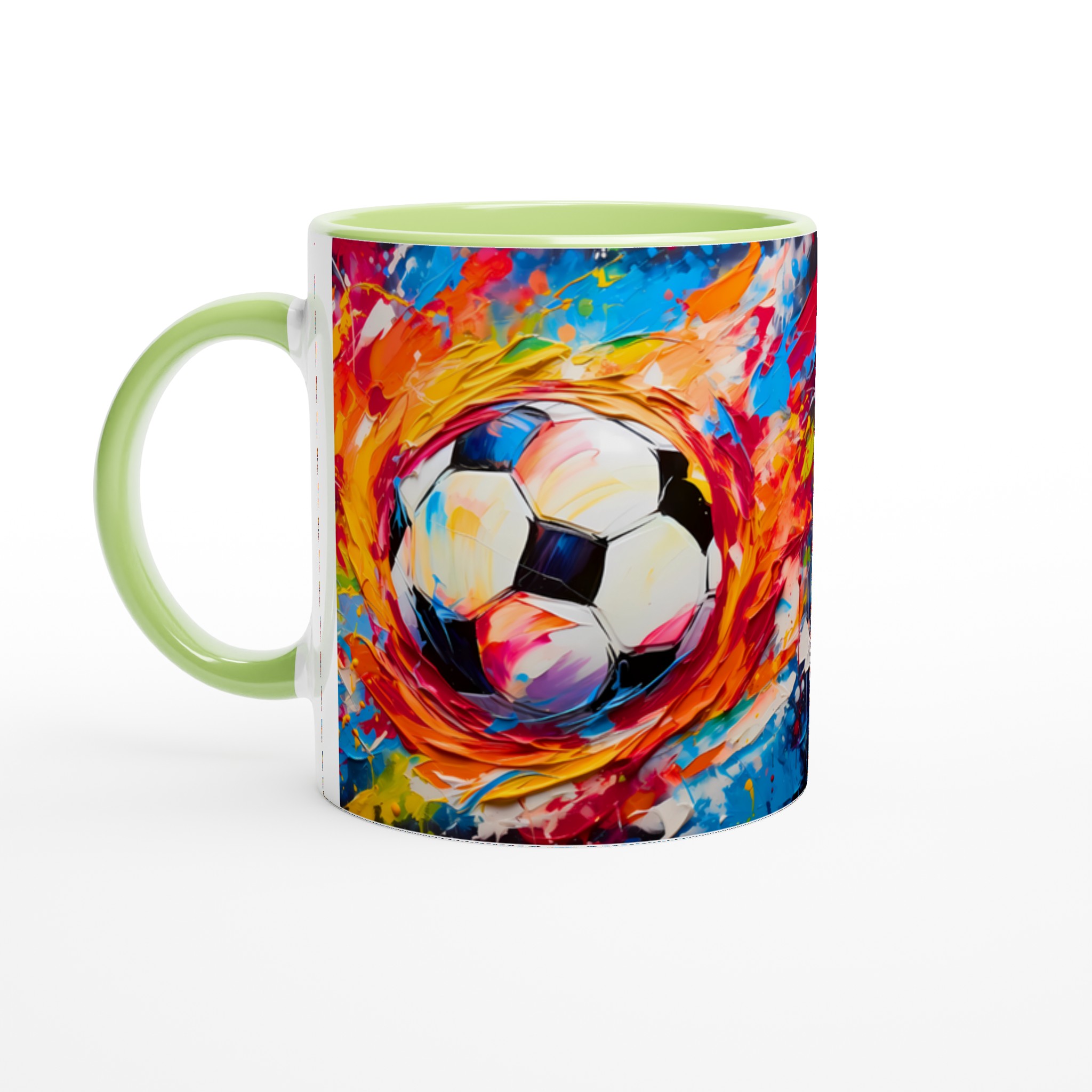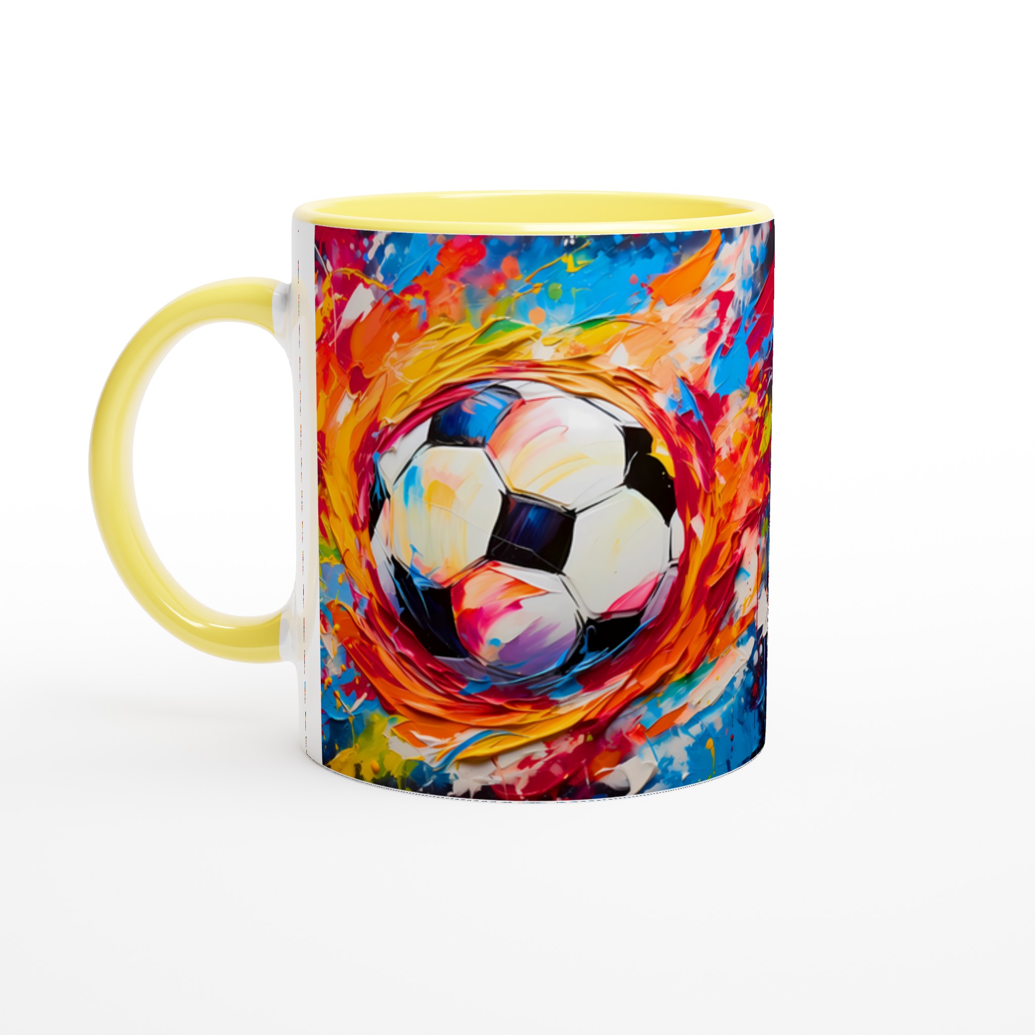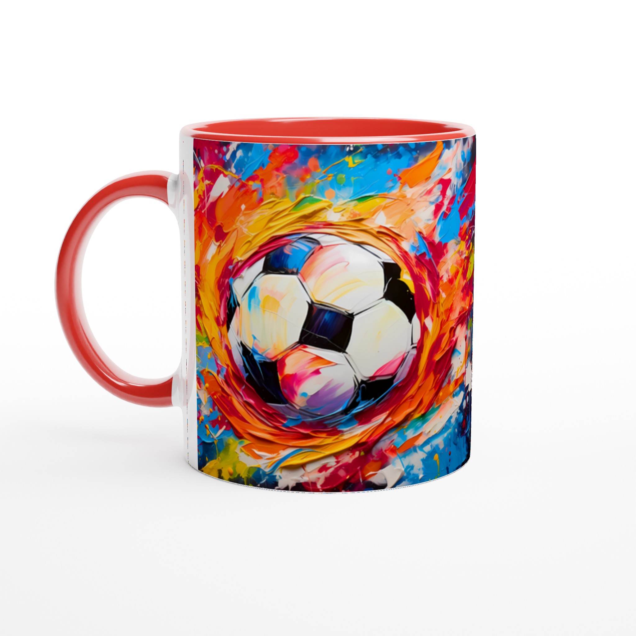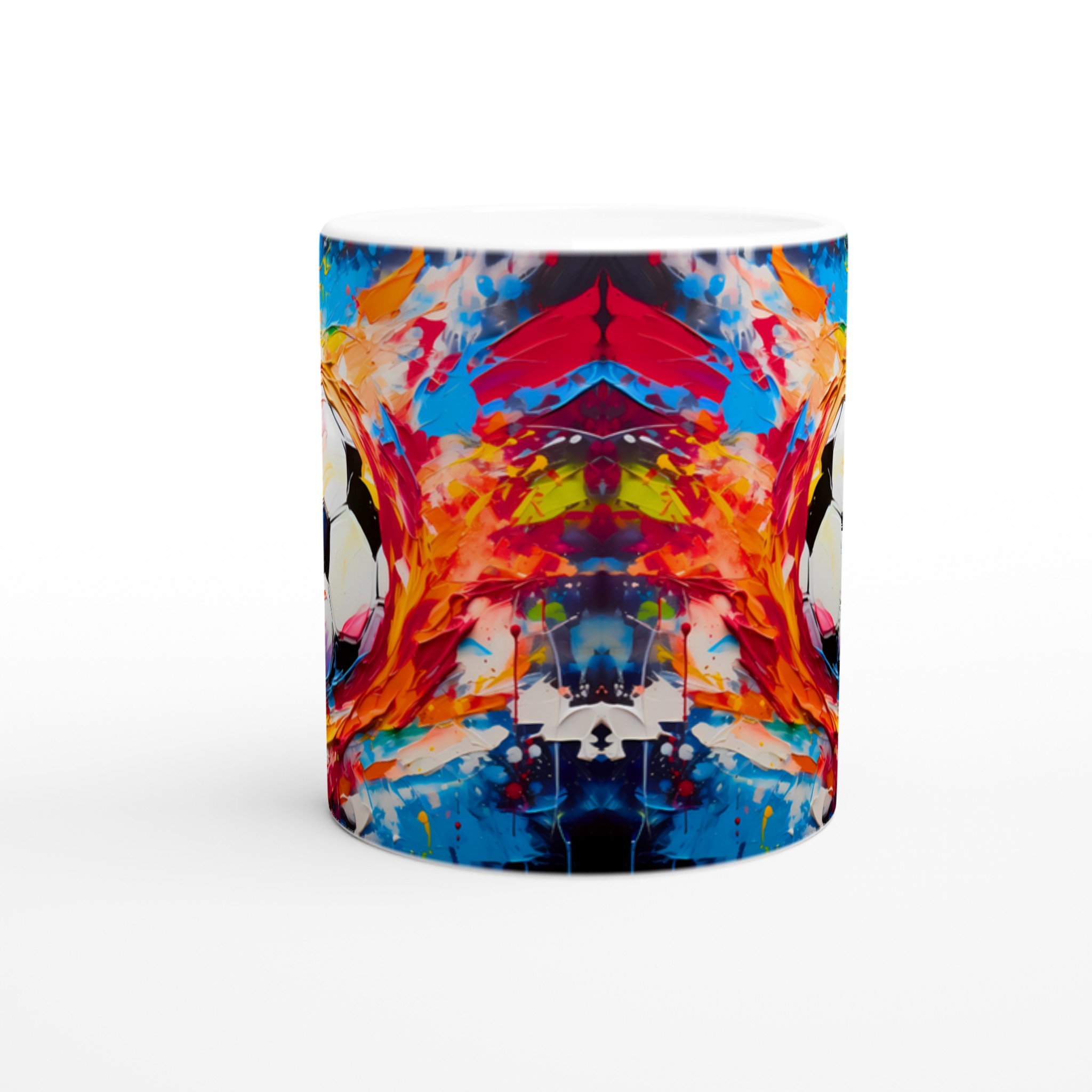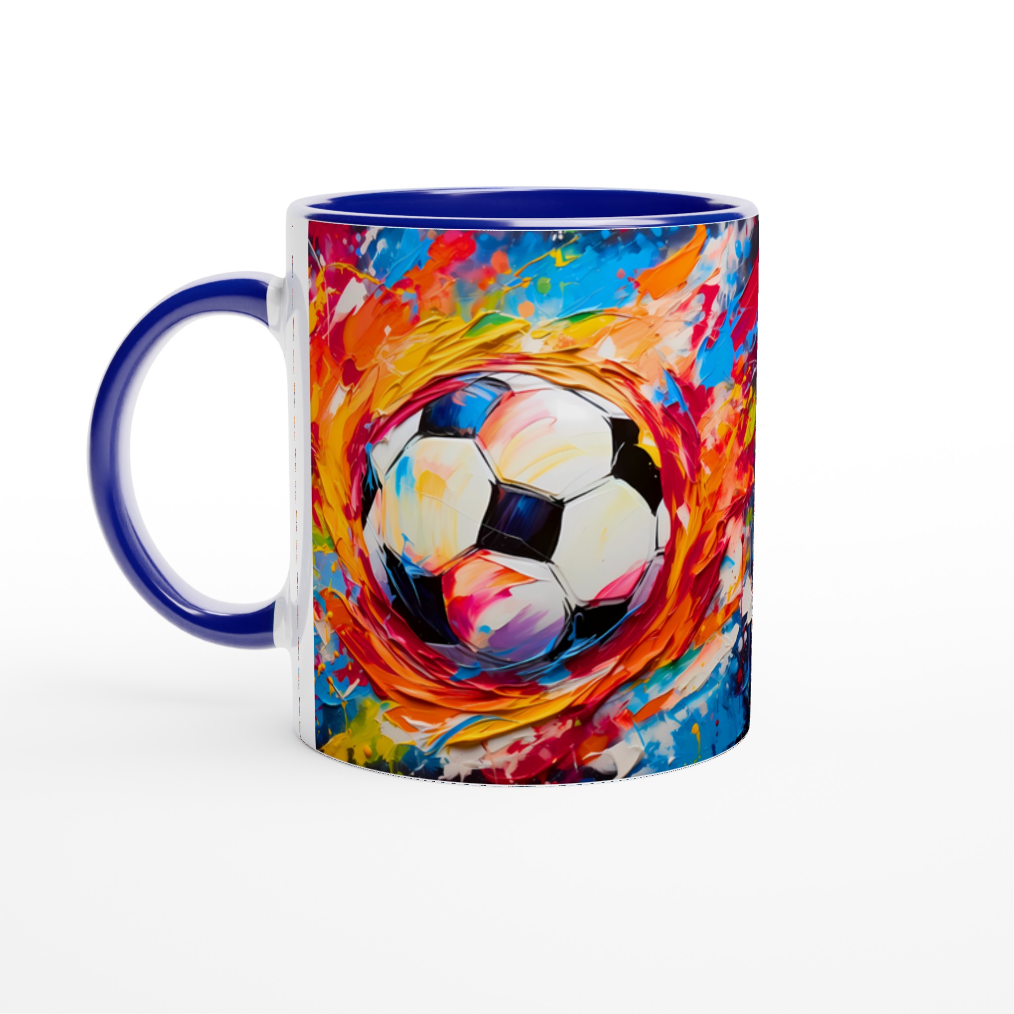 Sätt färg på din dag med denna levande keramiska mugg, prydd med ett dynamiskt fotbollsmotiv i en explosion av konstnärliga penseldrag. Varje morgon blir en firande av färg och passion, perfekt för morgonkaffet, kvällens varma choklad eller när du bara vill njuta av en kopp te. Den blanka ytan får de klara och levande färgerna att framhävas, som håller sig fina även efter många turer i mikron och diskmaskinen.