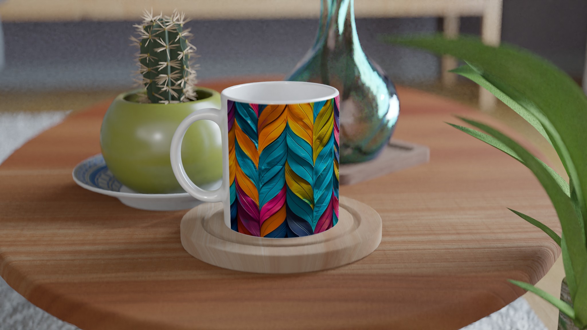 Denna stilrena och vackra keramikmugg är perfekt för alla dagens stunder. Tack vare den höga kvaliteten behåller trycket sin lyster även efter många omgångar i både mikrovågsugn och diskmaskin. Muggen rymmer 11 oz (ca 3,25 dl), en lagom storlek för både jobb och hemmabruk. Den passar lika bra som en personlig vardagsmugg som en uppskattad present till familj, vänner eller kollegor. Gör den till din egen genom att välja din favorit bland sju livfulla färgalternativ!