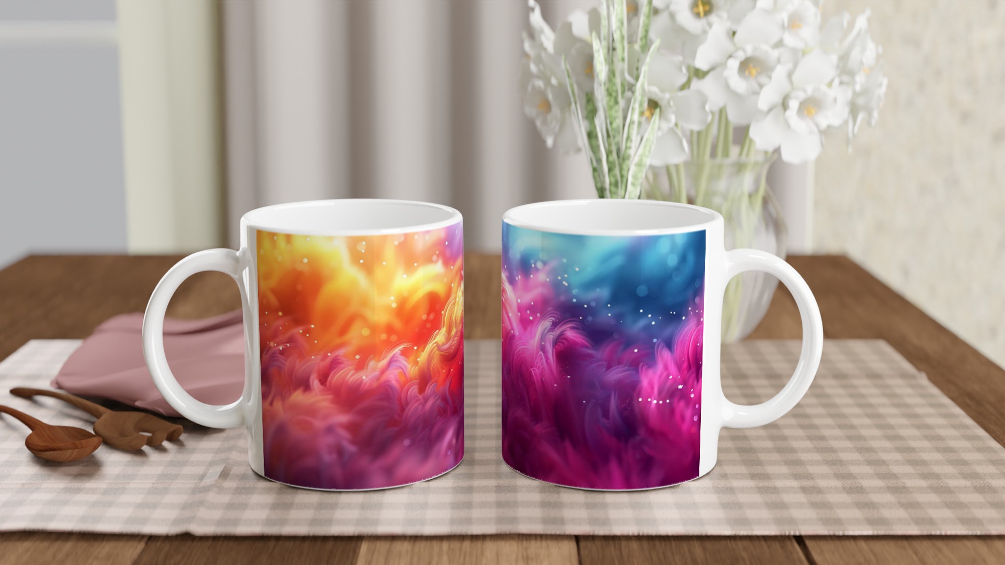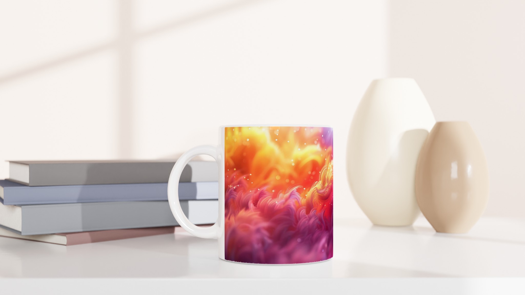 Låt din morgonkaffe eller kvällste förvandlas till en färgsprakande upplevelse med vår Keramiska Mugg – en explosion av livliga nyanser och mysig komfort. Inspirerad av bilden som utstrålar lekfull energi och drömlika färger, är denna mugg designad för att lyfta varje ögonblick. Den blanka vita ytan låter varje tryck framträda med otrolig klarhet och intensitet, och håller sig vackert levande även efter otaliga stunder i mikrovågsugnen och diskmaskinen.