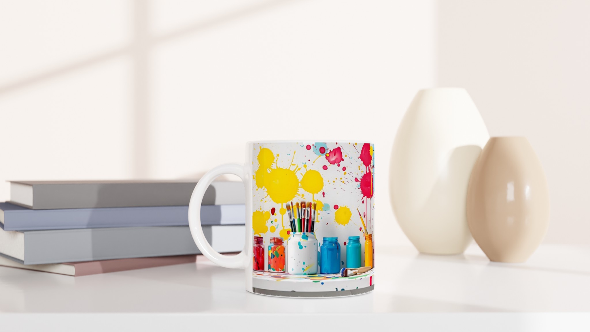 Väck din inre konstnär varje dag med denna färgsprakande keramiska mugg! Inspirerad av den lekfulla glädjen i färgglada penseldrag och stänk, blir denna mugg snabbt en vardagsfavorit. Perfekt för morgonkaffet, kvällens varma choklad eller när du bara vill njuta av en kopp te – varje klunk blir en upplevelse.