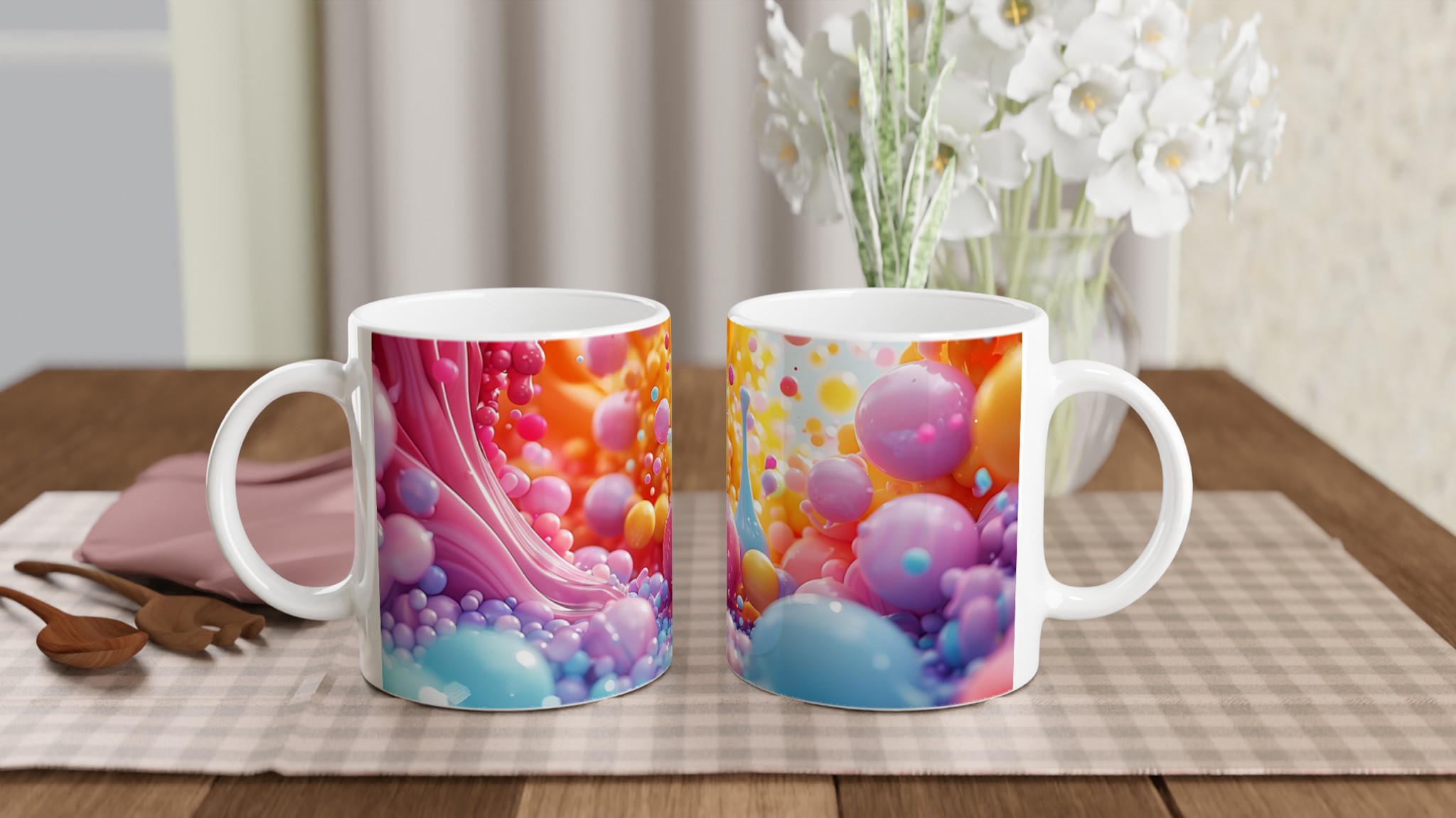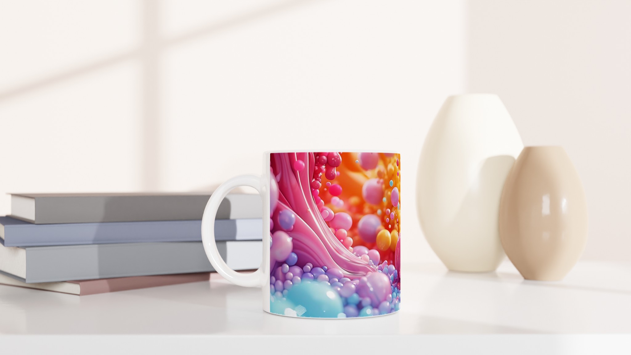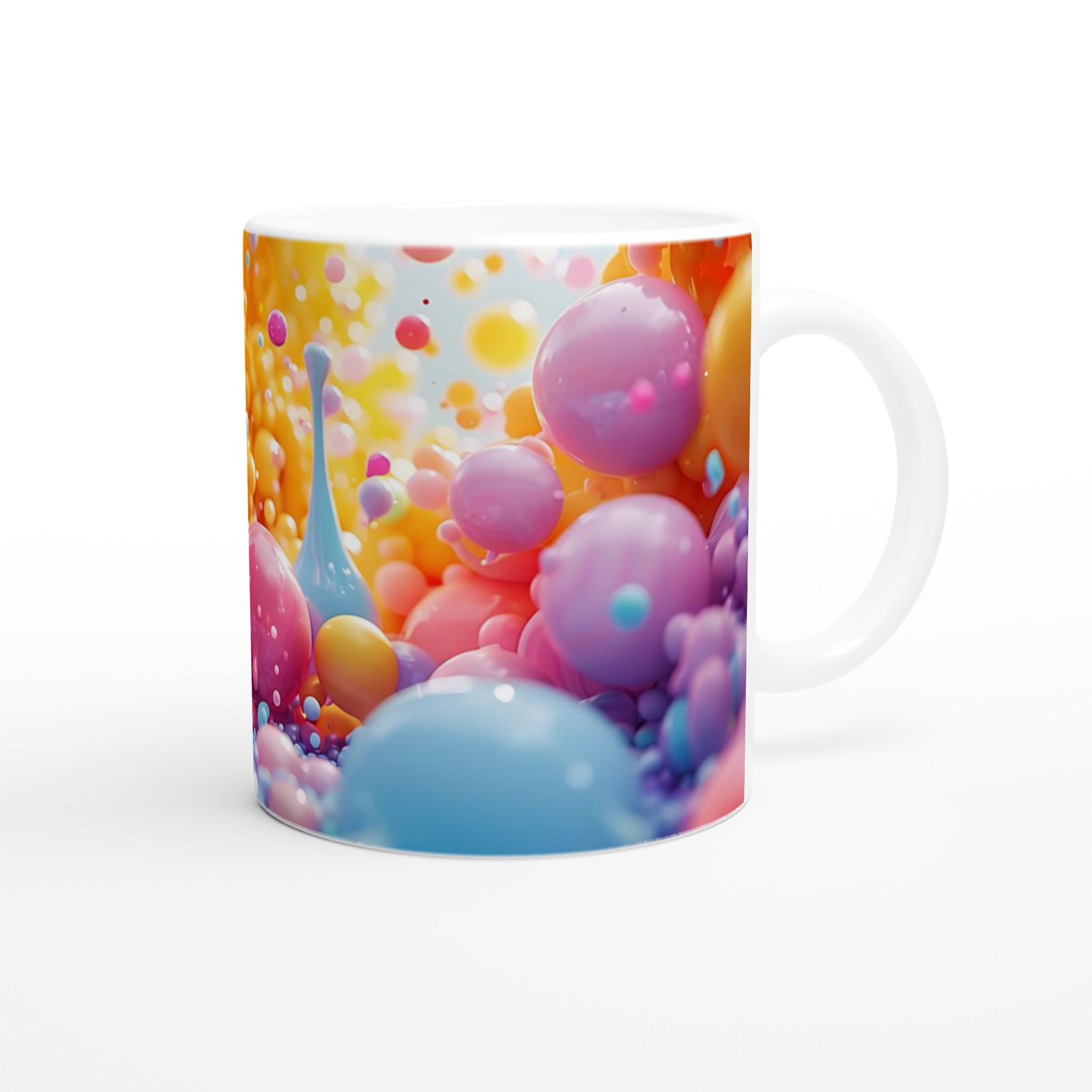 Lys upp din dag med vår Keramiska Mugg, som förvandlar varje dryck till en fest av färg och glädje. Inspirerad av de livliga och lekfulla bubblorna i bilden, blir denna mugg snabbt en vardagsfavorit. Perfekt för morgonkaffet, kvällens varma choklad eller när du bara vill njuta av en kopp te. Den blanka ytan framhäver trycken med klara och levande färger, som håller sig fina även efter många turer i mikron och diskmaskinen, vilket ger dig en produkt som är lika hållbar som den är vacker.