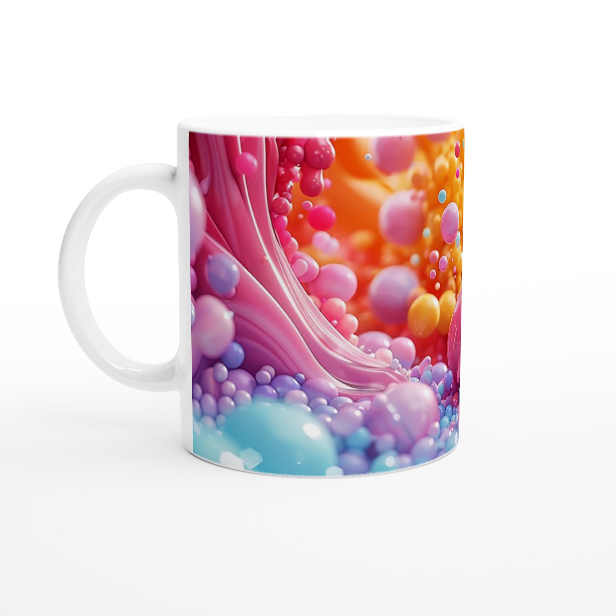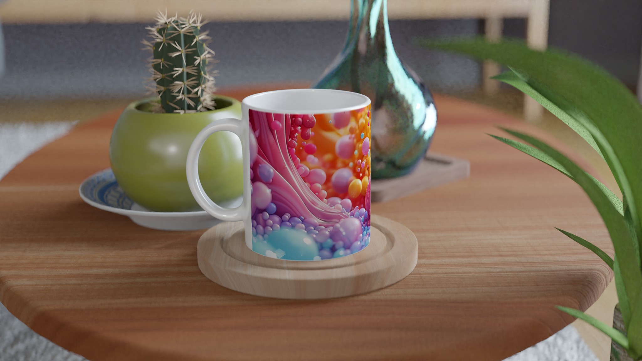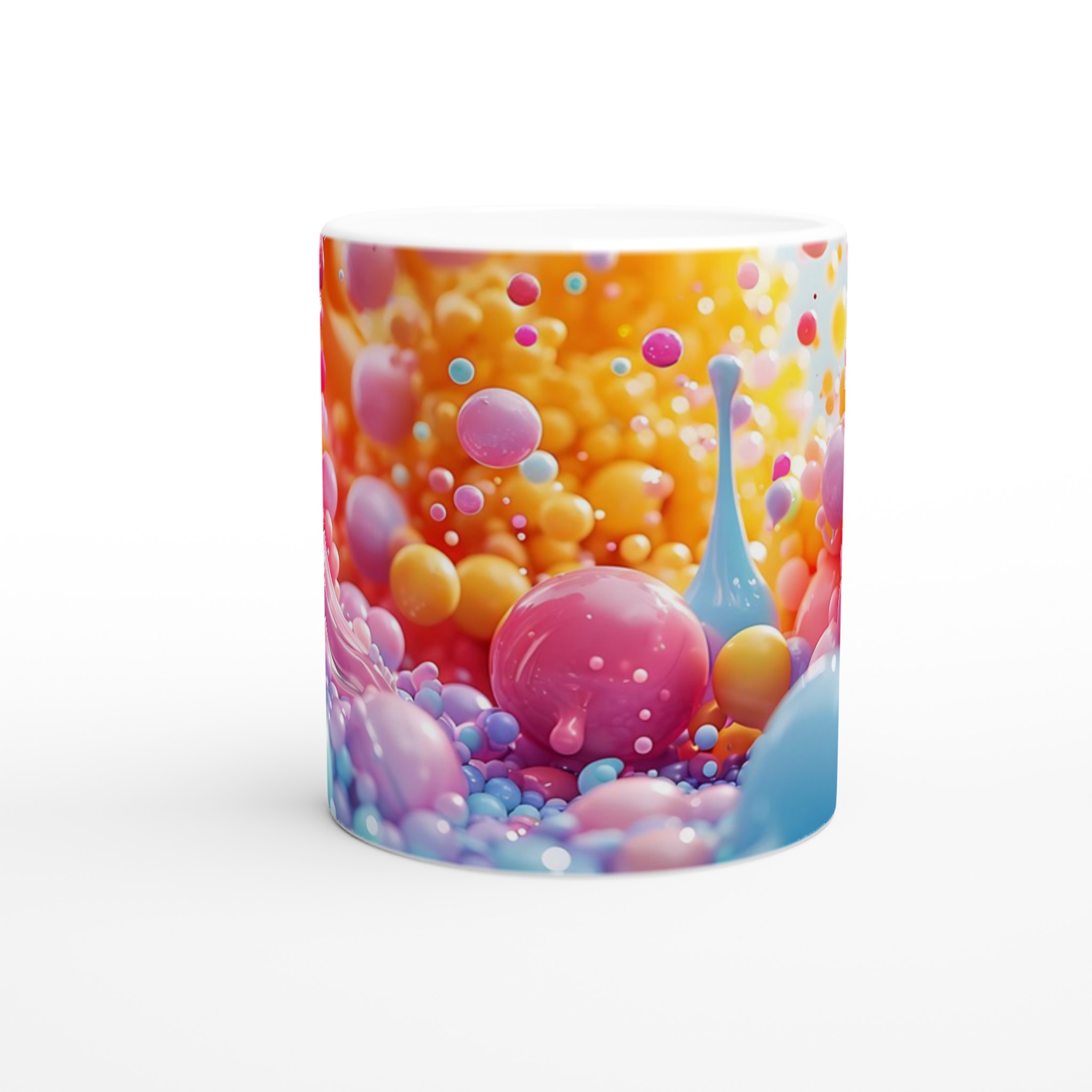 Lys upp din dag med vår Keramiska Mugg, som förvandlar varje dryck till en fest av färg och glädje. Inspirerad av de livliga och lekfulla bubblorna i bilden, blir denna mugg snabbt en vardagsfavorit. Perfekt för morgonkaffet, kvällens varma choklad eller när du bara vill njuta av en kopp te. Den blanka ytan framhäver trycken med klara och levande färger, som håller sig fina även efter många turer i mikron och diskmaskinen, vilket ger dig en produkt som är lika hållbar som den är vacker.