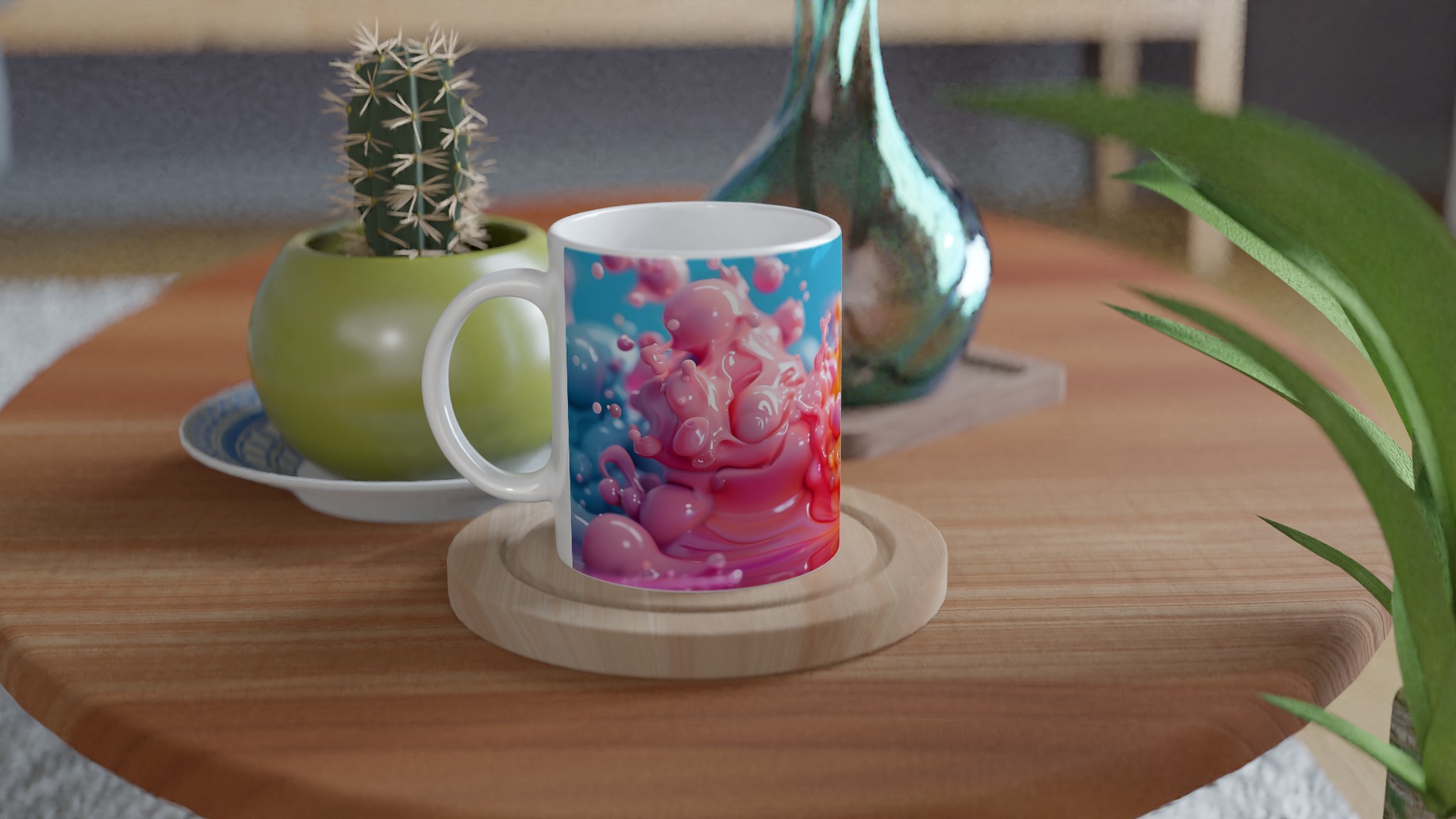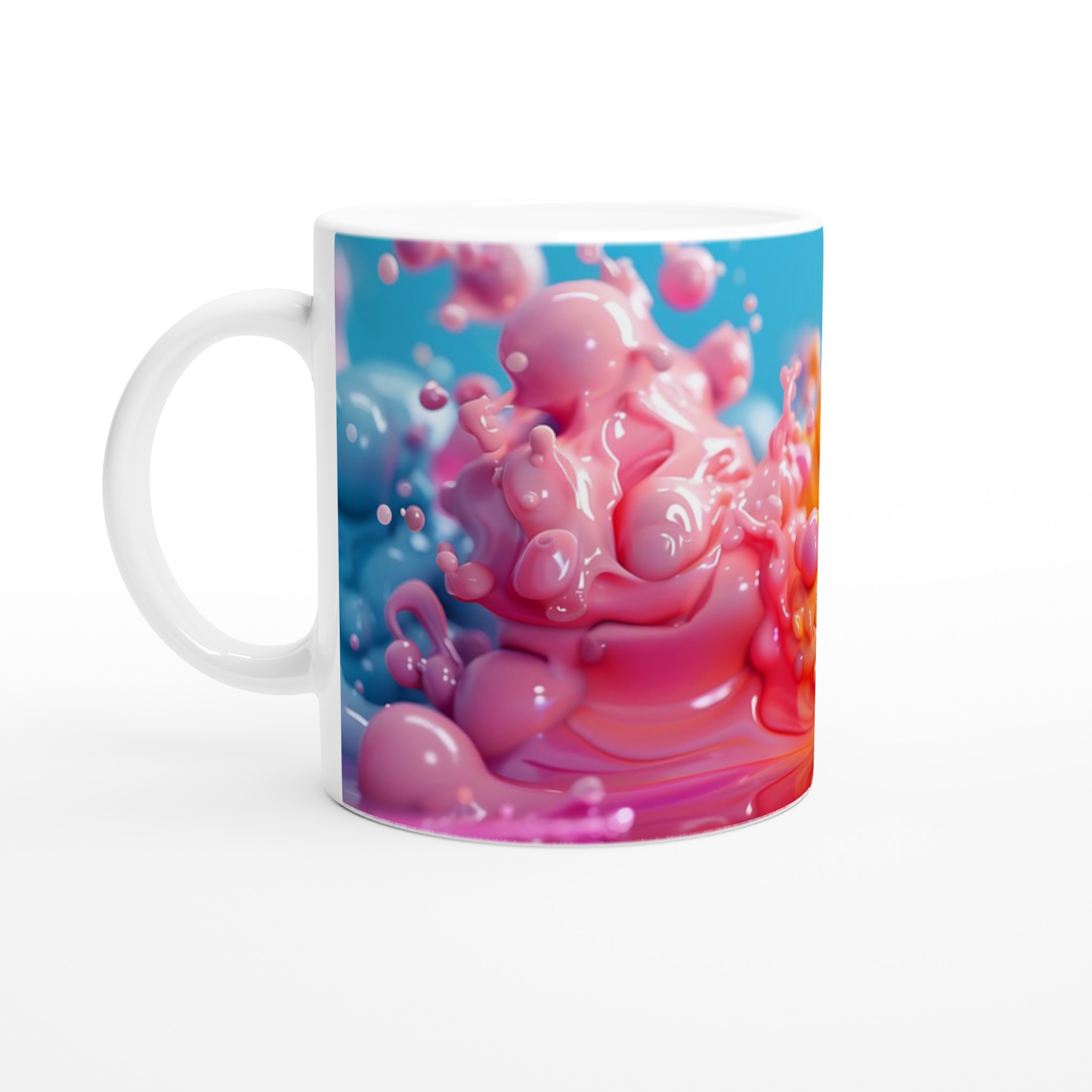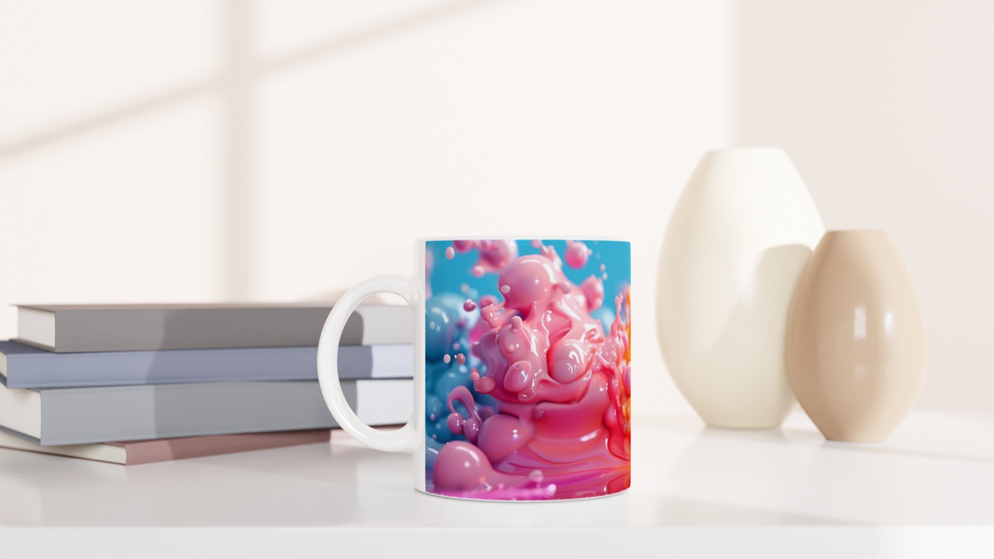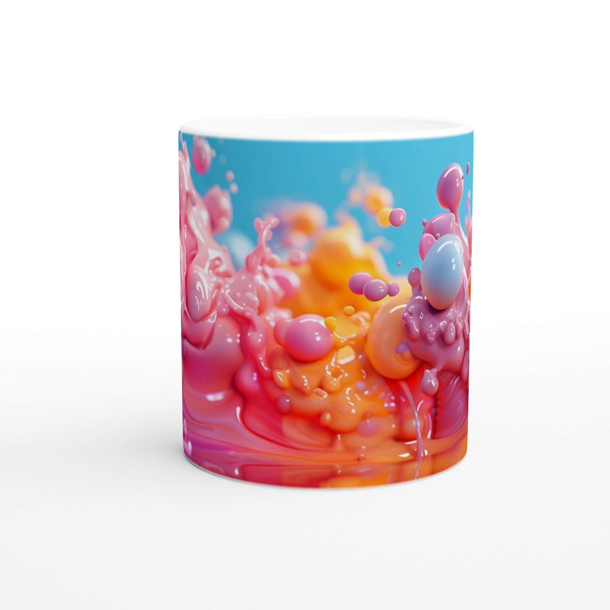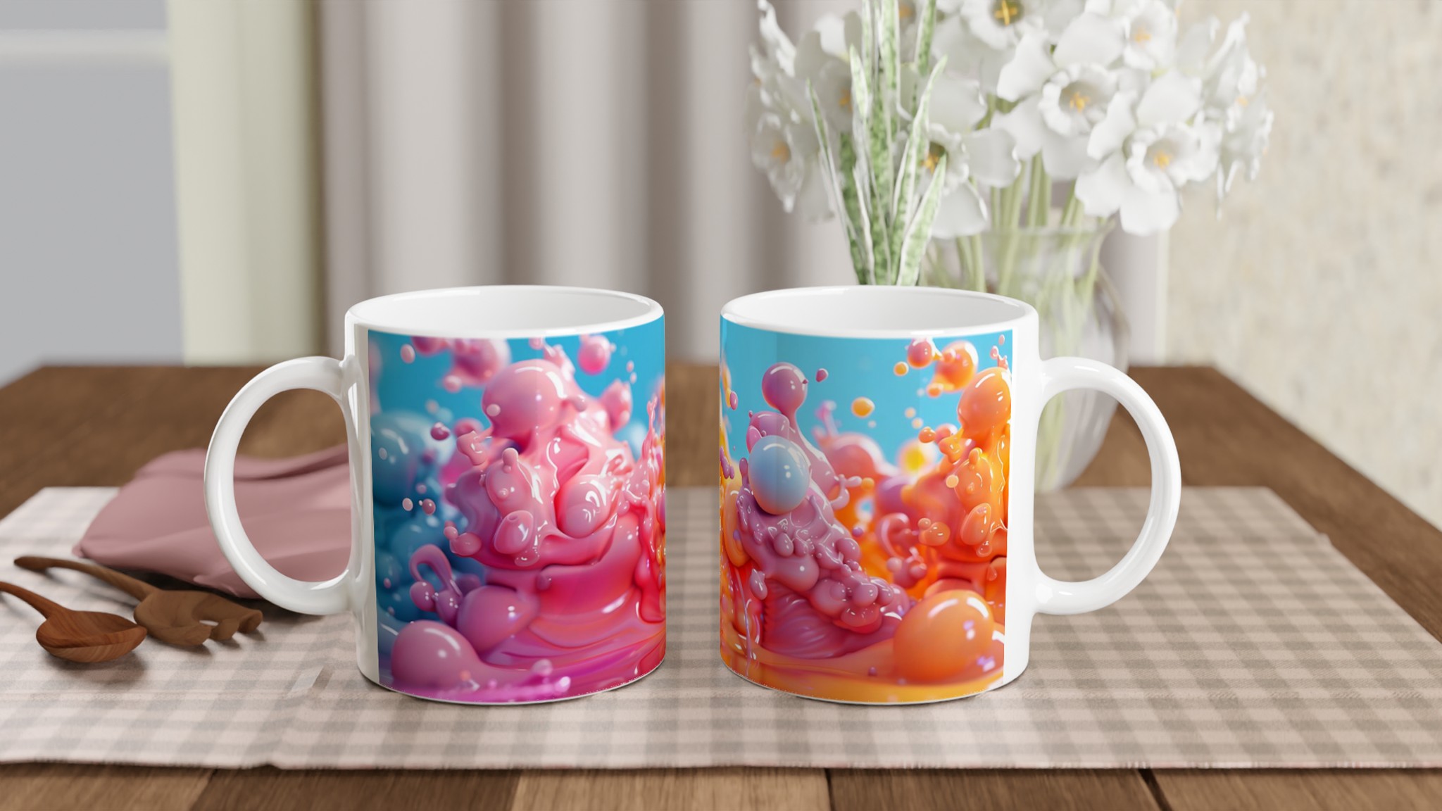 Lyft din fikapaus med denna livfulla keramiska mugg, inspirerad av en explosion av glada färger och lekfulla former! Föreställ dig den mjuka rosa, den varma orangea och den svala blå som smälter samman i en harmonisk dans – en perfekt start på dagen eller en färgklick under eftermiddagskaffet. Den här muggen är designad för att bringa en känsla av glädje och kreativitet till varje klunk, samtidigt som den blir en omedelbar vardagsfavorit för alla tillfällen. Vare sig det är morgonkaffet, kvällens varma choklad eller en lugn stund med te, kommer dess blanka yta att framhäva tryck med klara och levande färger, som håller sig fina även efter otaliga turer i mikron och diskmaskinen.