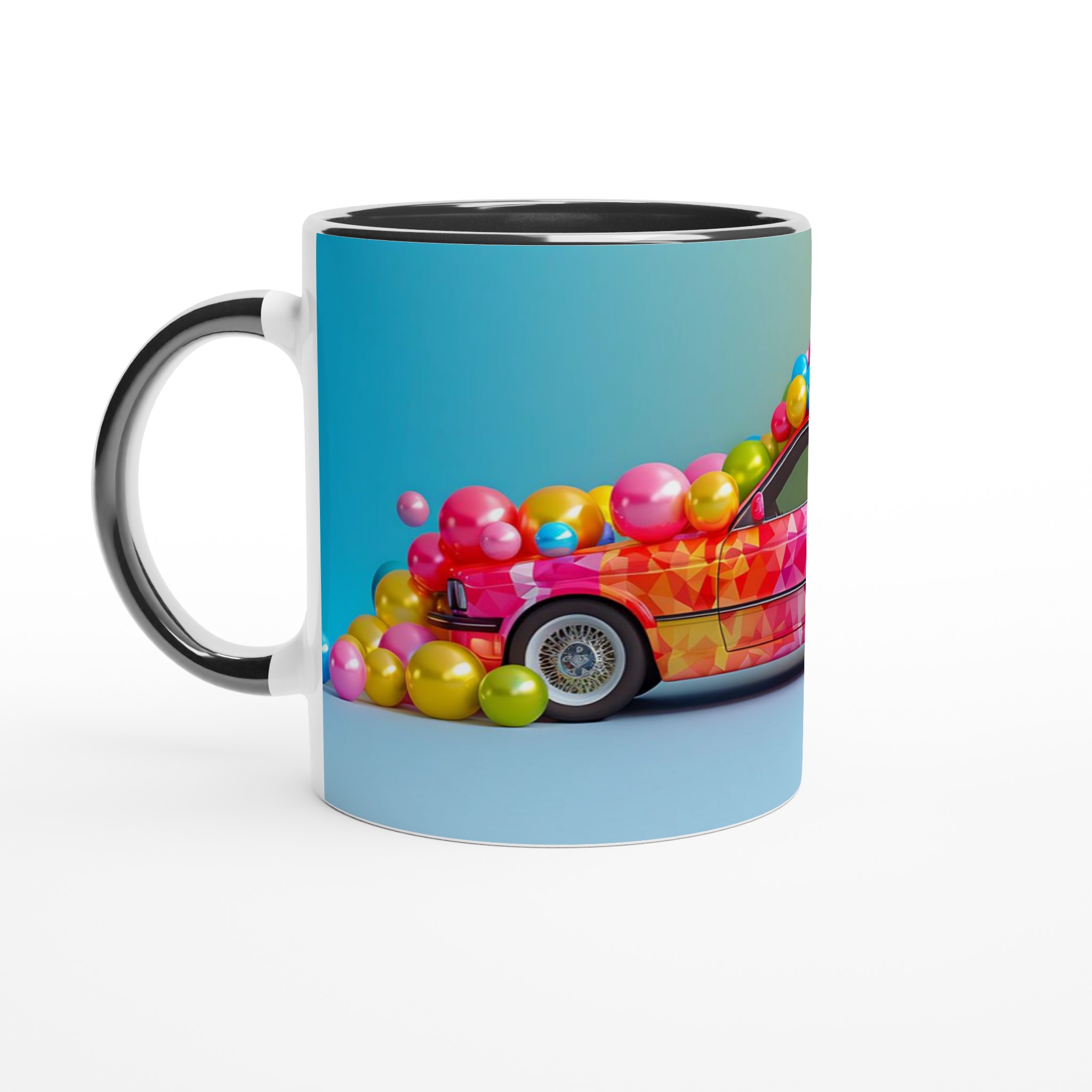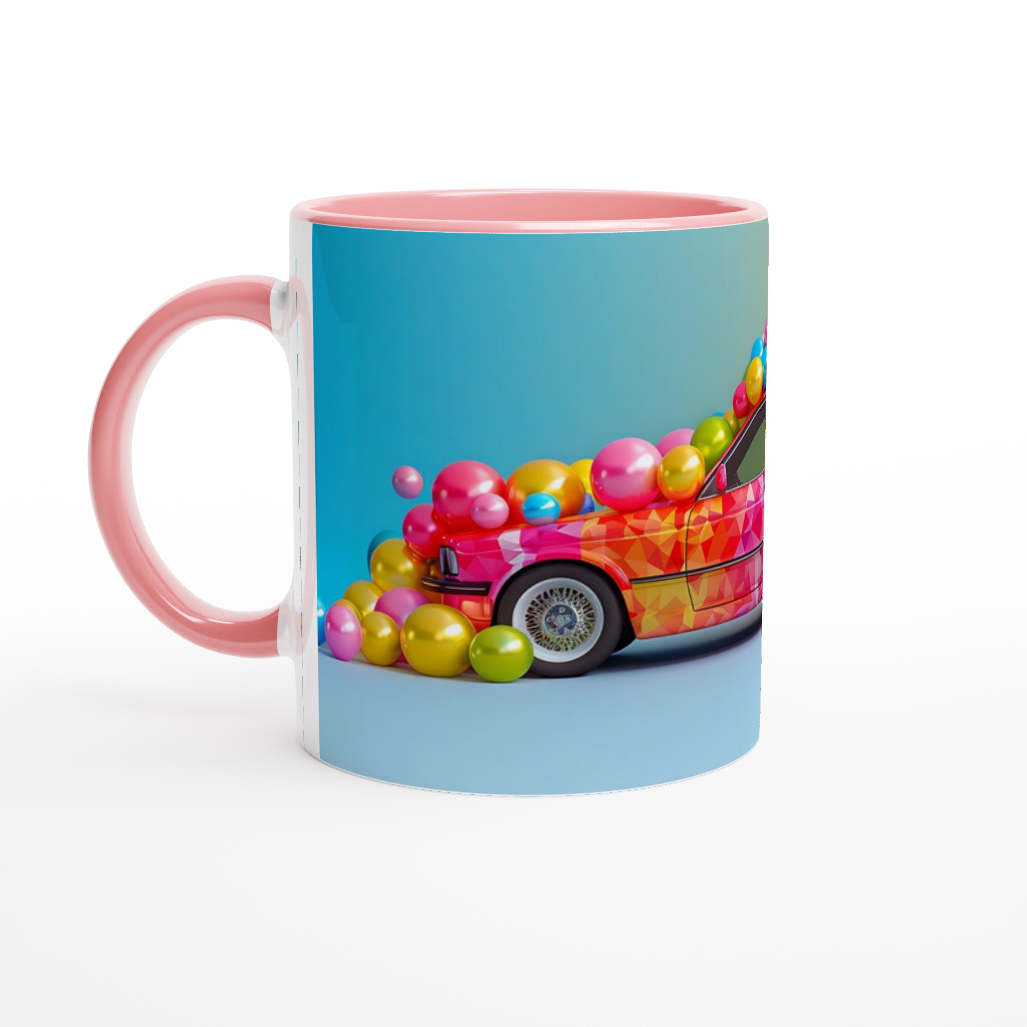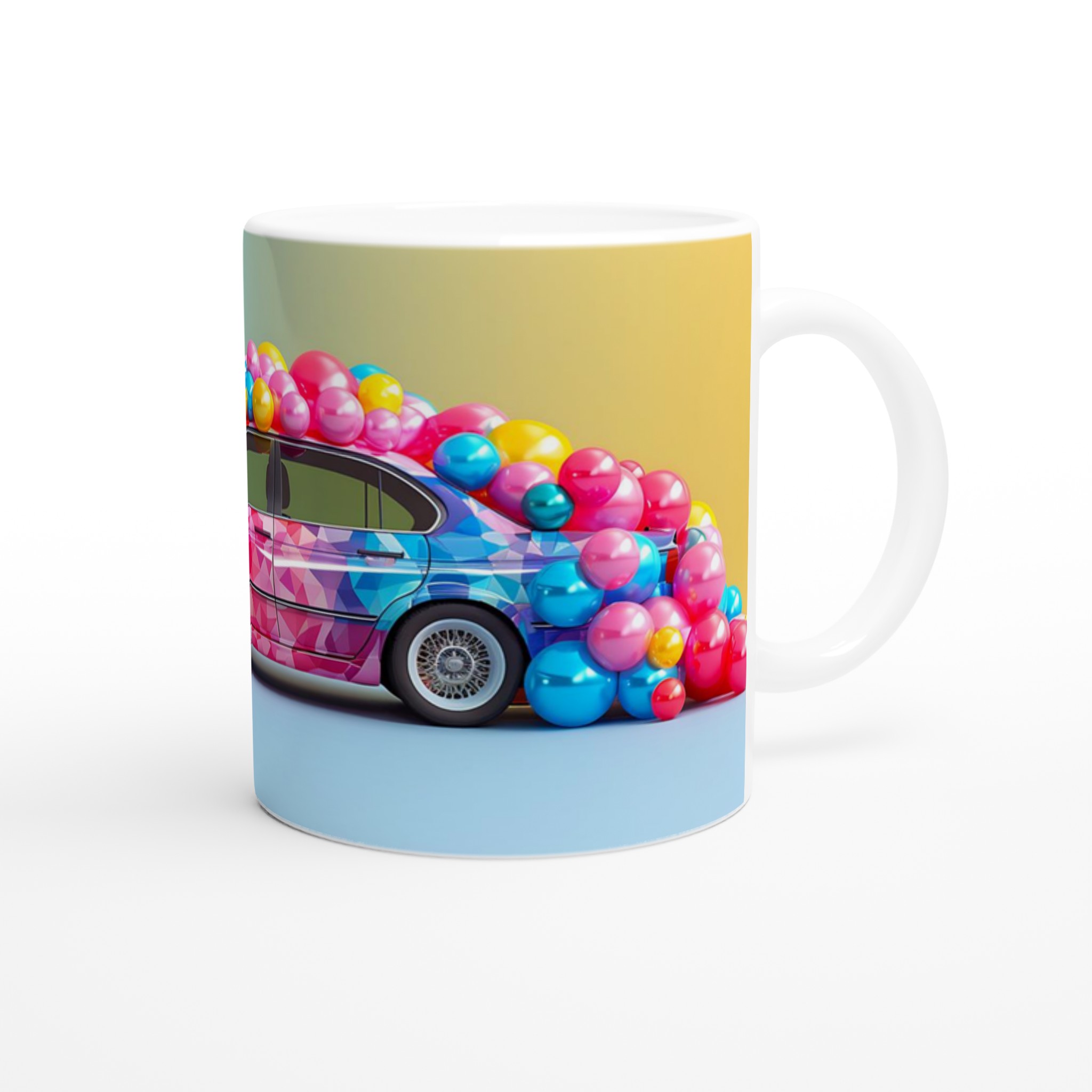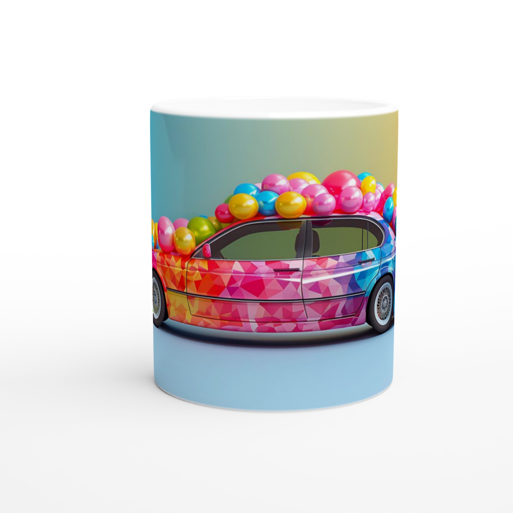 Lyft din dryckesupplevelse med denna livfulla keramiska mugg, inspirerad av en explosion av glädje och färg. Denna mugg fångar ögat med sin lekfulla, mosaikliknande design som smälter samman rosa, blått och gult i en glittrande dans av nyanser. Perfekt för morgonkaffet, kvällens varma choklad eller när du bara vill njuta av en kopp te. Den blanka vita ytan gör att trycken framhävs med klara och levande färger, som håller sig fina även efter många turer i mikron och diskmaskinen.