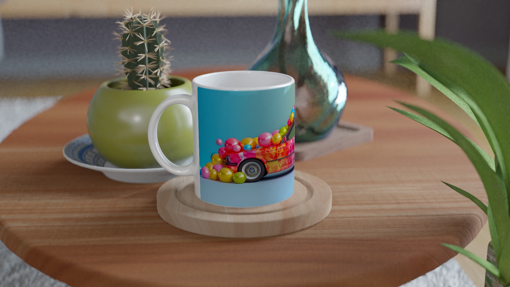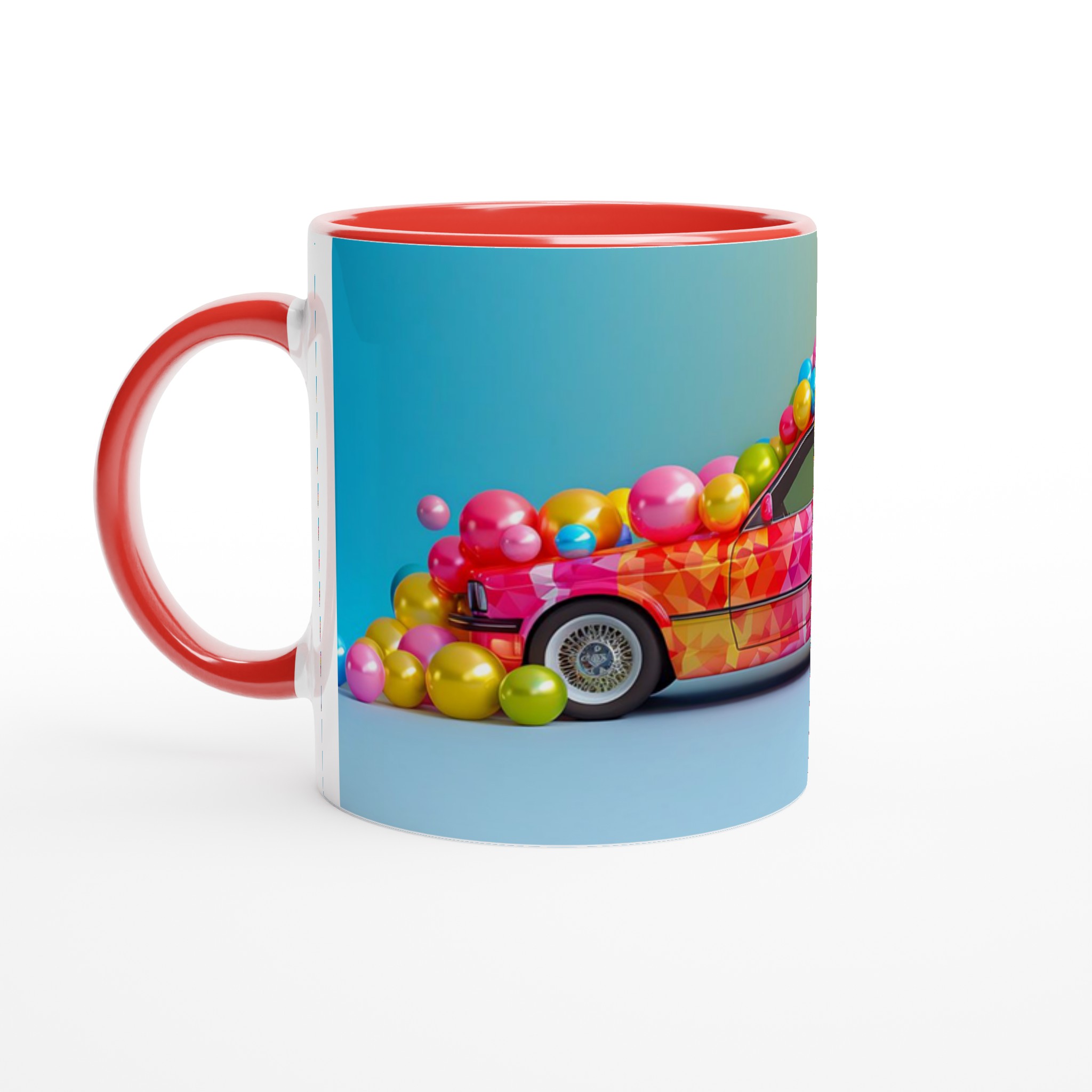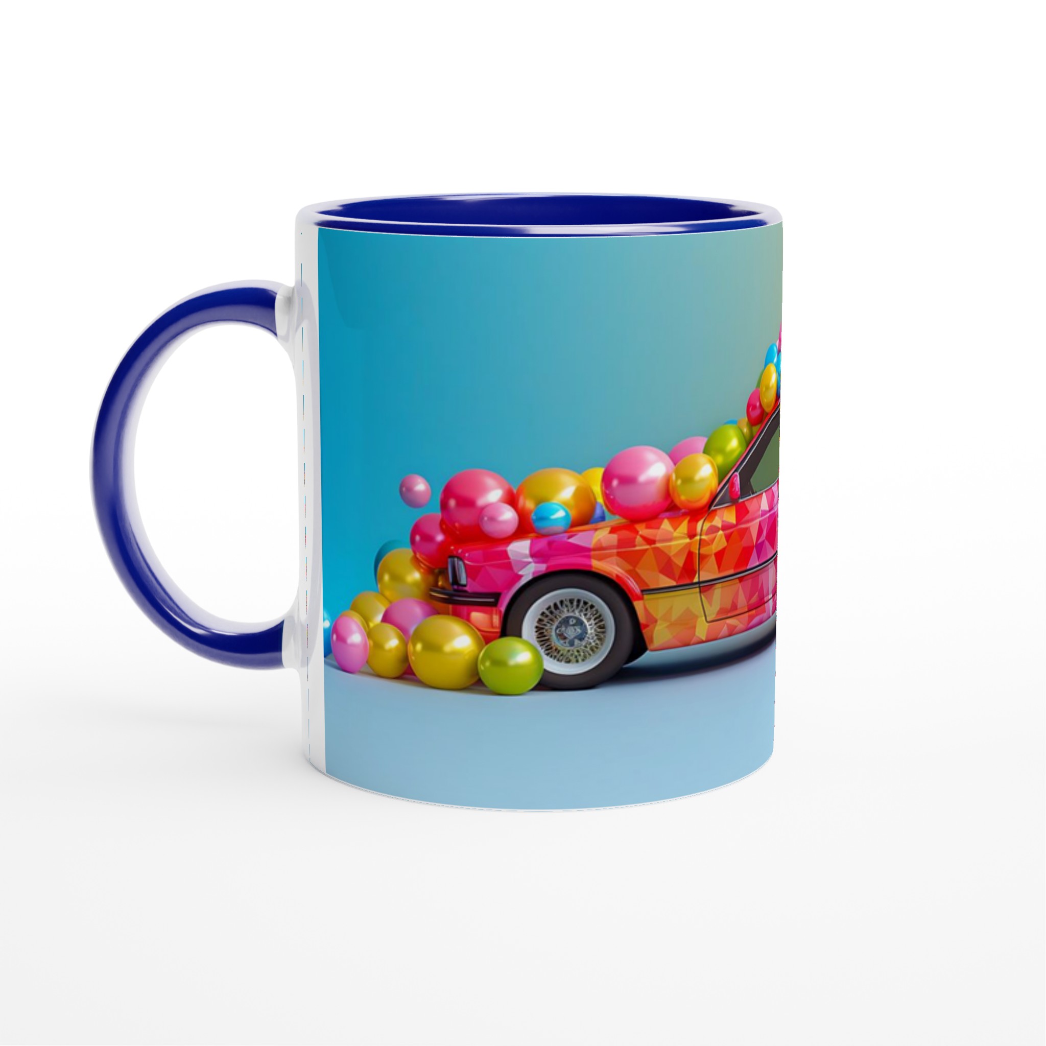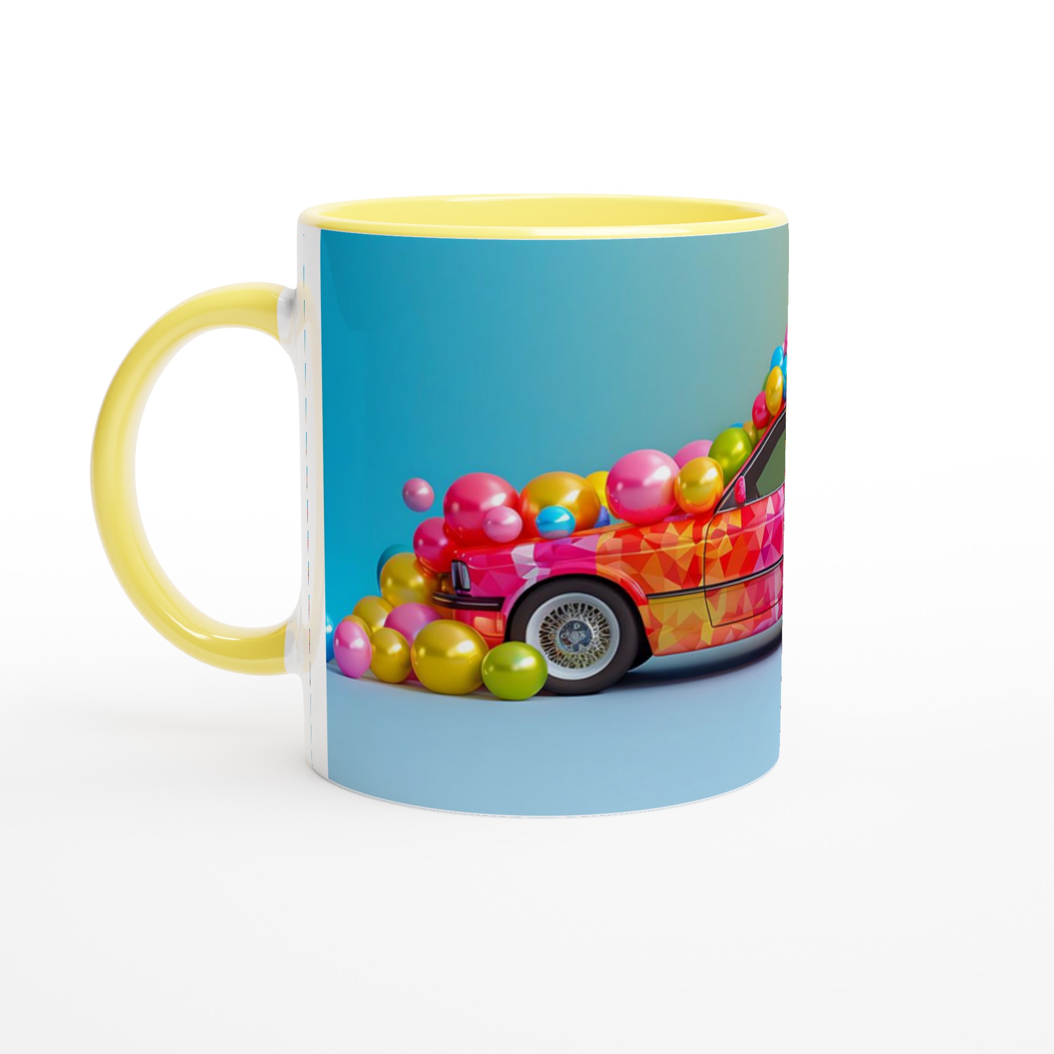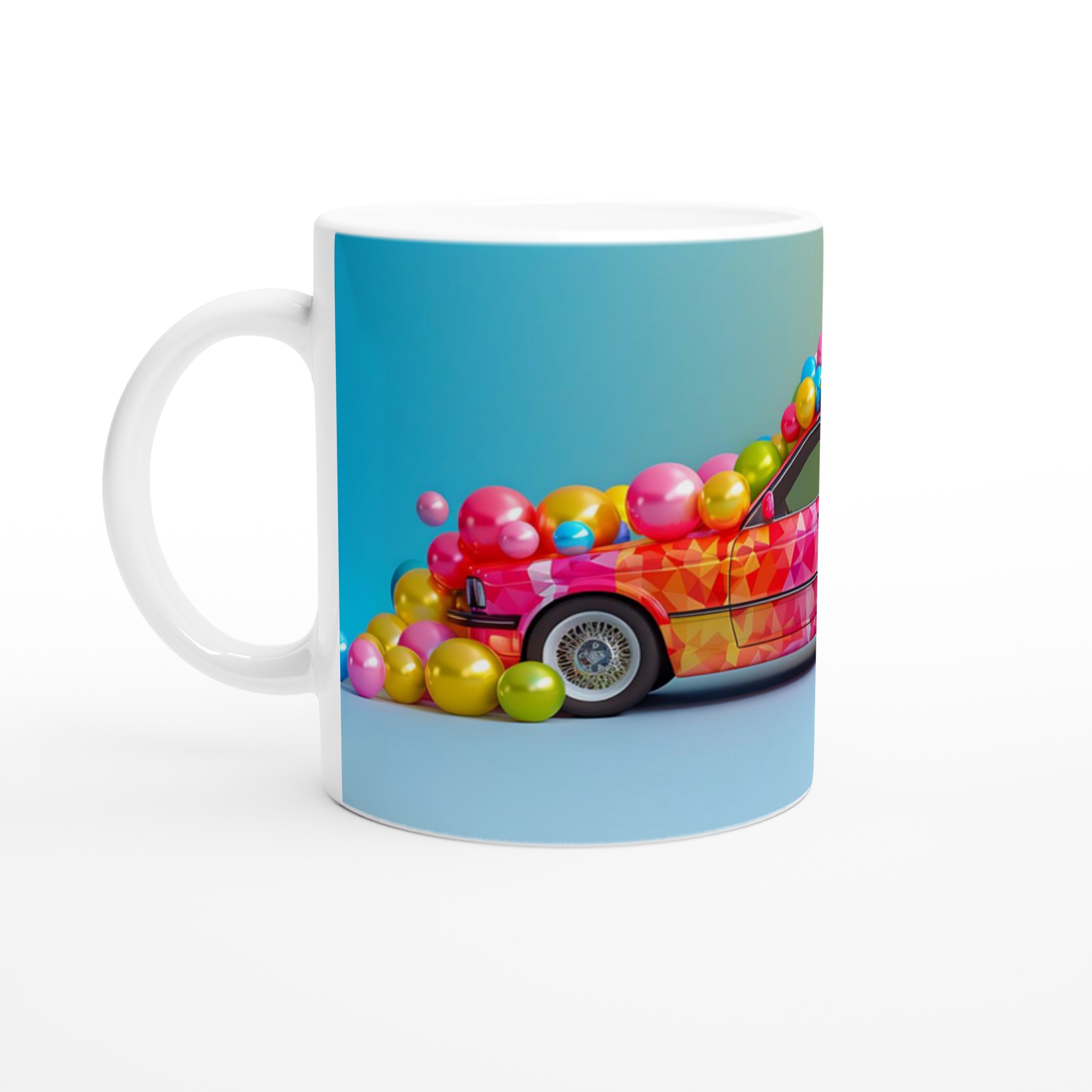 Lyft din dryckesupplevelse med denna livfulla keramiska mugg, inspirerad av en explosion av glädje och färg. Denna mugg fångar ögat med sin lekfulla, mosaikliknande design som smälter samman rosa, blått och gult i en glittrande dans av nyanser. Perfekt för morgonkaffet, kvällens varma choklad eller när du bara vill njuta av en kopp te. Den blanka vita ytan gör att trycken framhävs med klara och levande färger, som håller sig fina även efter många turer i mikron och diskmaskinen.