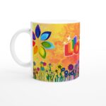 Lyft din dryckesupplevelse med vår ”Färgexplosion” keramiska mugg, en verklig vardagsfavorit som sprudlar av liv och färg. Inspirerad av bilden, där levande blommor och fjärilar dansar i en symfoni av regnbågens färger, är denna mugg en hyllning till glädje och kreativitet. Perfekt för morgonkaffet, kvällens varma choklad eller när du bara vill njuta av en kopp te – varje klunk blir en fest för sinnena.