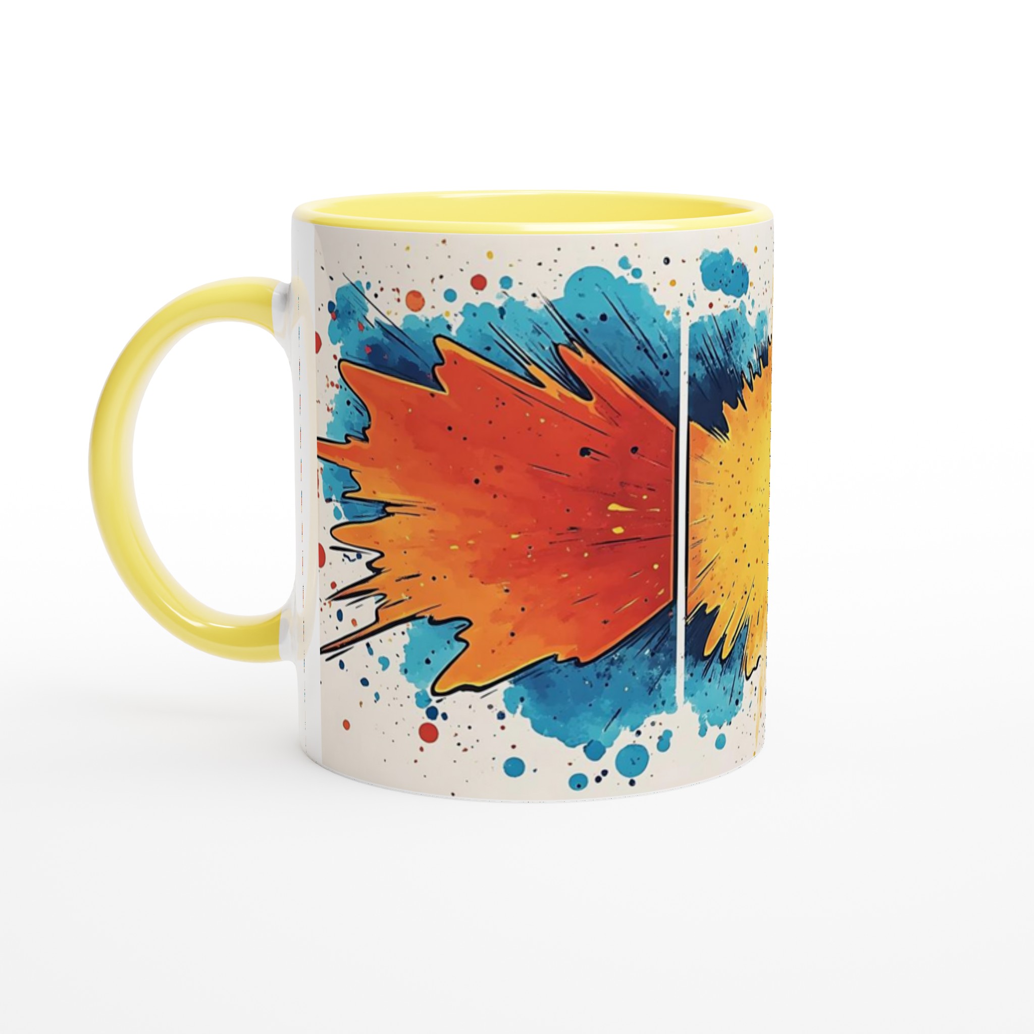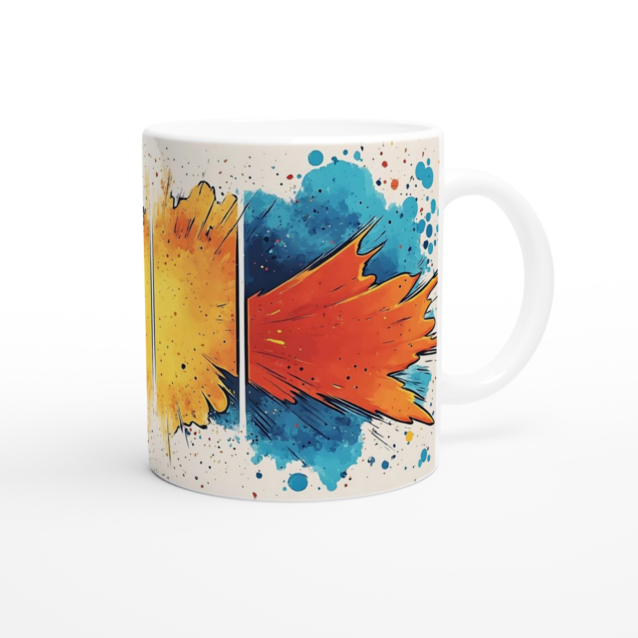 Väck dina sinnen varje morgon med vår ”Färgexplosion” keramiska mugg. Denna mugg är en hyllning till glädje och kreativitet, med ett dynamiskt mönster av levande orange, soligt gult och himmelsblått som sprätter av energi. Den konstfulla designen, inspirerad av den oväntade skönheten i ett färgstarkt stänk, gör varje klunk till en upplevelse. Oavsett om du inleder dagen med kaffe eller avslutar den med en lugnande kopp te, blir denna mugg din perfekta följeslagare.