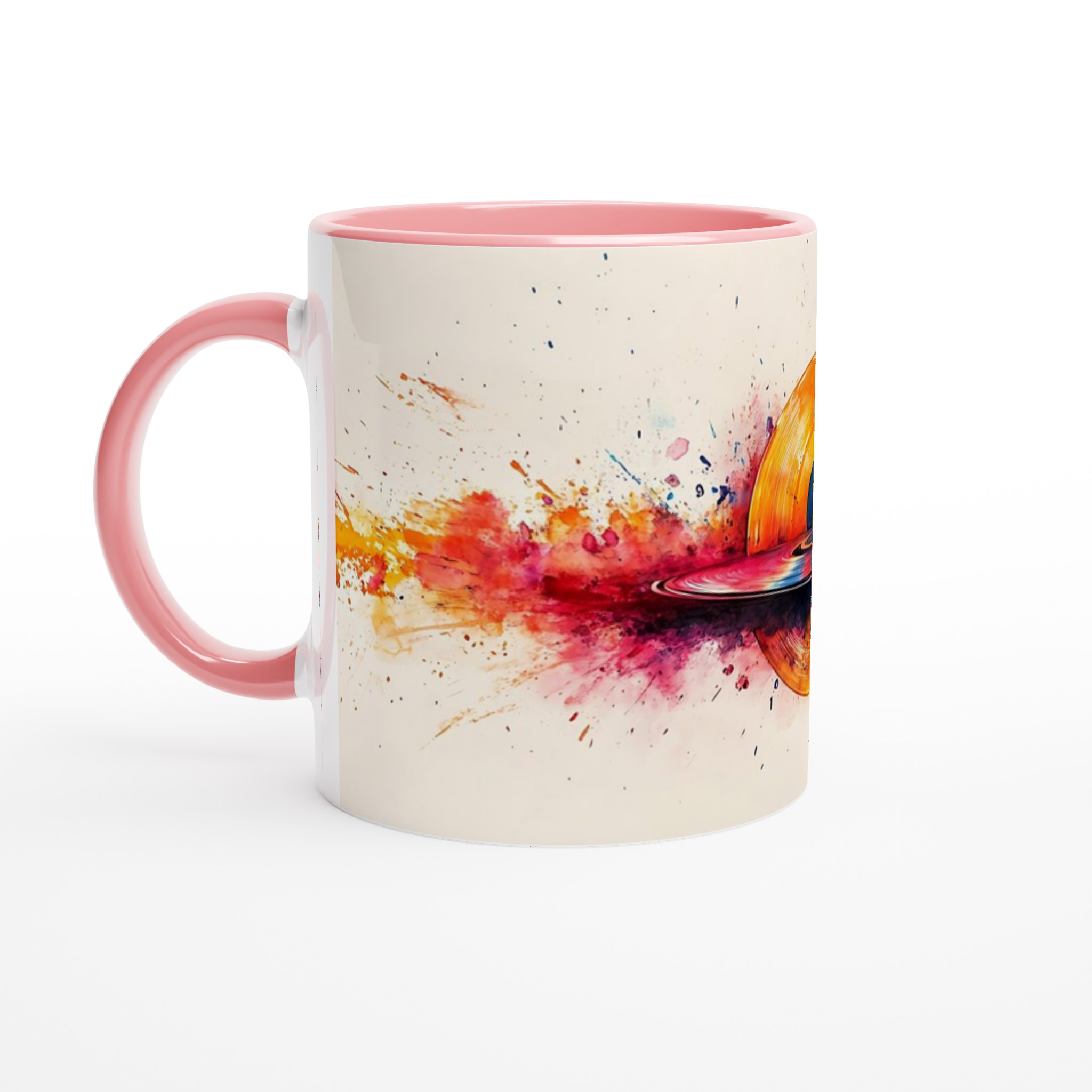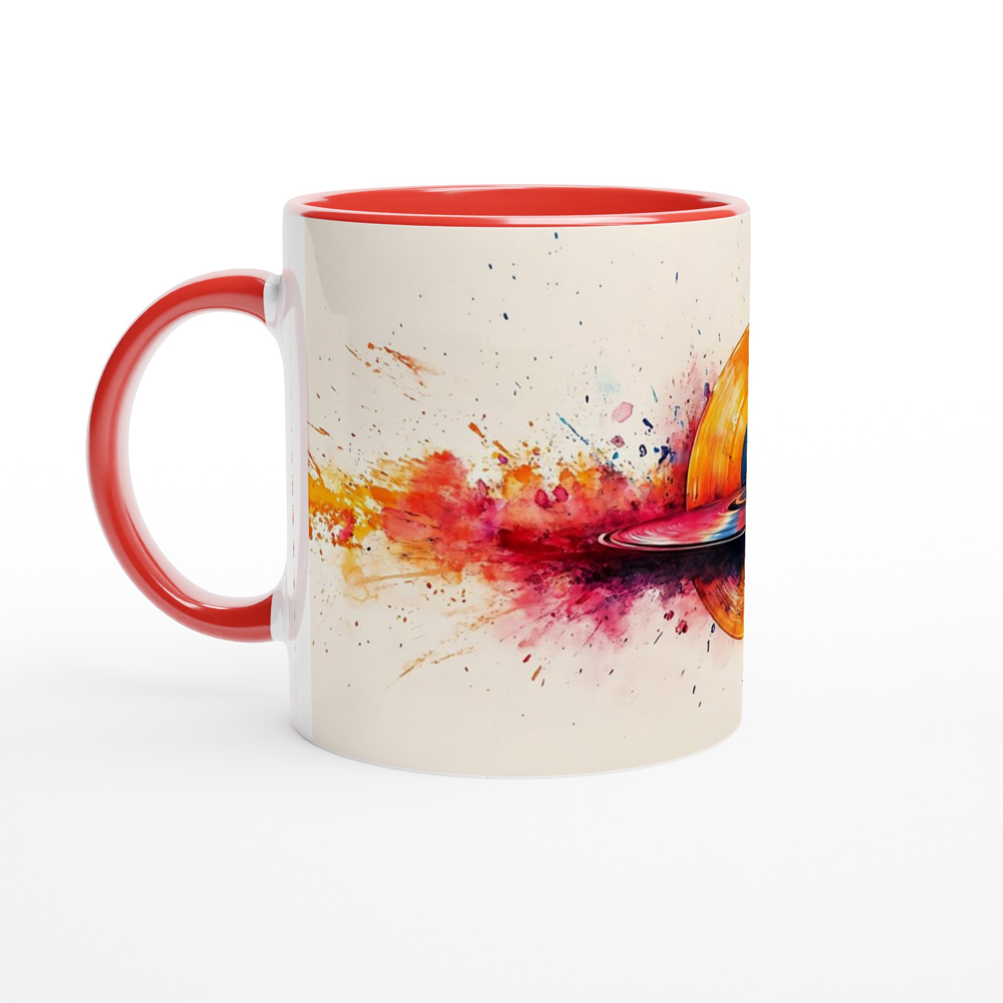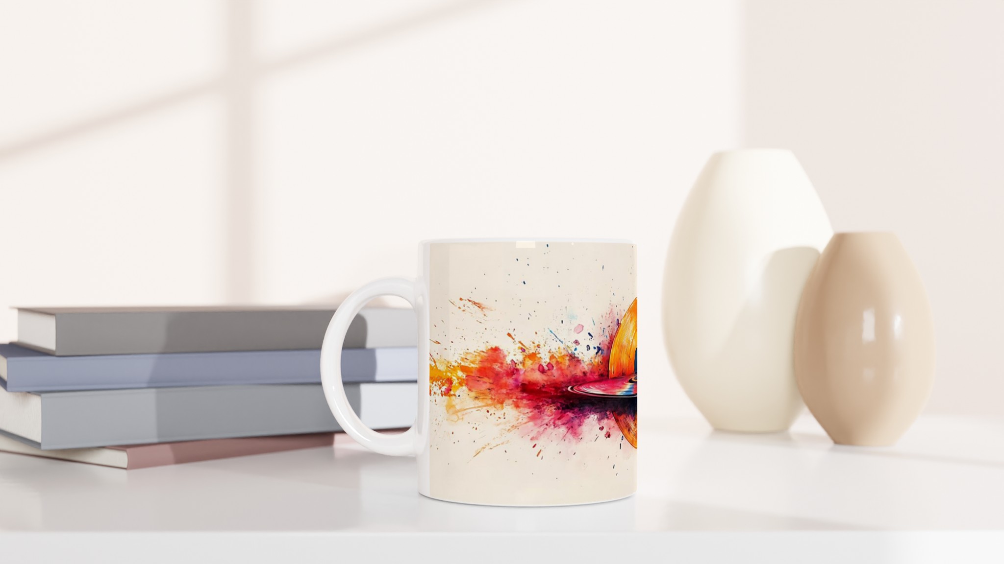 Lyft din fikastund till en konstnärlig upplevelse med vår unika keramiska mugg. Denna mugg fångar den pulserande energin från musik och färg, med ett design som hyllar vinylskivans tidlösa charm omgiven av ett lekfullt färgstänk i varma orange, röda och svala blå toner. Det är en perfekt kombination av retrocharm och modern konst som garanterat blir en konversationsstartare och din nya favorit för morgonkaffet, kvällens varma choklad eller när du bara vill njuta av en kopp te.