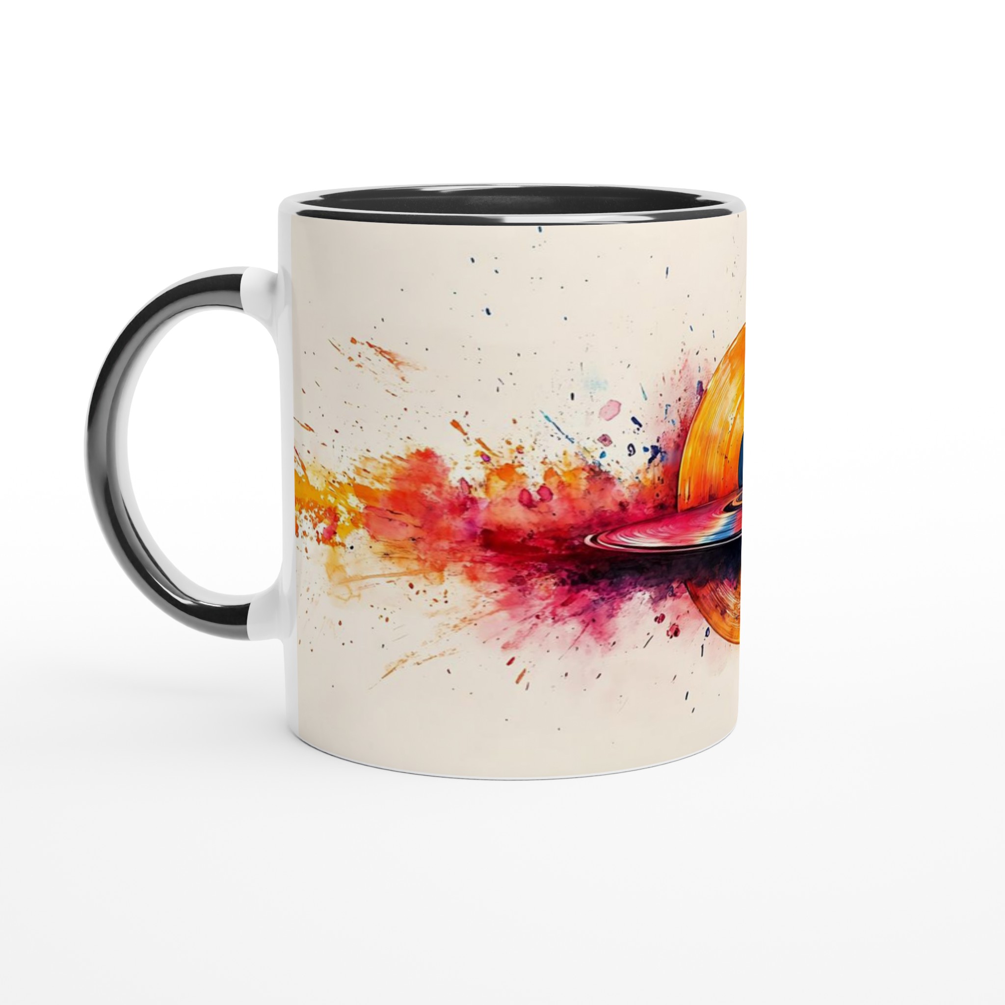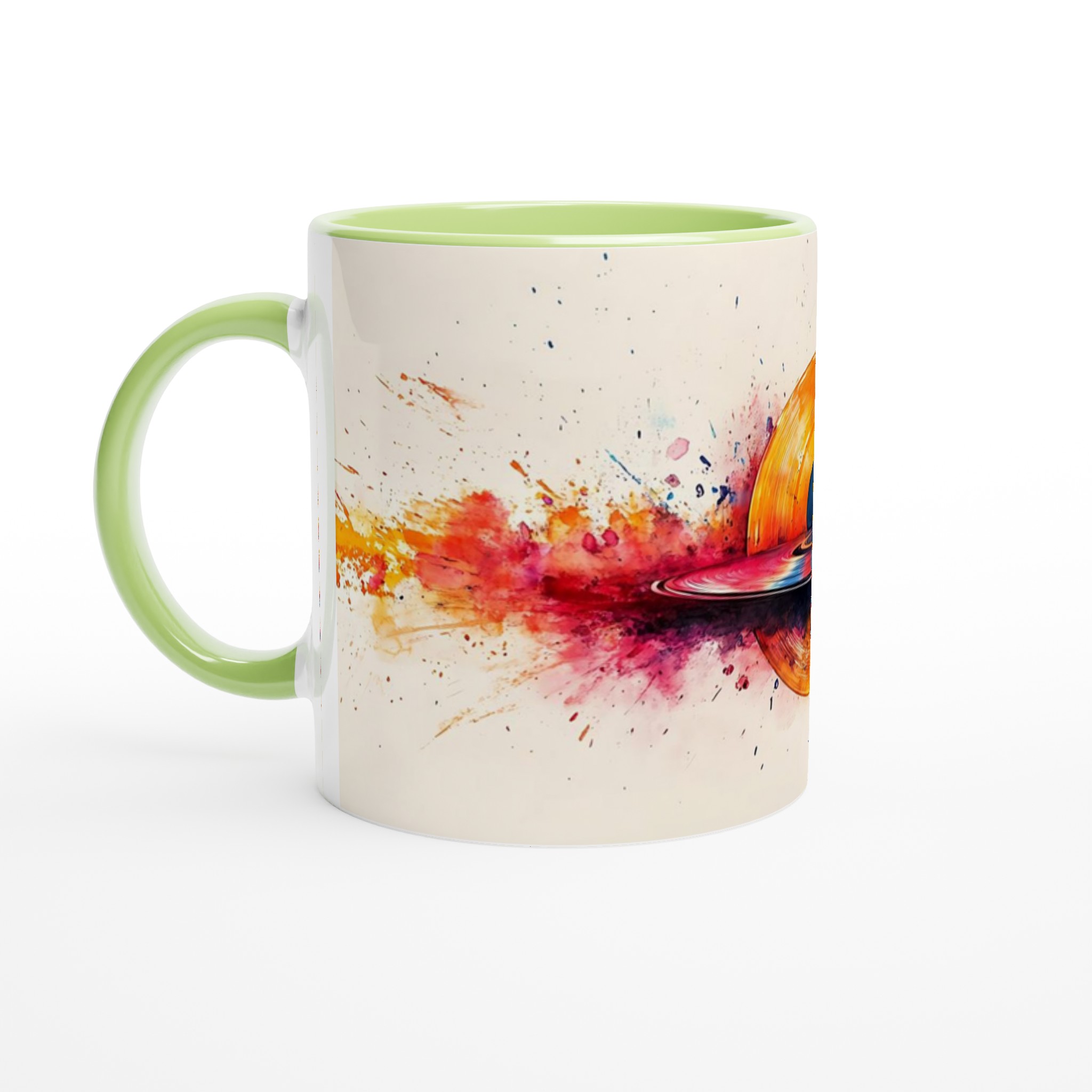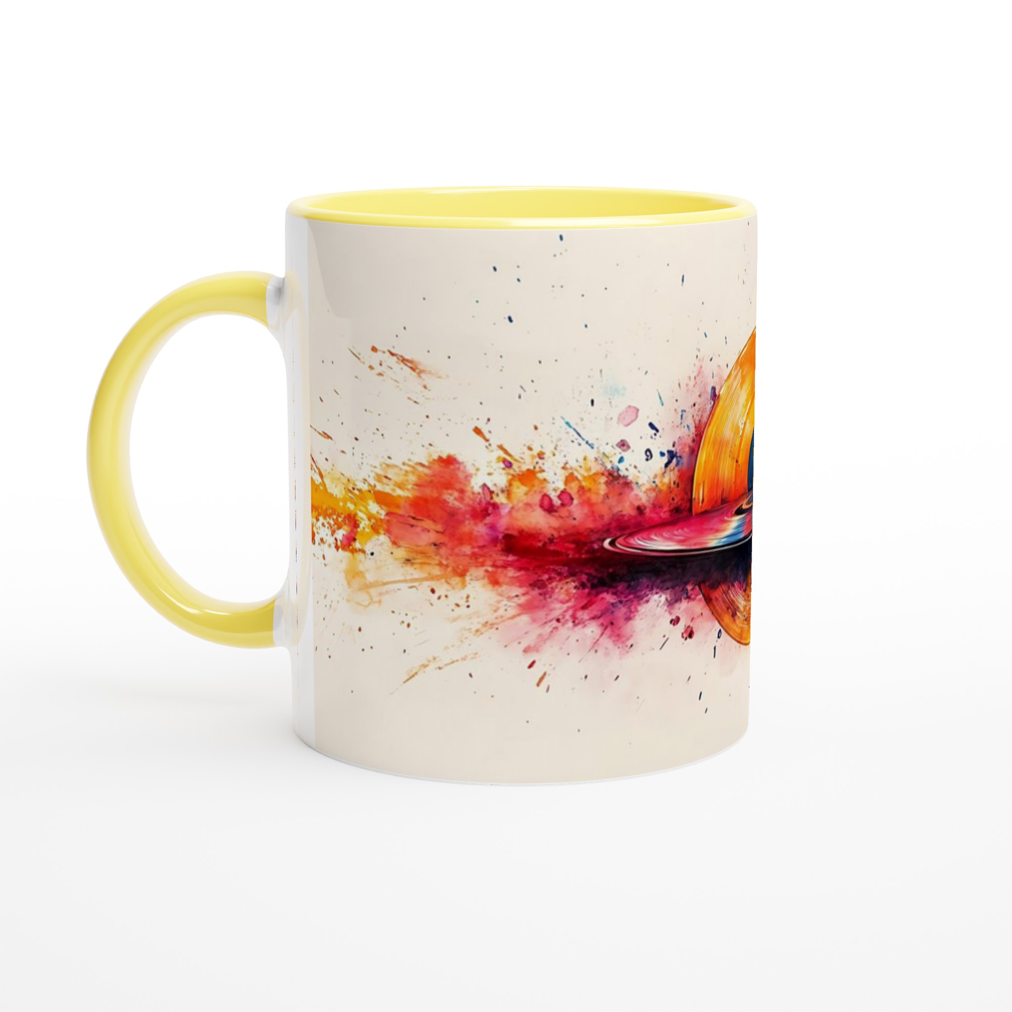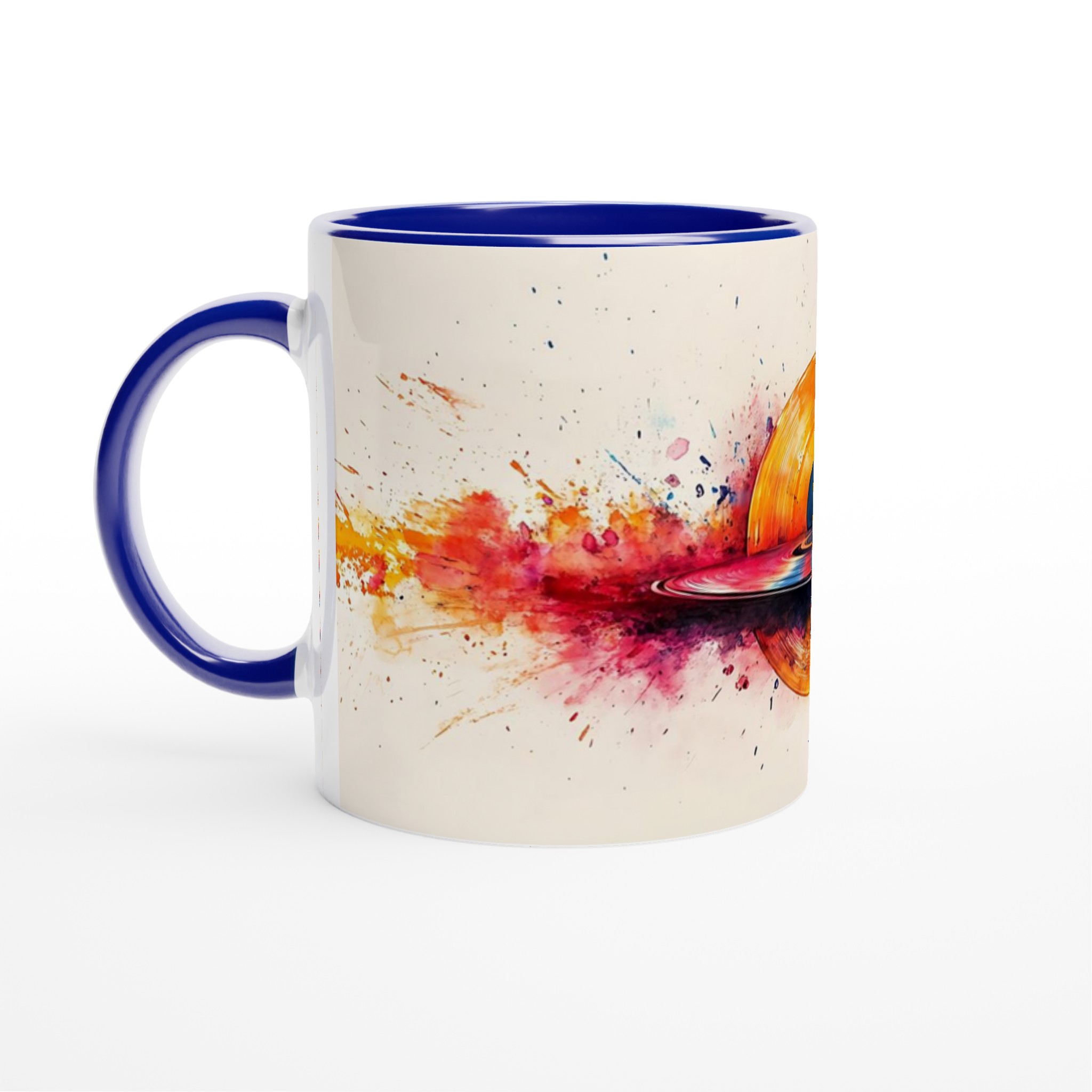 Lyft din fikastund till en konstnärlig upplevelse med vår unika keramiska mugg. Denna mugg fångar den pulserande energin från musik och färg, med ett design som hyllar vinylskivans tidlösa charm omgiven av ett lekfullt färgstänk i varma orange, röda och svala blå toner. Det är en perfekt kombination av retrocharm och modern konst som garanterat blir en konversationsstartare och din nya favorit för morgonkaffet, kvällens varma choklad eller när du bara vill njuta av en kopp te.