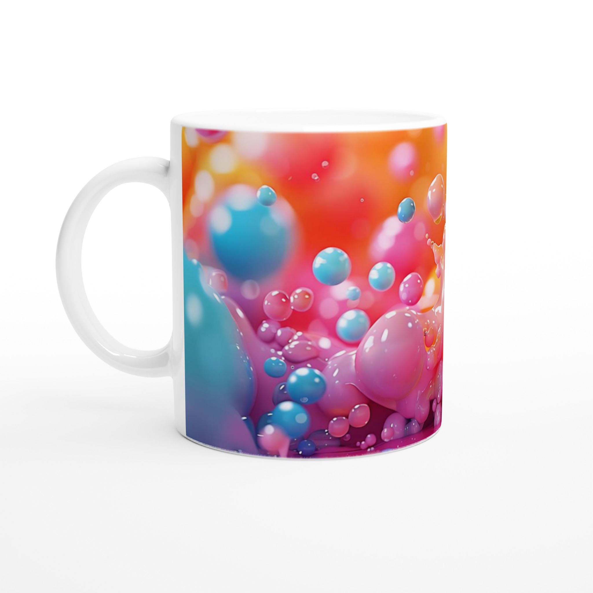 Inspirerad av den lekfulla glädjen hos färgglada bubblor, är denna mugg en fest för ögat. Den blanka vita ytan ger ett skarpt och levande tryck som verkligen sticker ut, oavsett om det är en personlig design, ett roligt citat eller en present till någon du tycker om.