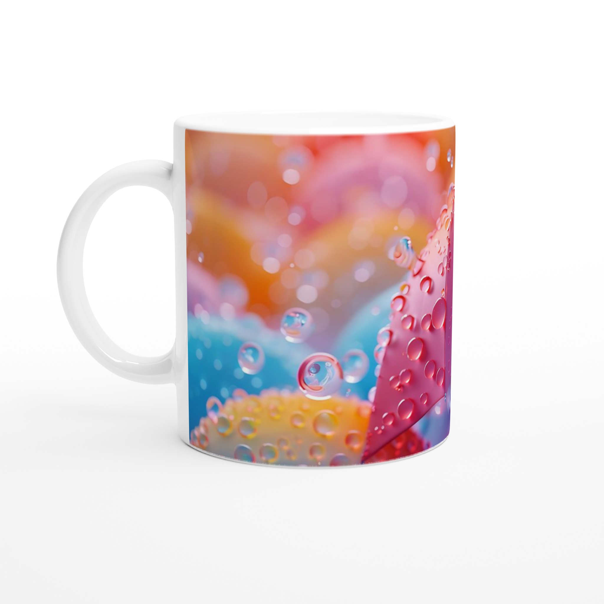 Inspirerad av lekfulla regndroppar och en drömsk färgpalett, är denna mugg mer än bara en kopp – den är en daglig påminnelse om glädje och unika stunder. Den blanka ytan ger ett skarpt och levande tryck som verkligen sticker ut, oavsett om det är en personlig design, ett roligt citat eller en present till någon du tycker om.