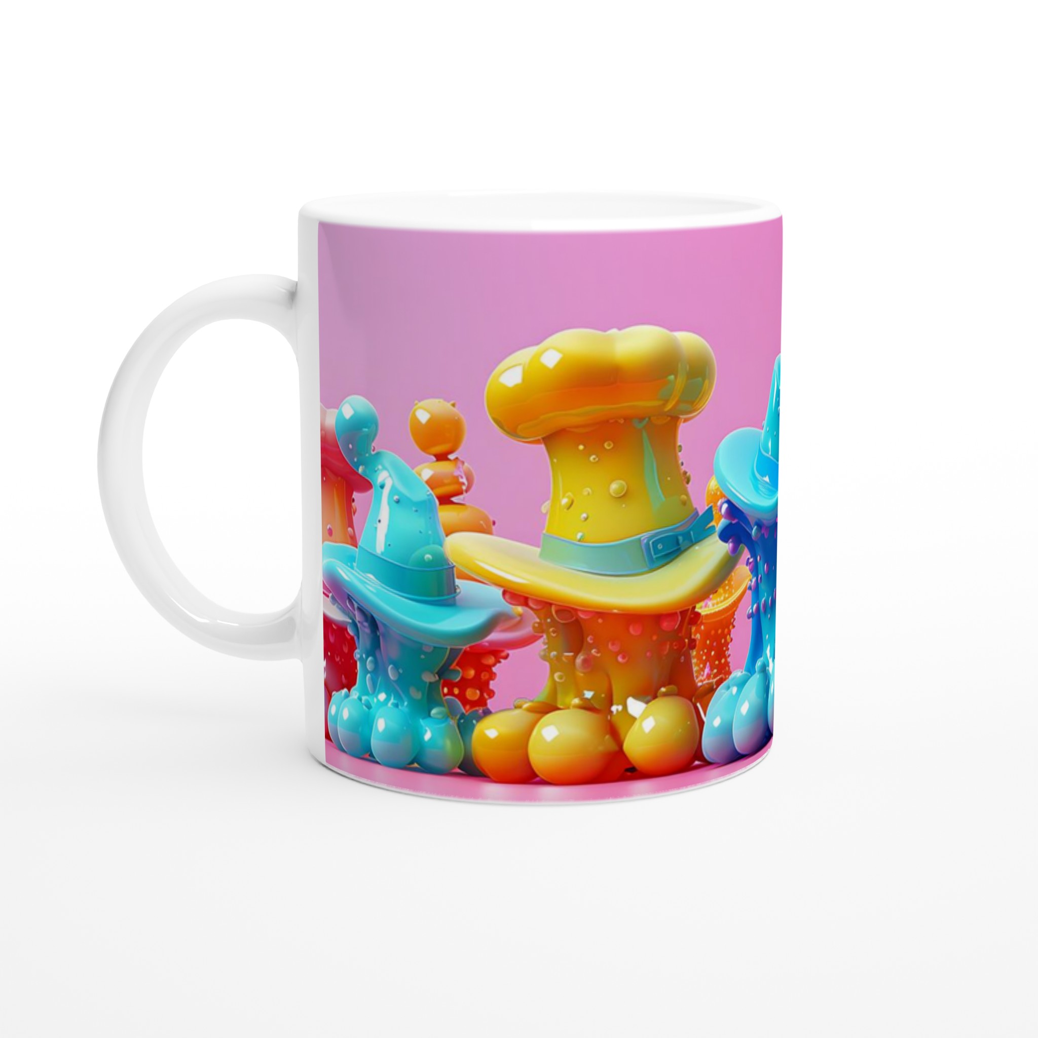 Väck liv i din dryckesrutin med en explosion av färg! Inspirerad av lekfulla, fantasifulla former och en förtrollande palett av godisfärger, låter denna 11 oz keramiska mugg dig omfamna glädjen i varje klunk. Den är inte bara en mugg; det är en daglig dos av magi, perfekt för att lysa upp morgonkaffet, teet eller din favoritdryck på kontoret. Förvandla varje paus till en fest med en mugg som speglar din unika, livfulla stil!