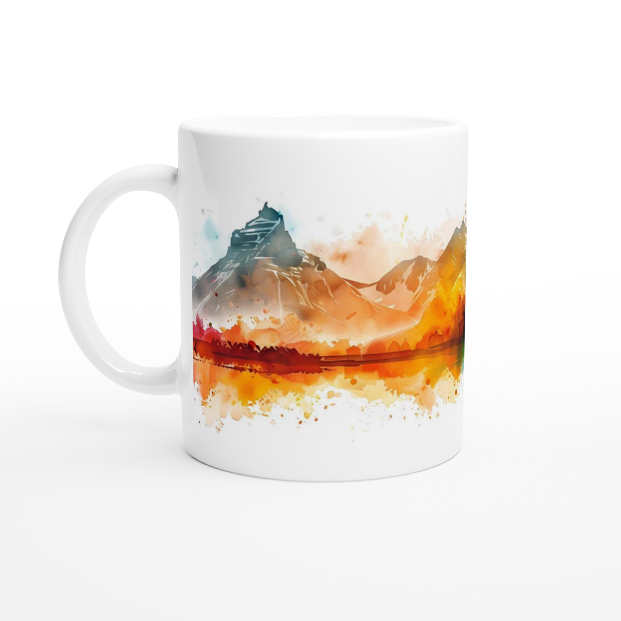 Färgglad Akvarell Berg- och Stadssilhuett Mugg – Unik 11oz Keramisk Kaffemugg i ditt val av 7 nyanser