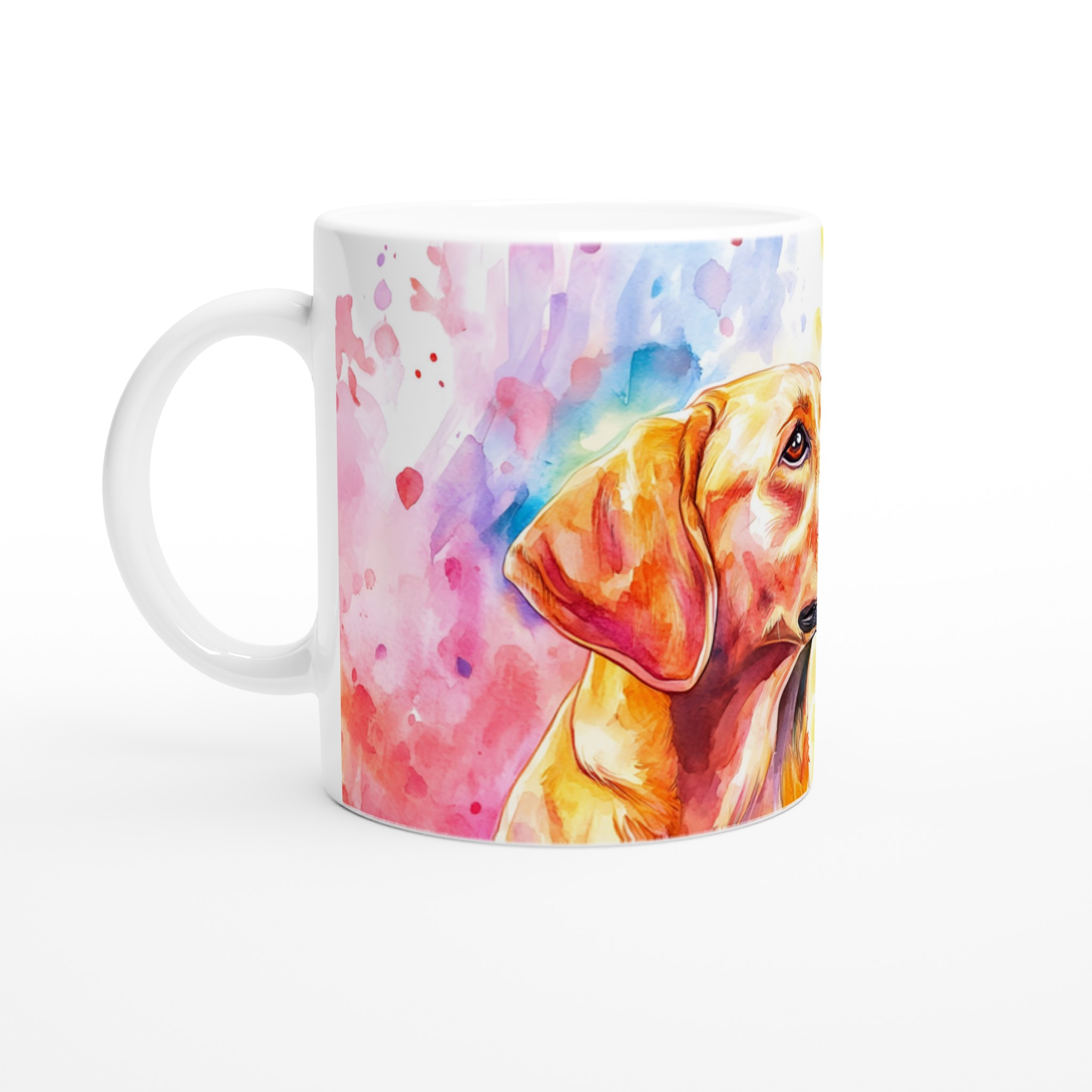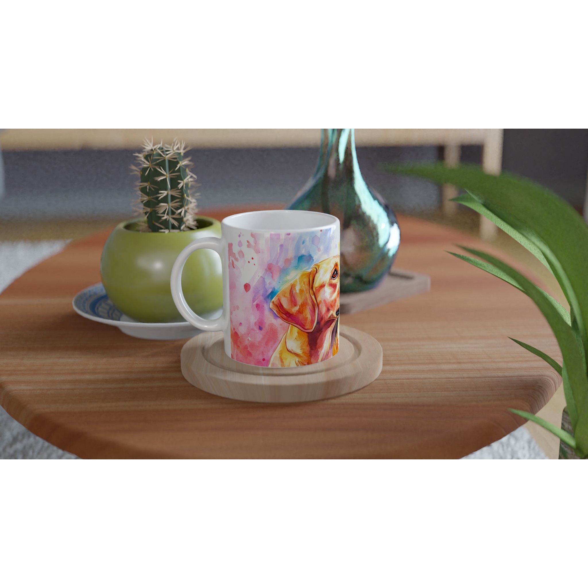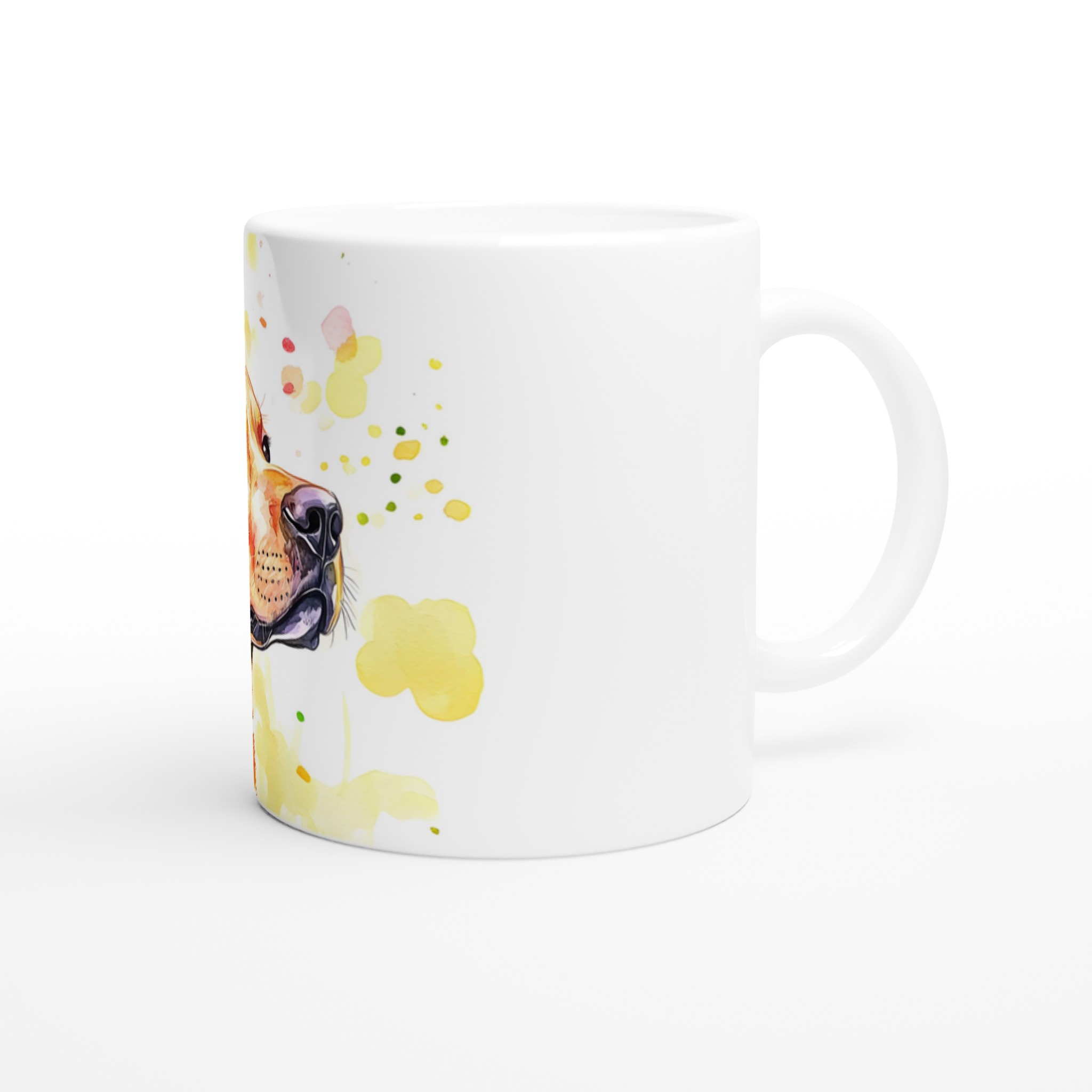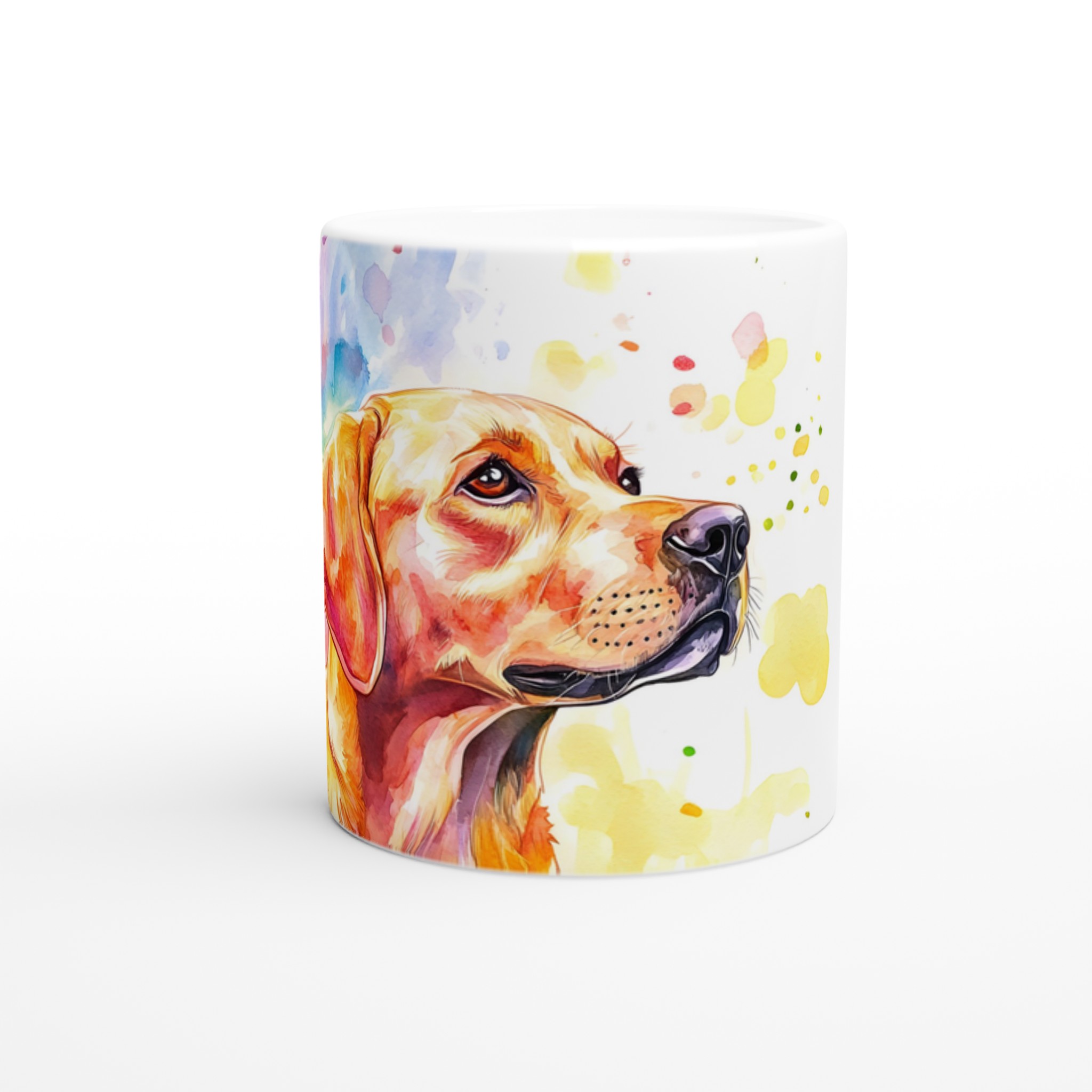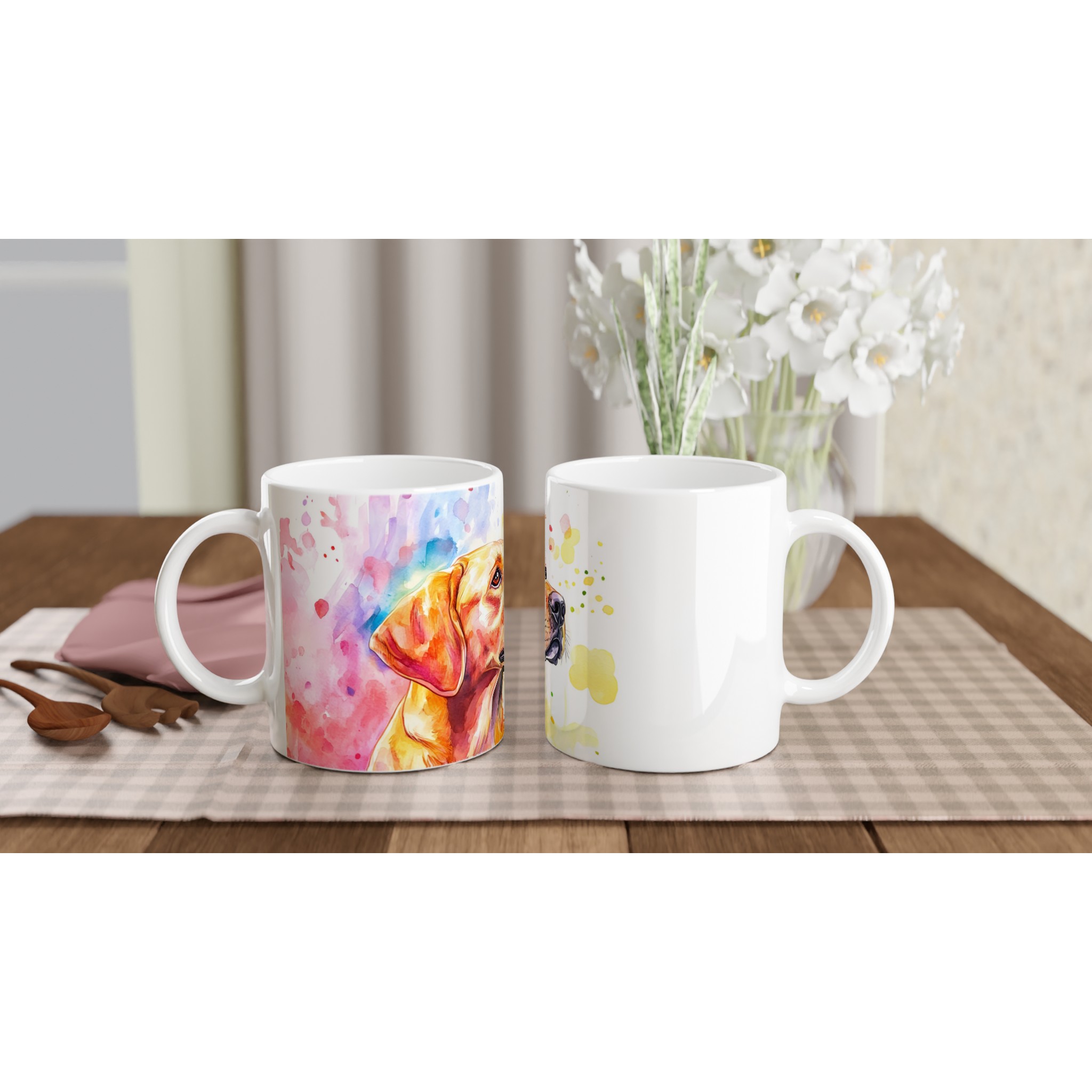 Lys upp din dag med vår charmiga keramiska mugg, prydd med en levande akvarellillustration av en älskvärd labrador. De mjuka penseldragen och den lekfulla färgpaletten av rosa, lila, blått och gult skapar en känsla av glädje och lugn, perfekt för alla som älskar hundar eller uppskattar konstnärlig design. Denna mugg är mer än bara ett kärl för din favoritdryck – den är en daglig påminnelse om värme och skönhet.