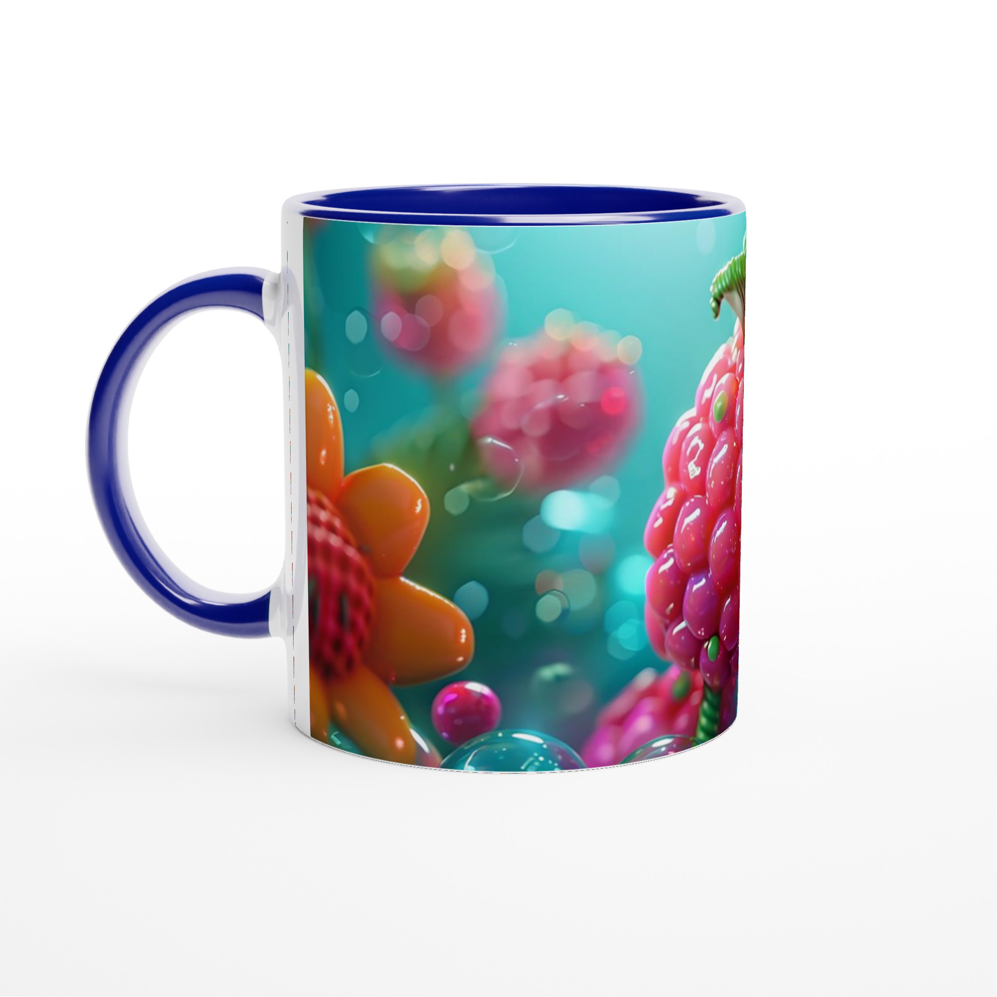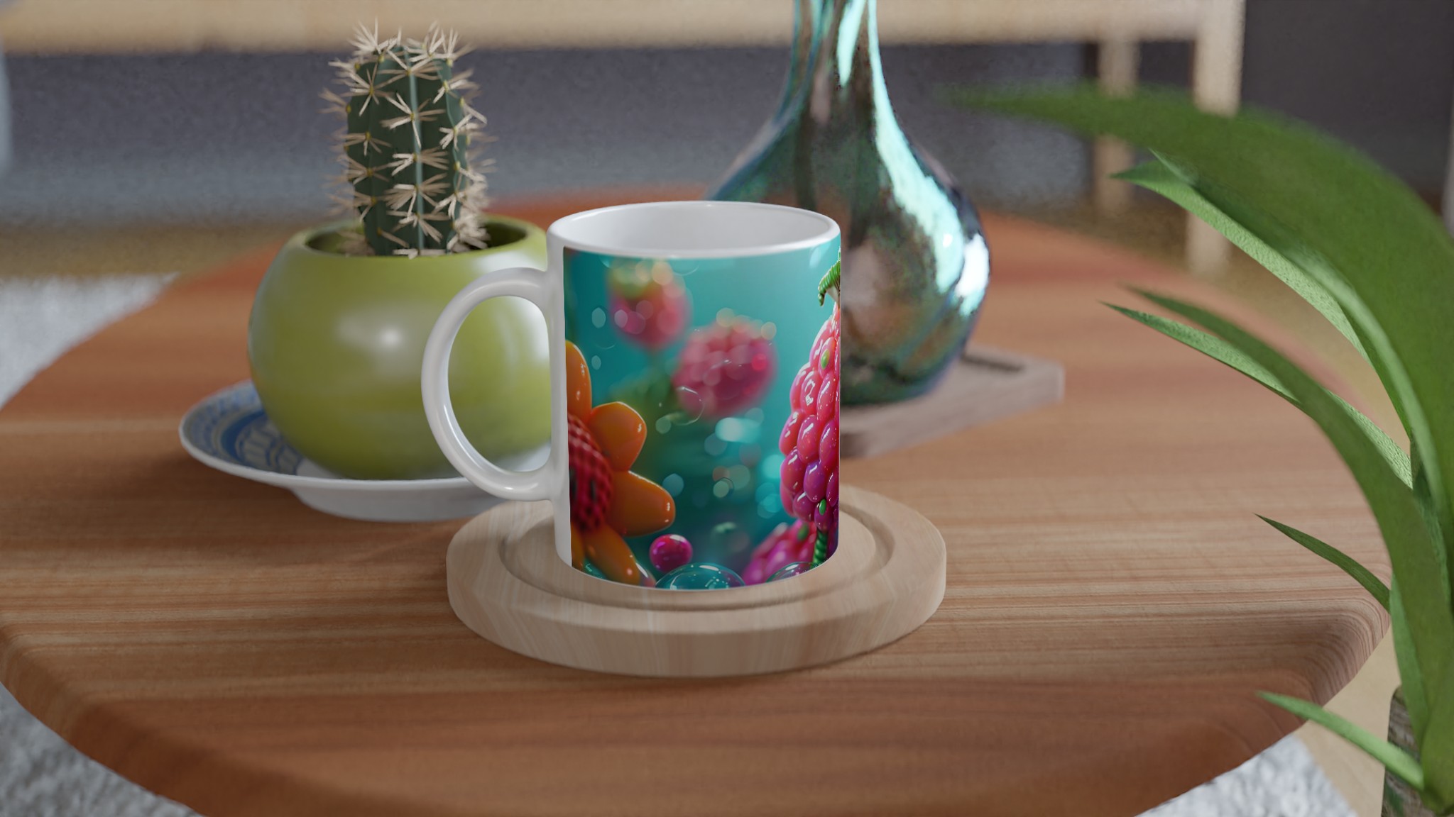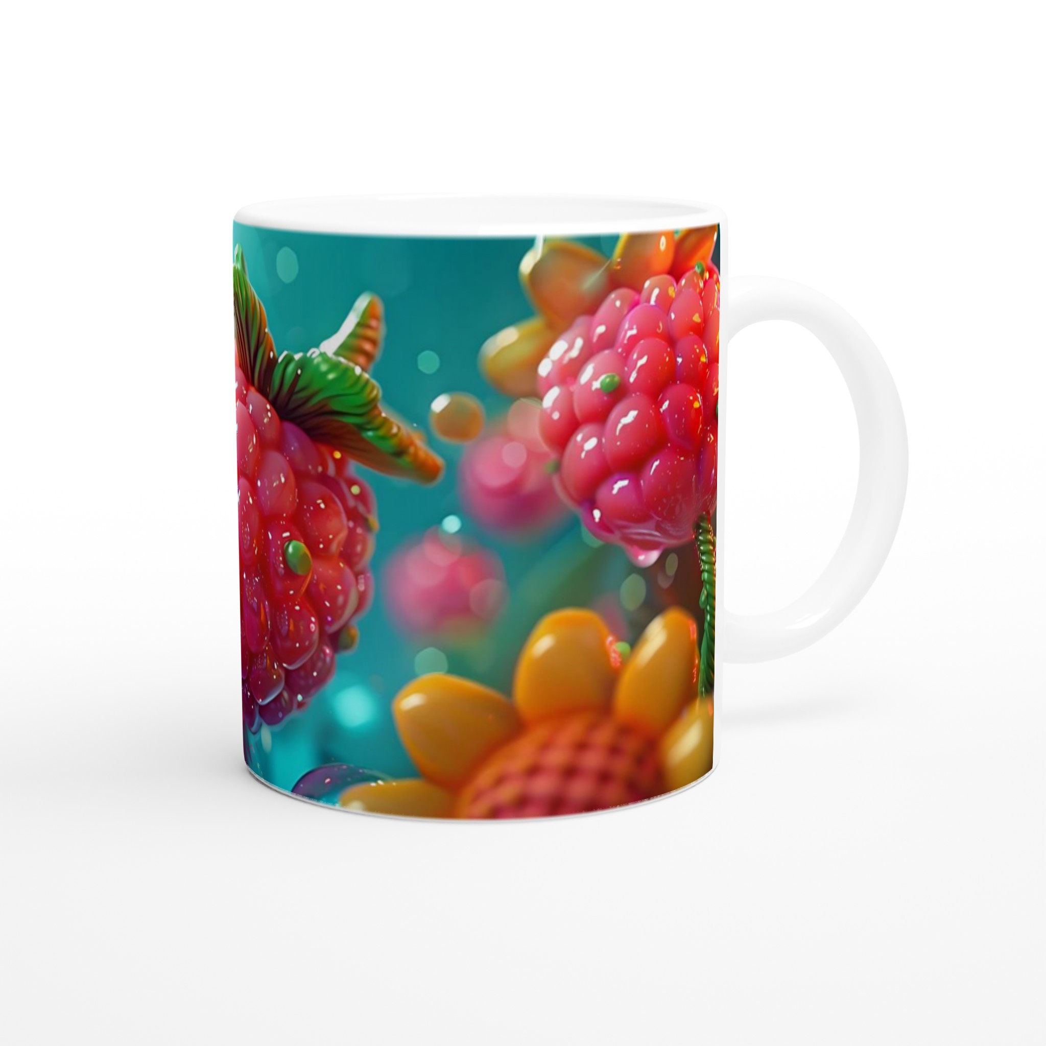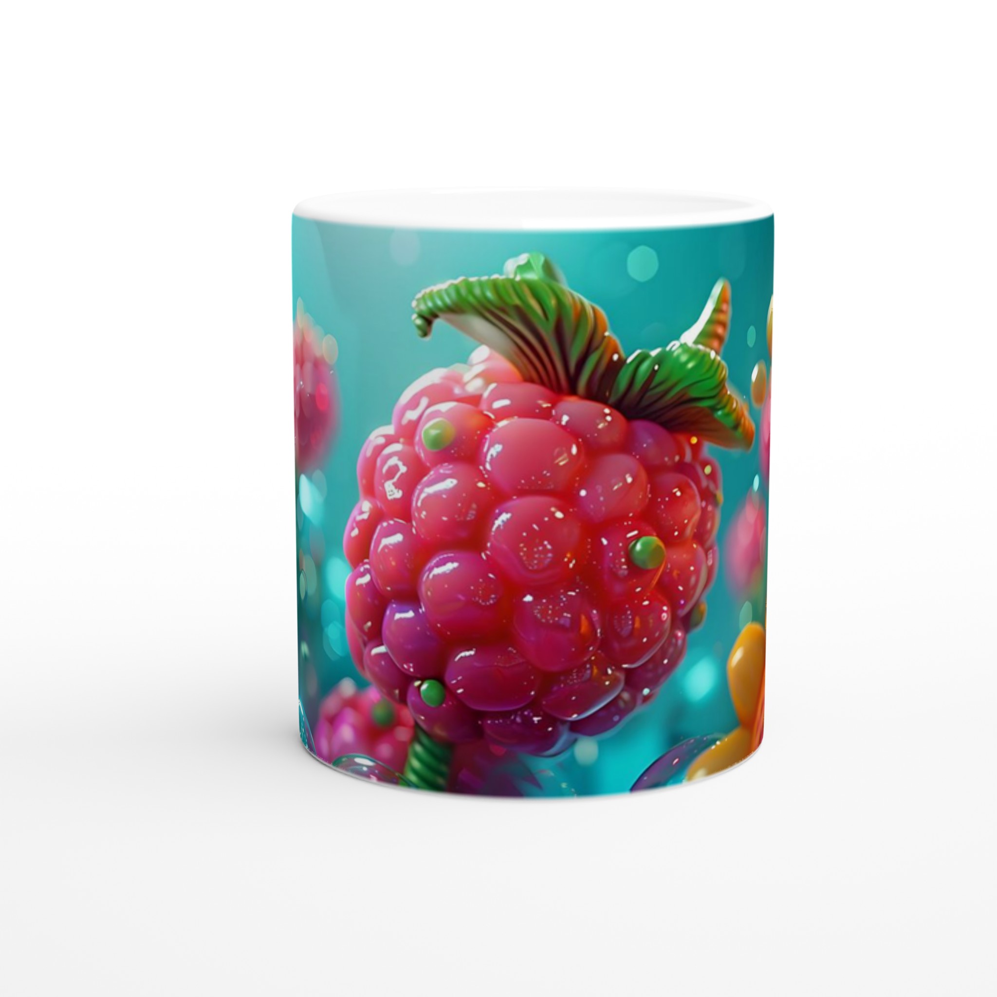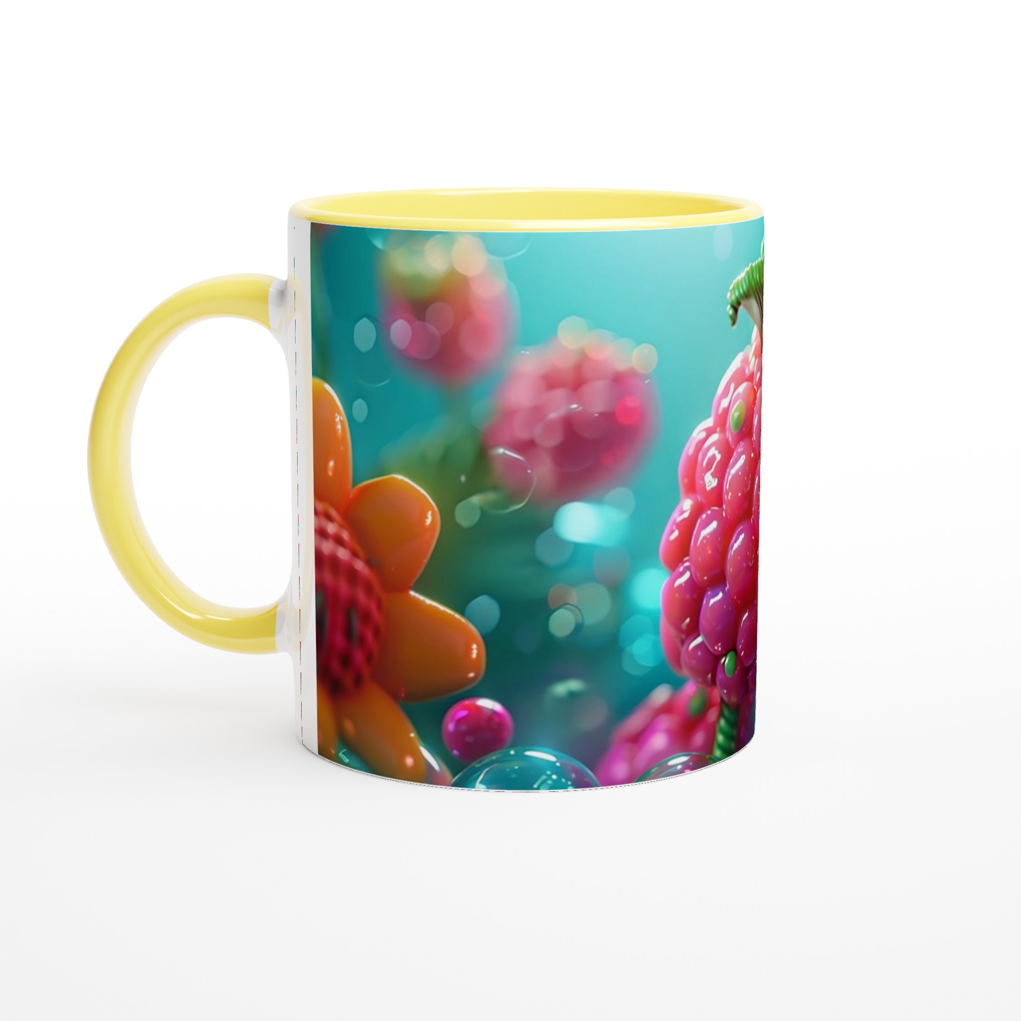 Sätt lite extra färg på din vardag med denna lekfulla keramiska mugg. Inspirerad av bilden, där glänsande, bubbliga ”bär” i klara nyanser av hallonrosa och gult poppar mot en turkos bakgrund, blir denna mugg snabbt en favorit för dem som älskar det lilla extra. Perfekt för morgonkaffet, kvällens varma choklad eller när du bara vill njuta av en kopp te – varje klunk blir en fest för sinnena. Den blanka ytan framhäver trycken med klara och levande färger, som håller sig fina även efter många turer i mikron och diskmaskinen.