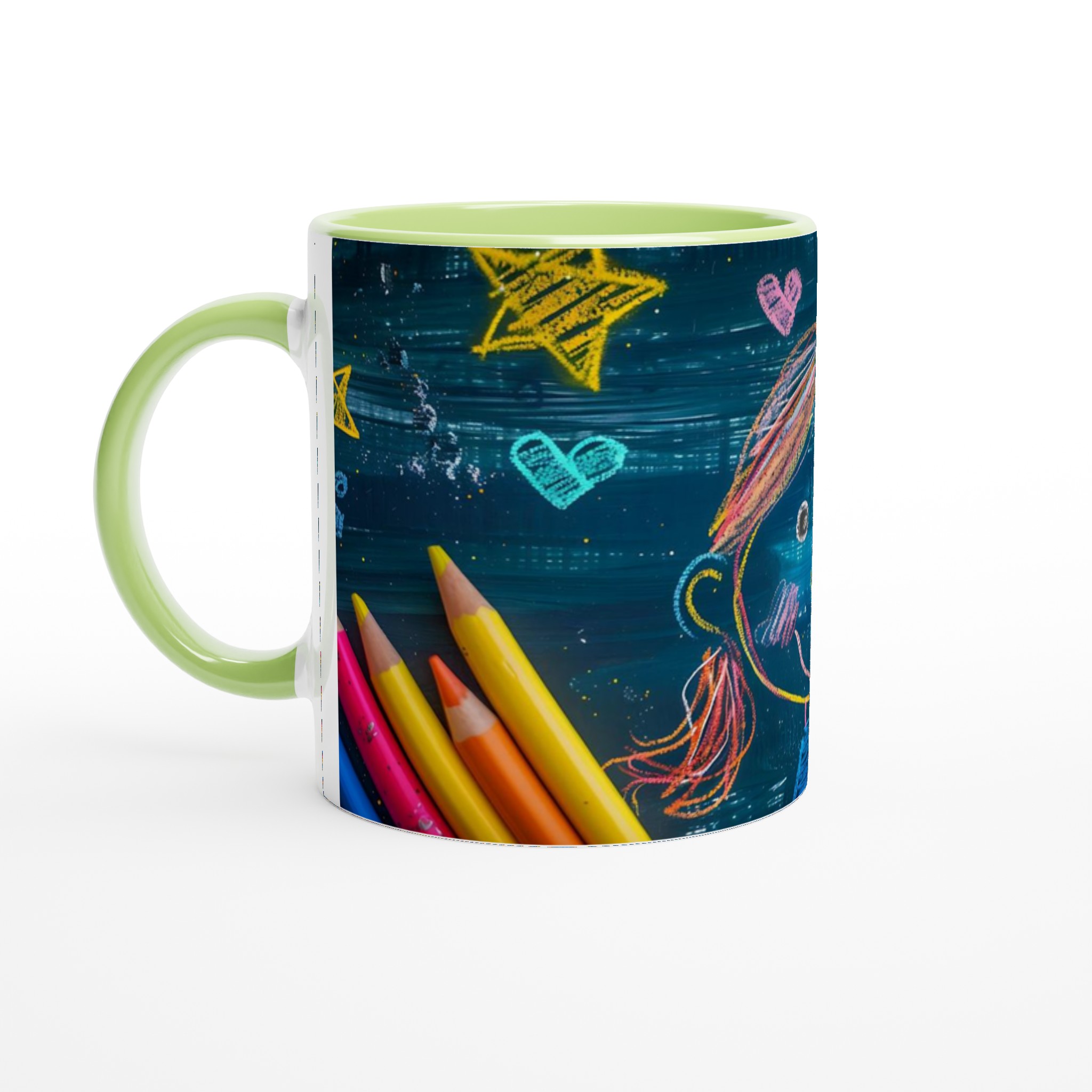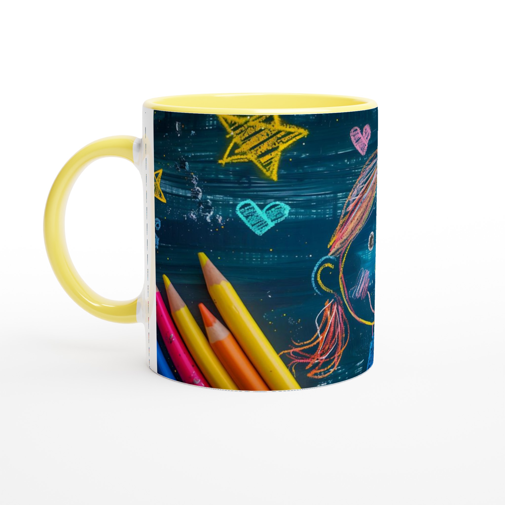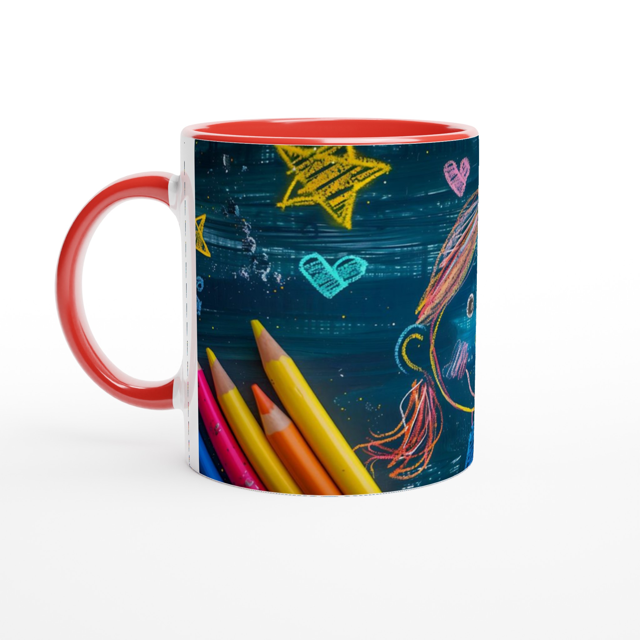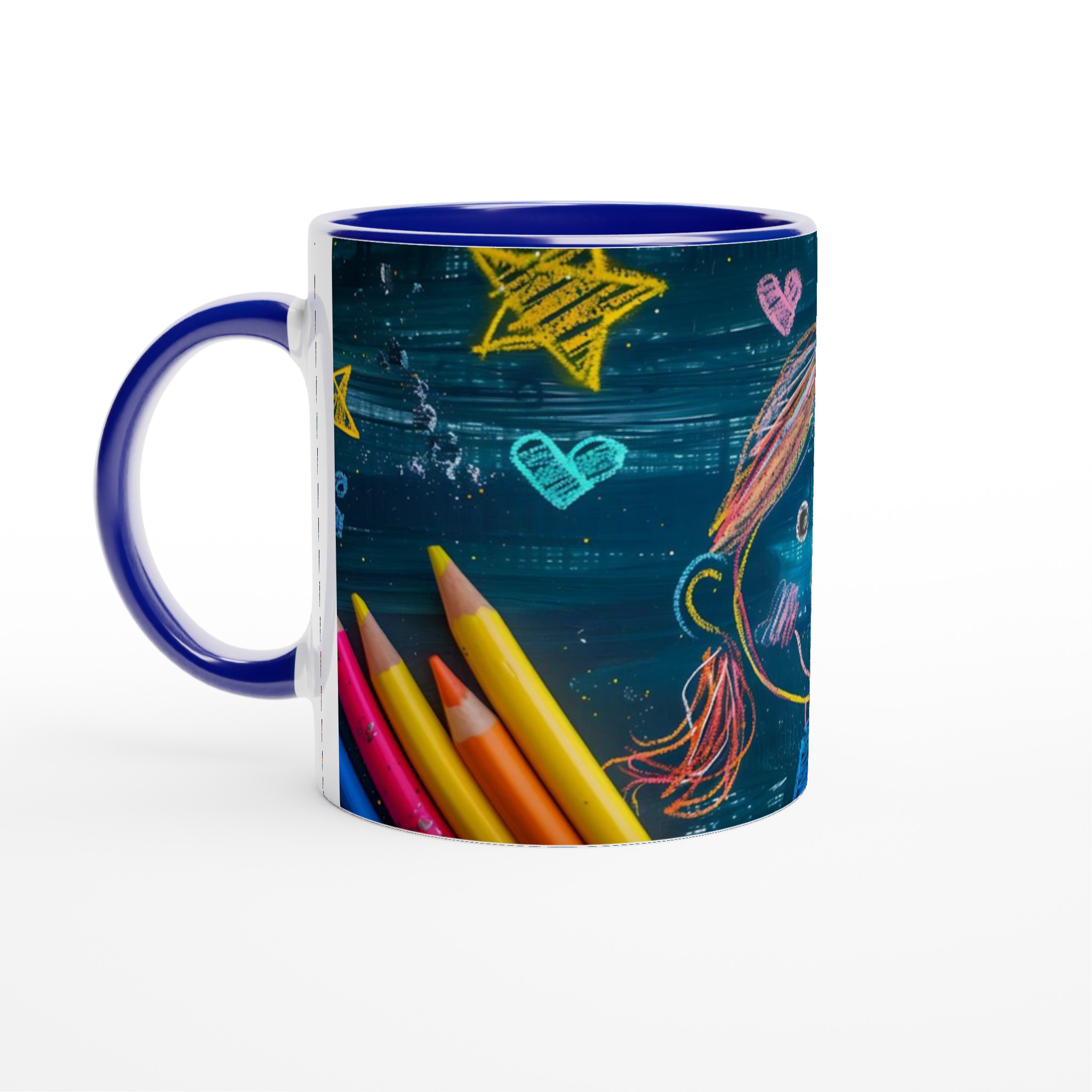 Väck ditt inre barn med denna charmiga keramiska mugg, som blir en omedelbar vardagsfavorit! Föreställ dig den glada energin från handritade stjärnor, hjärtan och en söt barnfigur som lyser upp din morgon. Perfekt för morgonkaffet, kvällens varma choklad eller när du bara vill njuta av en kopp te i en mugg som sprider leenden.