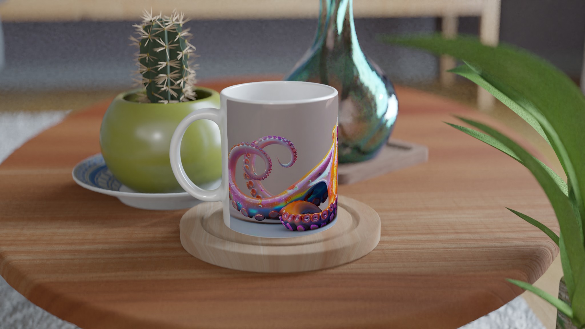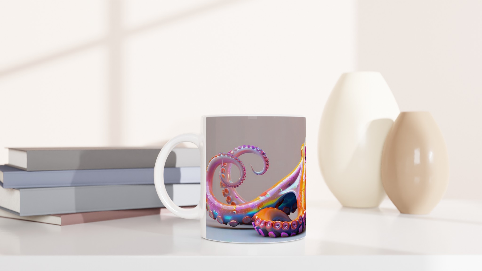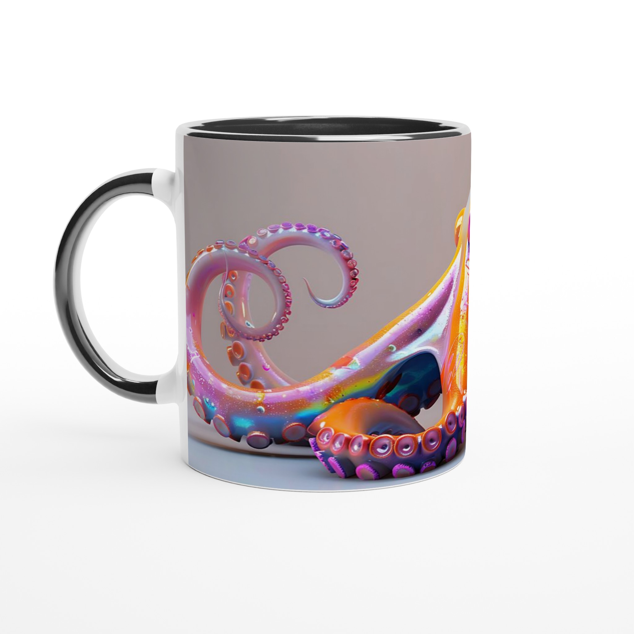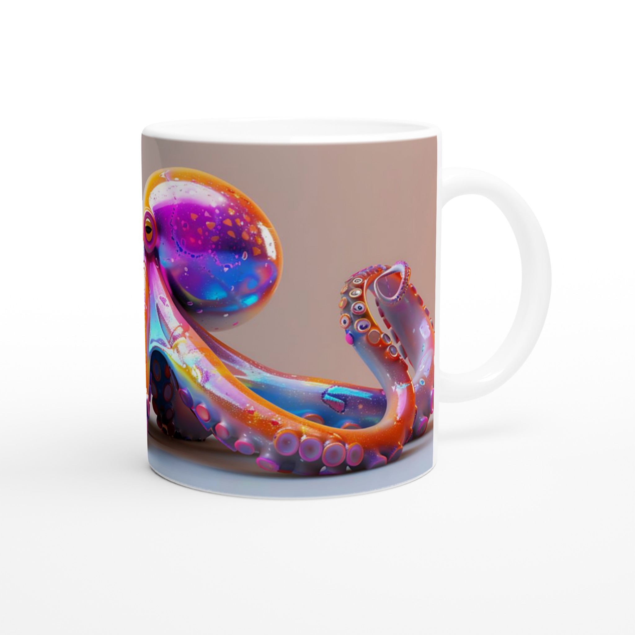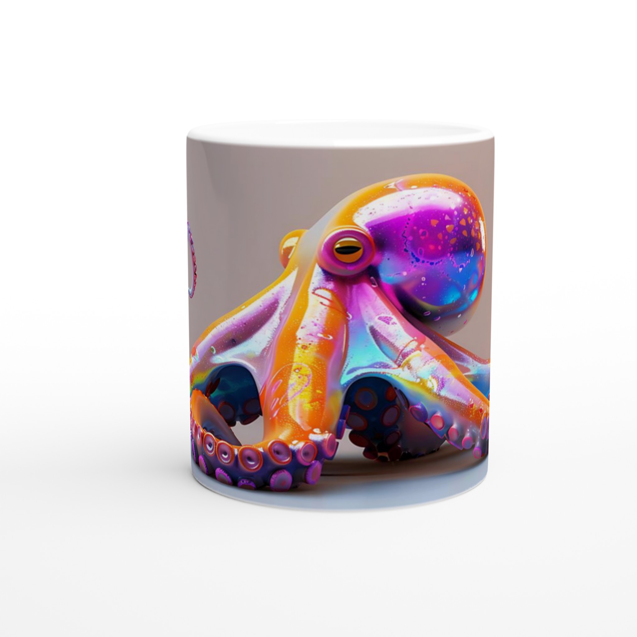 Dyk ner i en värld av färg varje gång du tar en klunk! Denna iögonfallande keramiska mugg, prydd med en levande, regnbågsfärgad bläckfisk, är mer än bara en kopp – den är ett konstverk som lyser upp din dag. Låt dess glänsande yta och lekfulla design inspirera dig, oavsett om det är med morgonkaffet, kvällens lugnande te eller en värmande choklad.