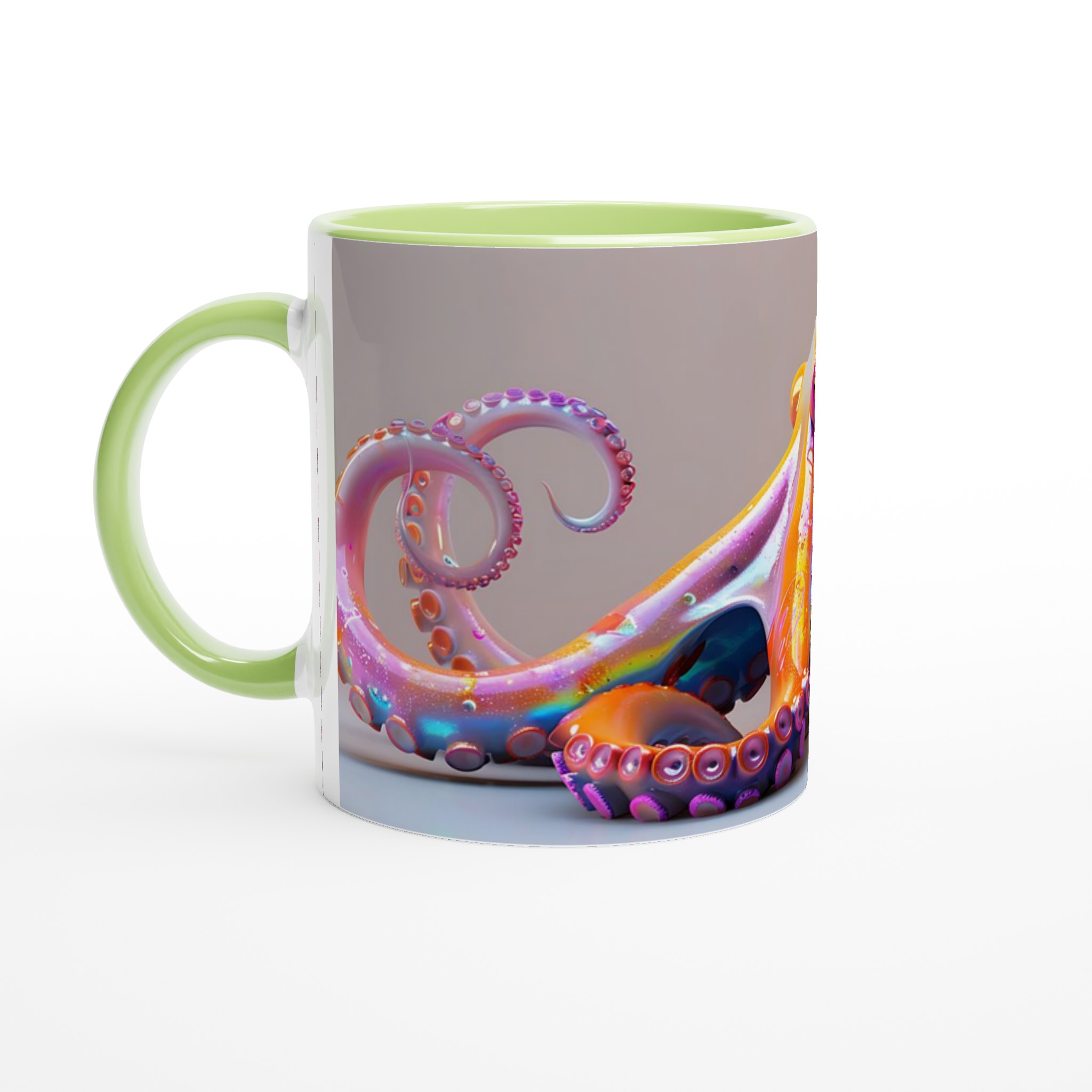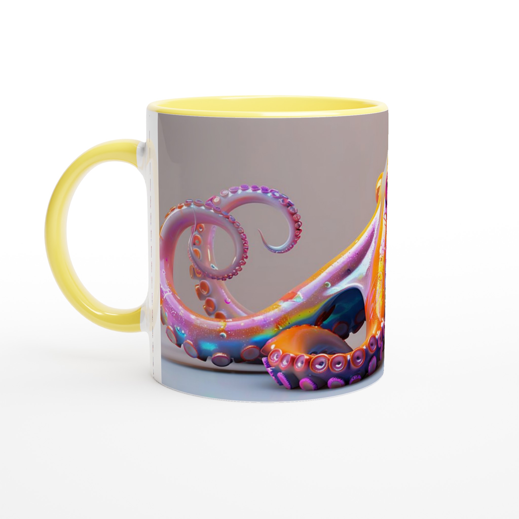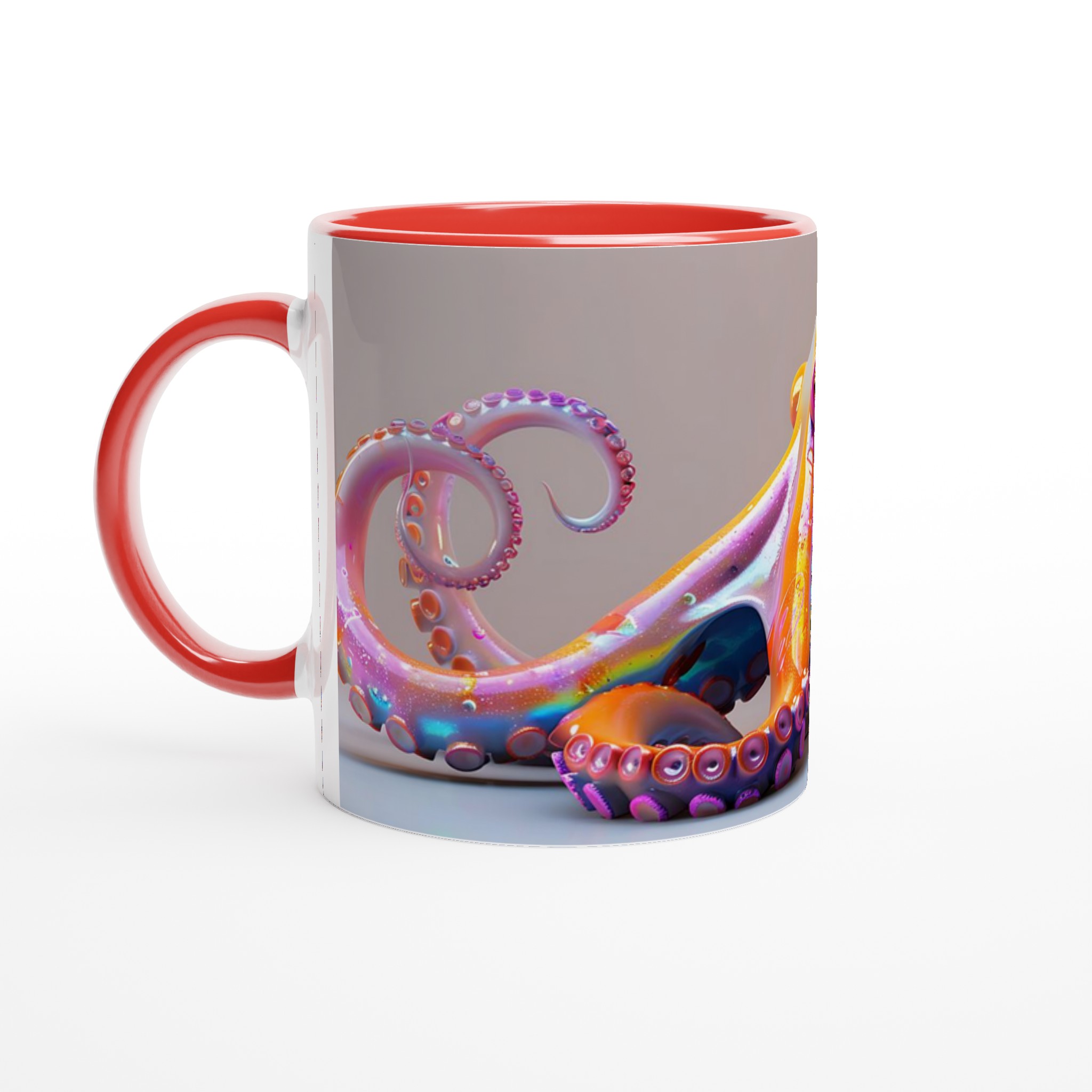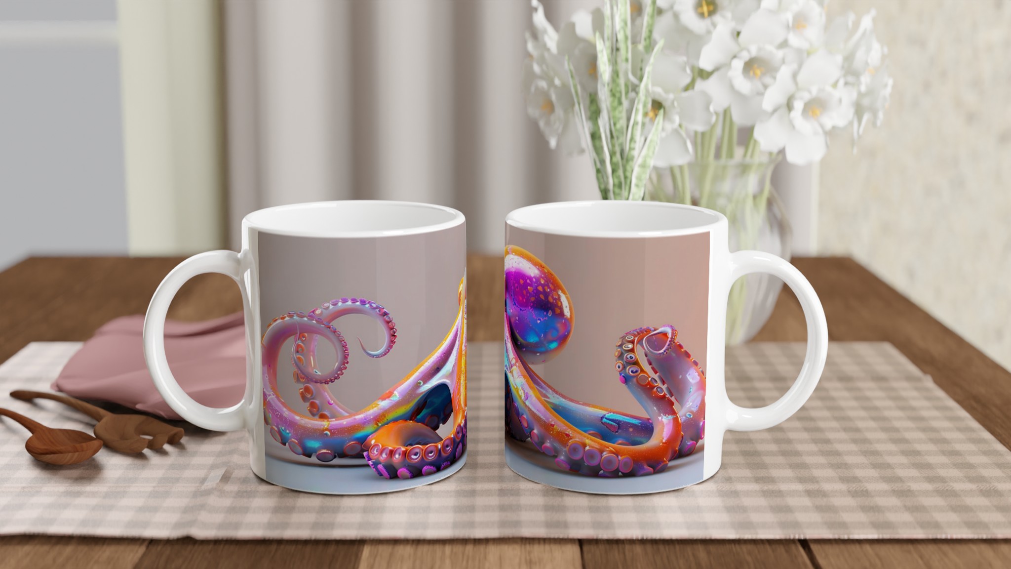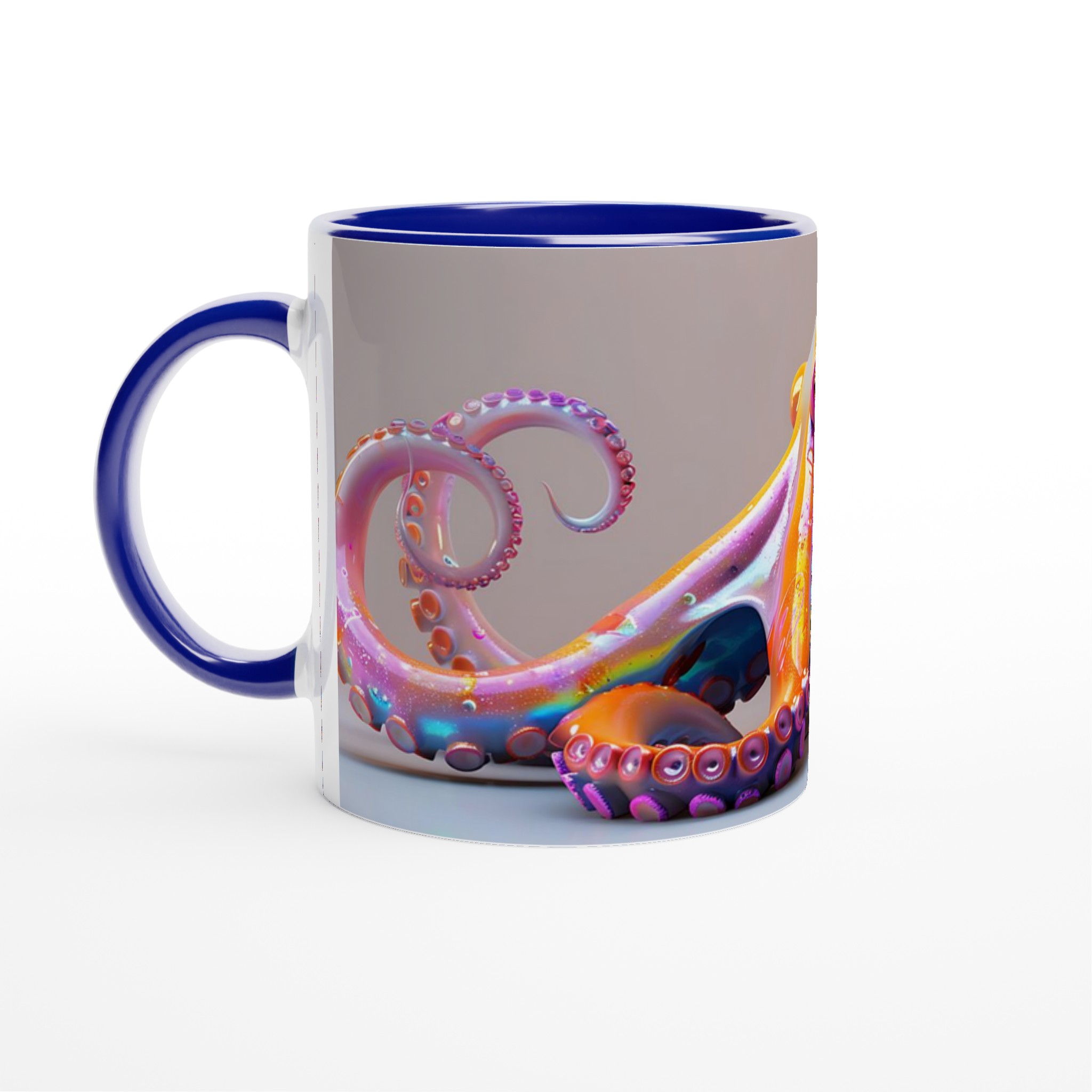 Dyk ner i en värld av färg varje gång du tar en klunk! Denna iögonfallande keramiska mugg, prydd med en levande, regnbågsfärgad bläckfisk, är mer än bara en kopp – den är ett konstverk som lyser upp din dag. Låt dess glänsande yta och lekfulla design inspirera dig, oavsett om det är med morgonkaffet, kvällens lugnande te eller en värmande choklad.