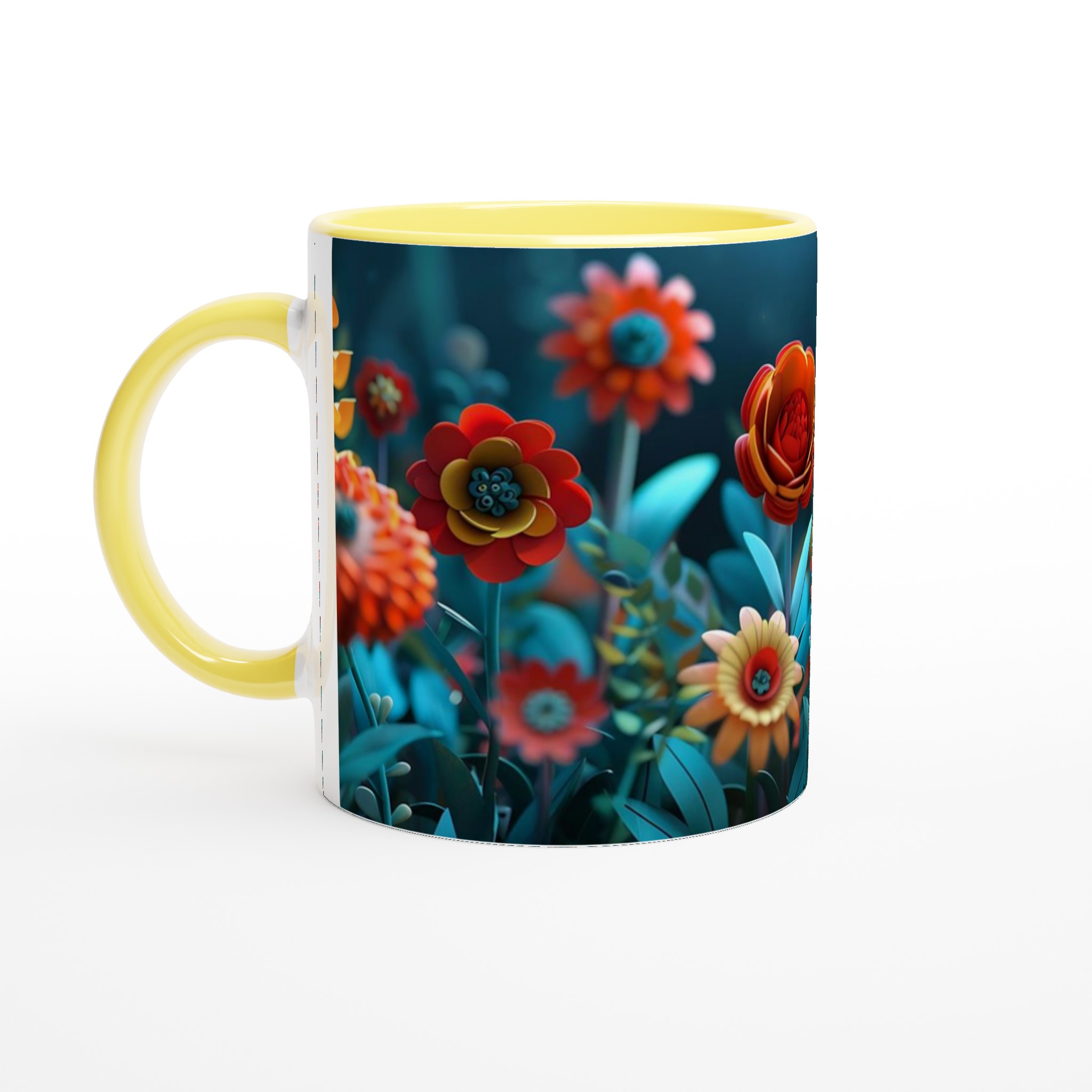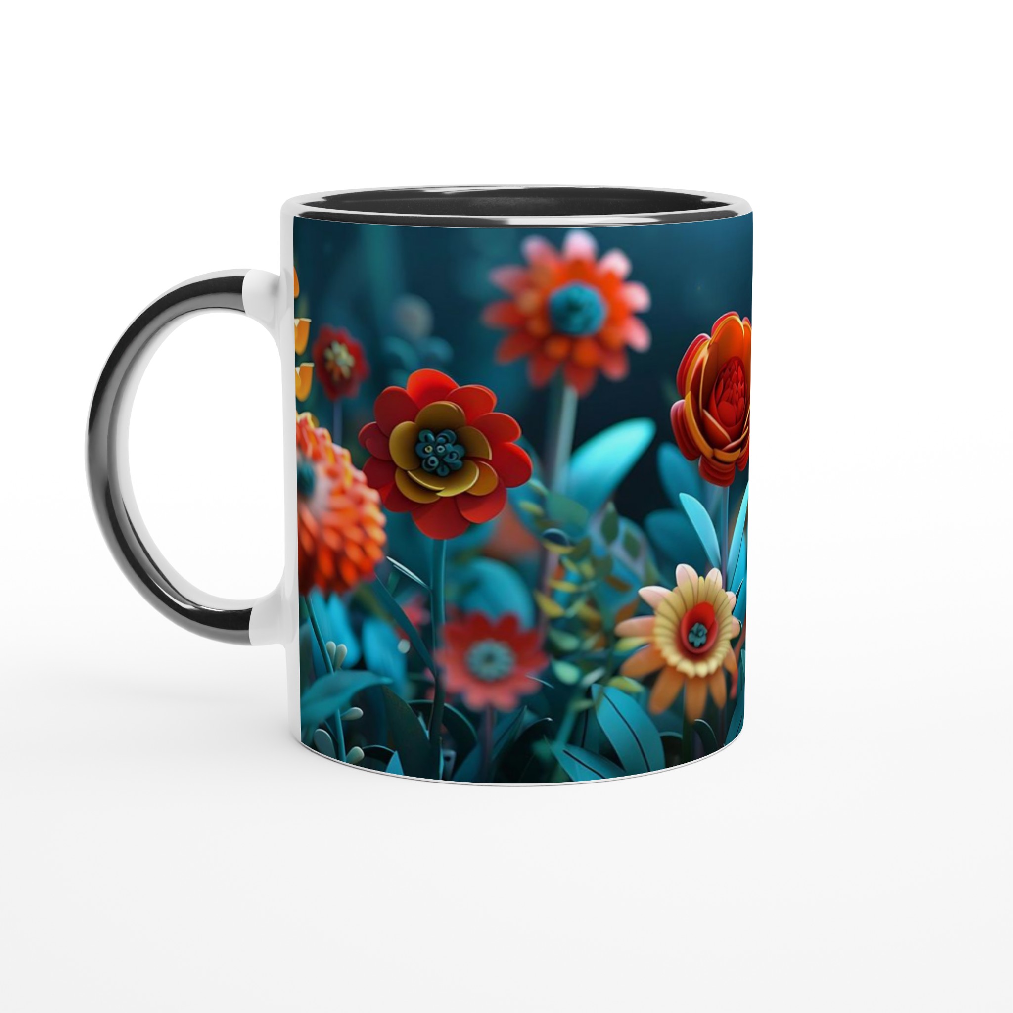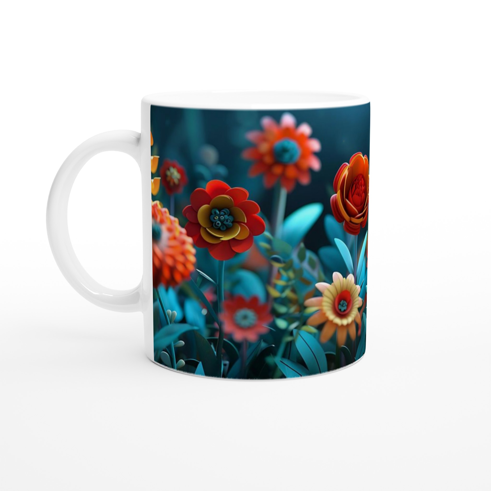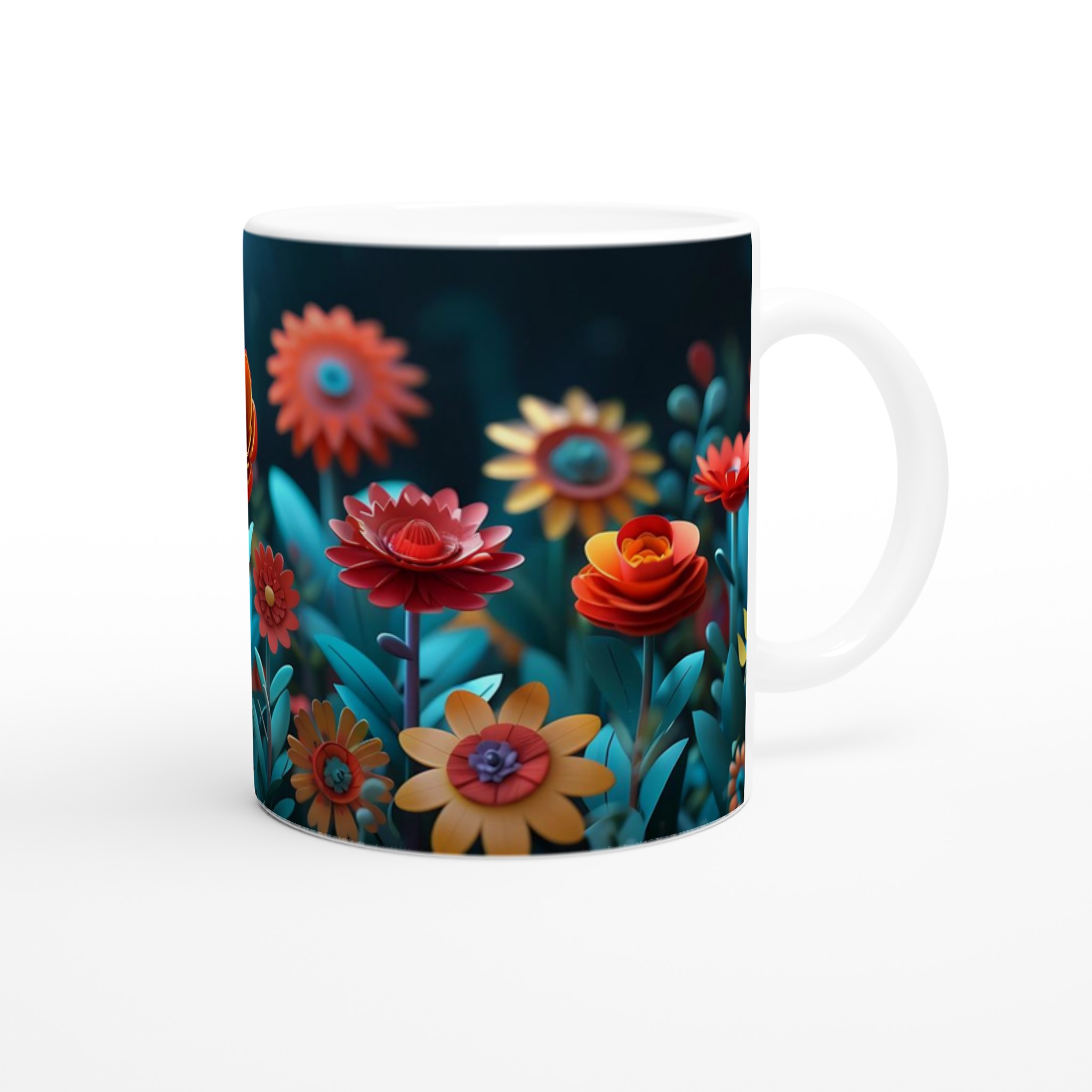 Låt varje klunk bli en resa till en förtrollad trädgård med vår färgglada keramiska mugg, prydd med en fantastisk blomsterprakt i rika, glada färger. Denna stilrena keramiska mugg blir snabbt en vardagsfavorit och förvandlar din fikapaus till en stund av ren glädje. Perfekt för morgonkaffet, kvällens varma choklad eller när du bara vill njuta av en kopp te i gott sällskap med blomstrande design. Den blanka vita ytan gör att trycken framhävs med klara och levande färger, som håller sig fina även efter många turer i mikron och diskmaskinen.