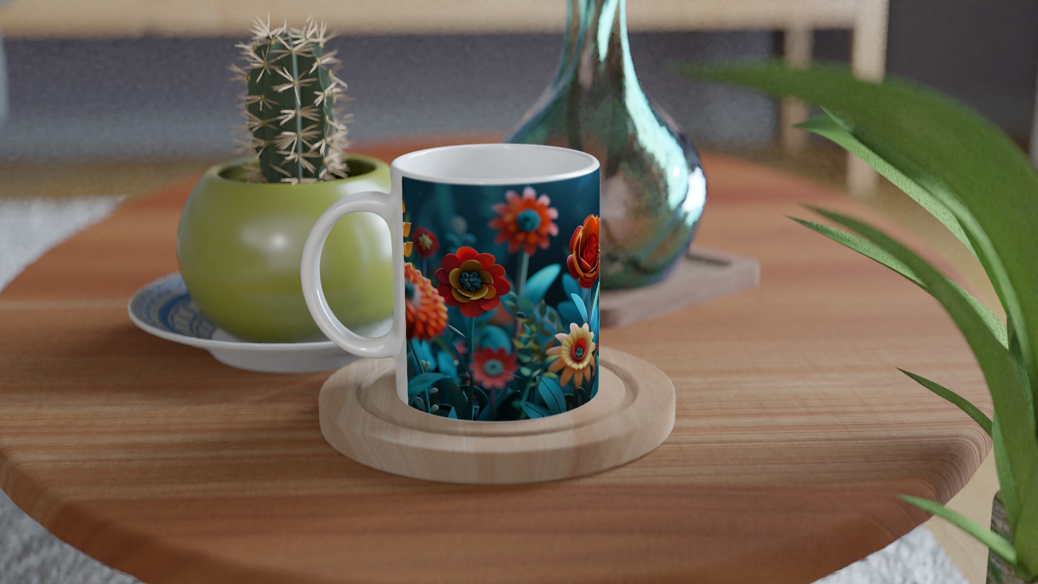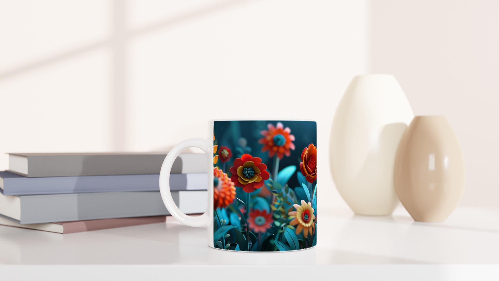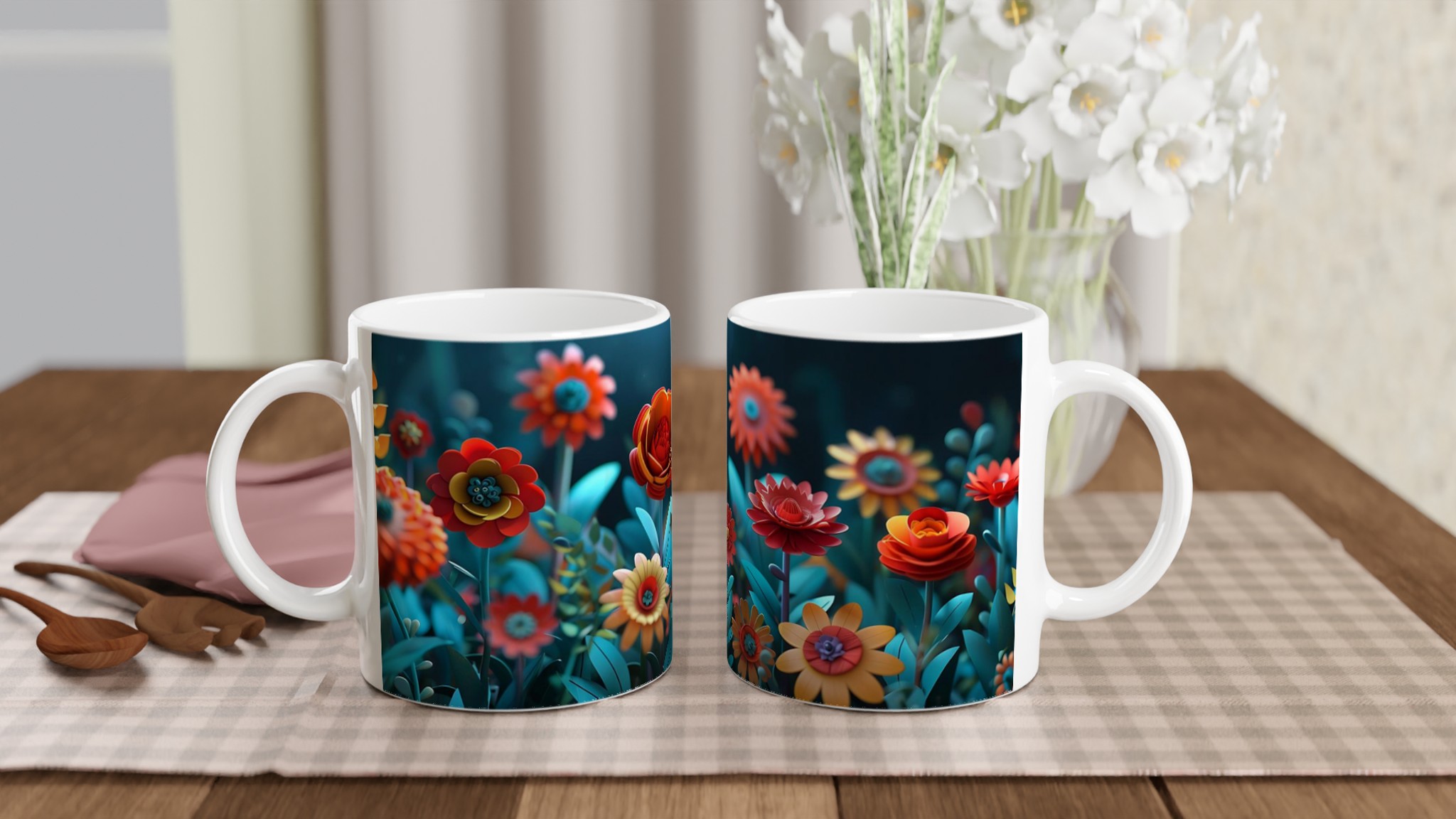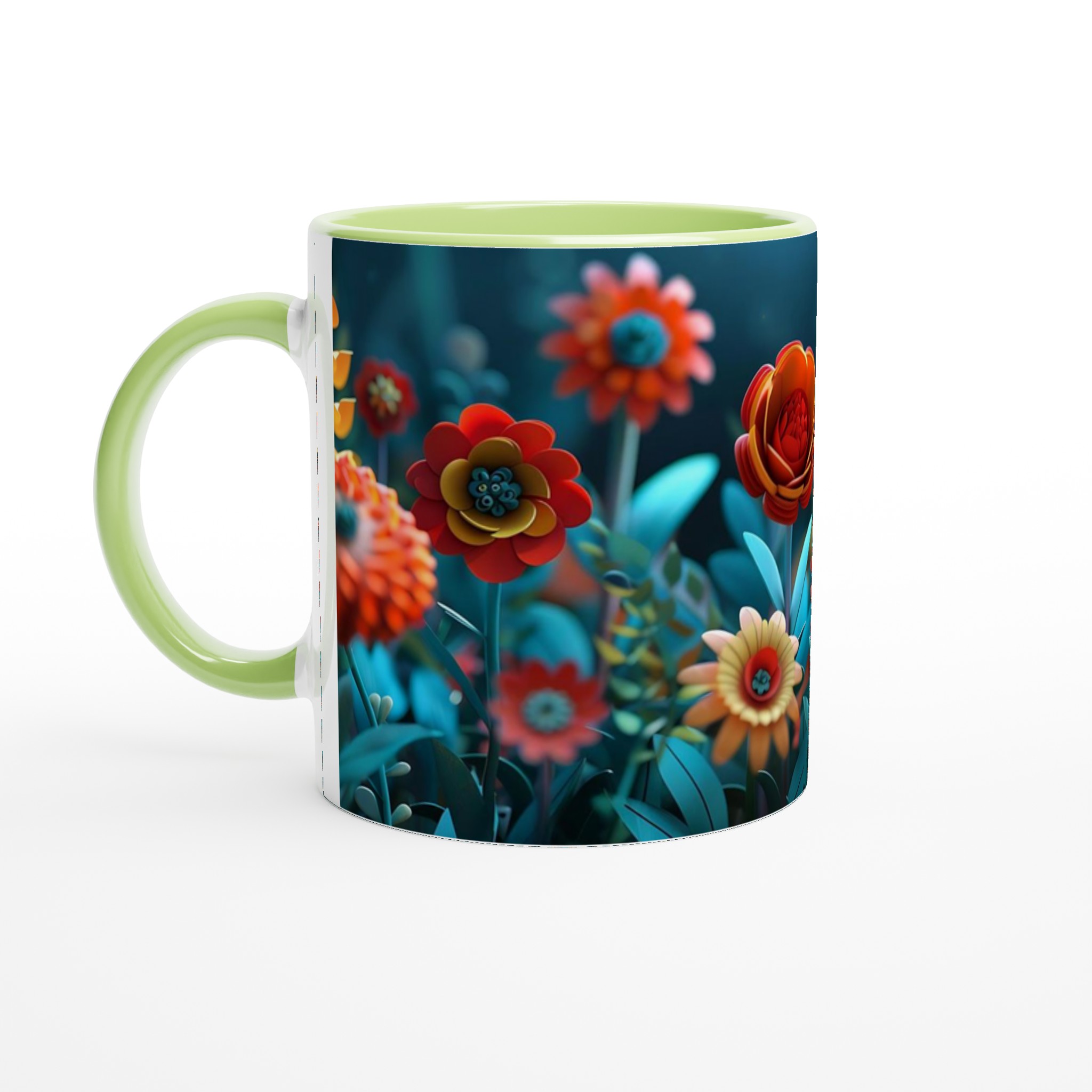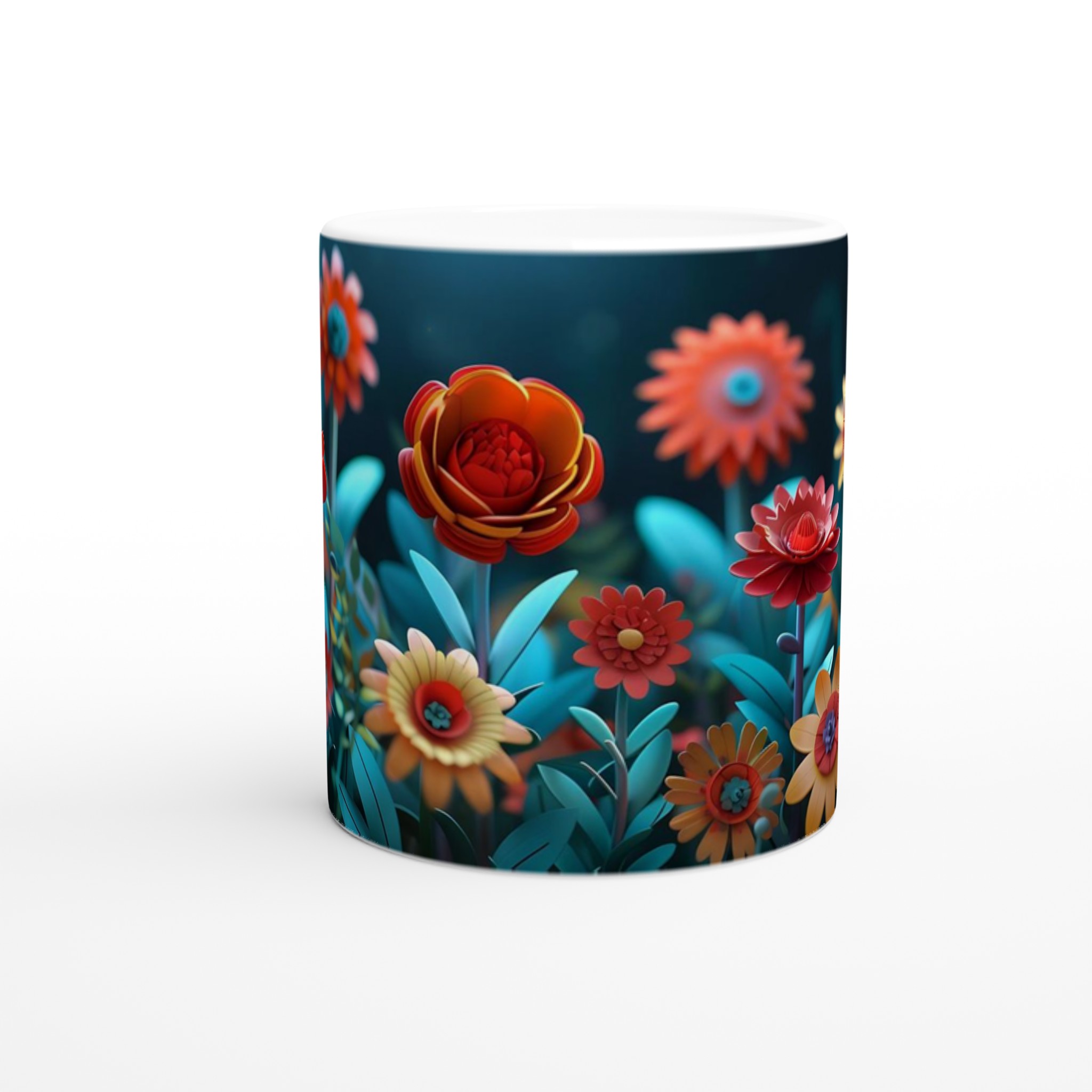 Låt varje klunk bli en resa till en förtrollad trädgård med vår färgglada keramiska mugg, prydd med en fantastisk blomsterprakt i rika, glada färger. Denna stilrena keramiska mugg blir snabbt en vardagsfavorit och förvandlar din fikapaus till en stund av ren glädje. Perfekt för morgonkaffet, kvällens varma choklad eller när du bara vill njuta av en kopp te i gott sällskap med blomstrande design. Den blanka vita ytan gör att trycken framhävs med klara och levande färger, som håller sig fina även efter många turer i mikron och diskmaskinen.