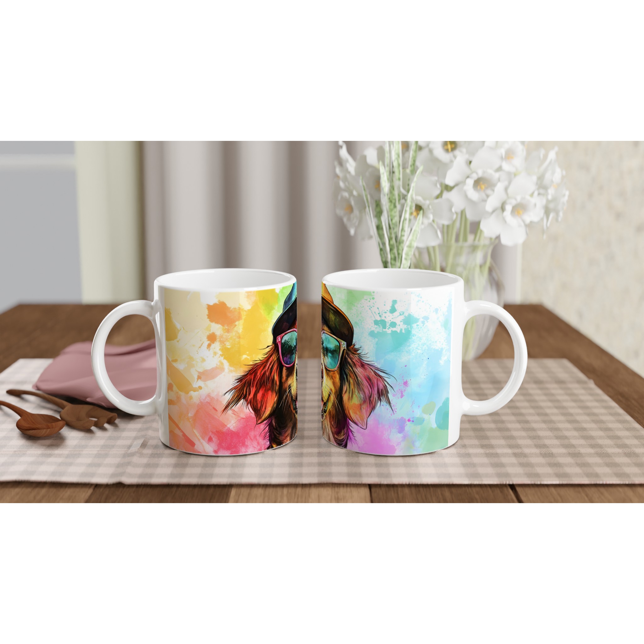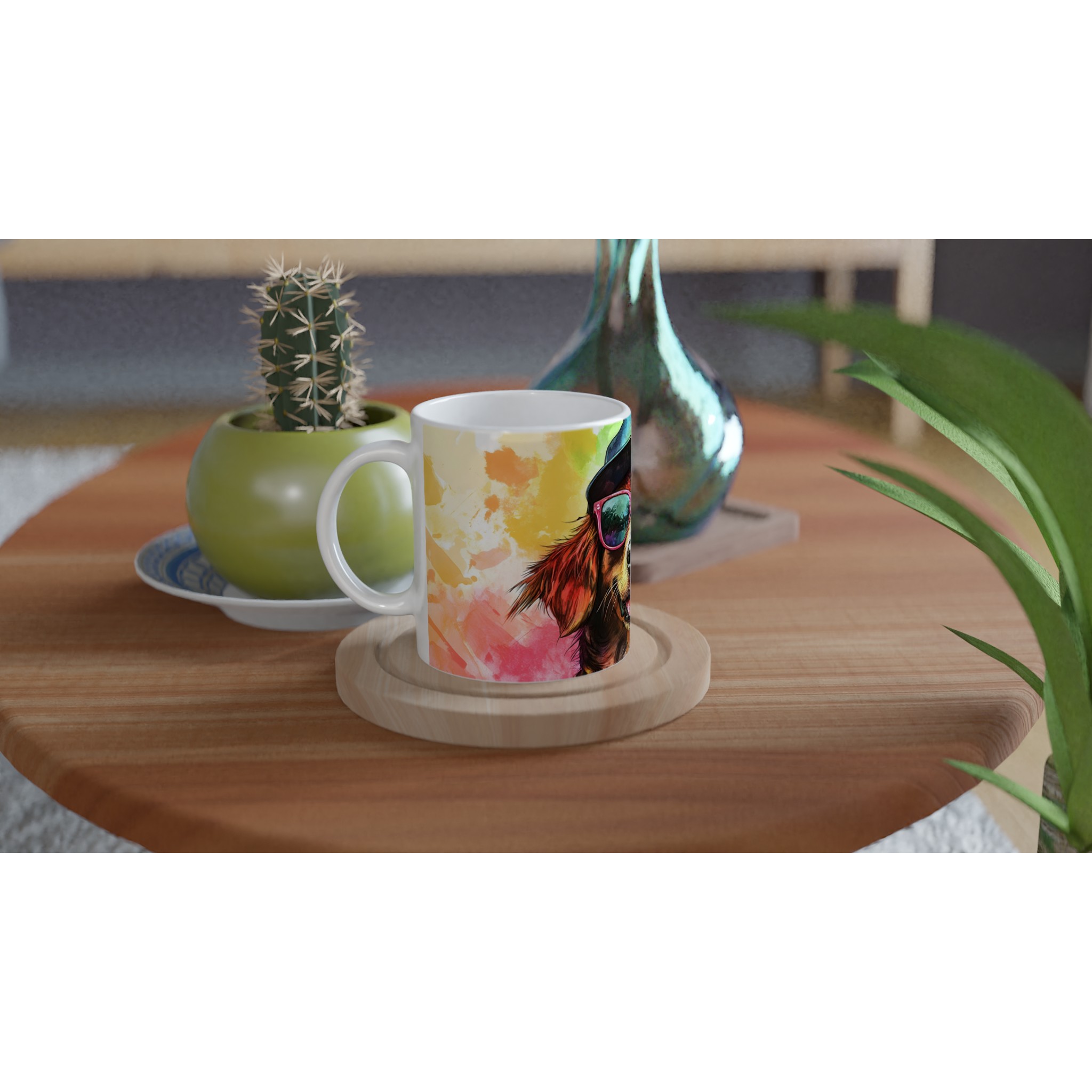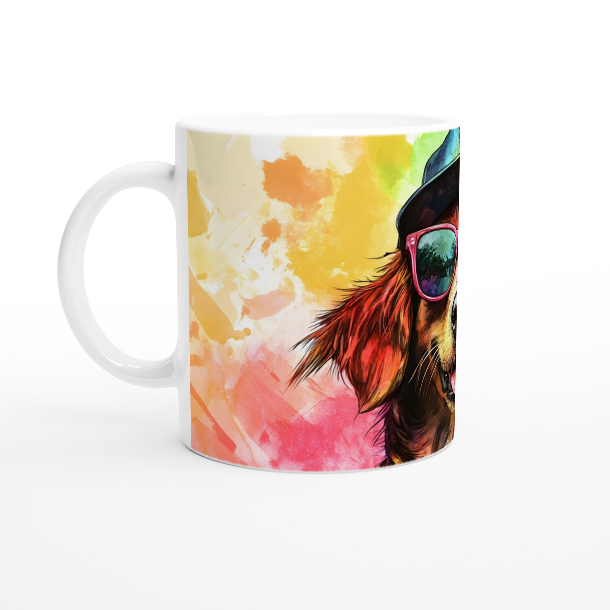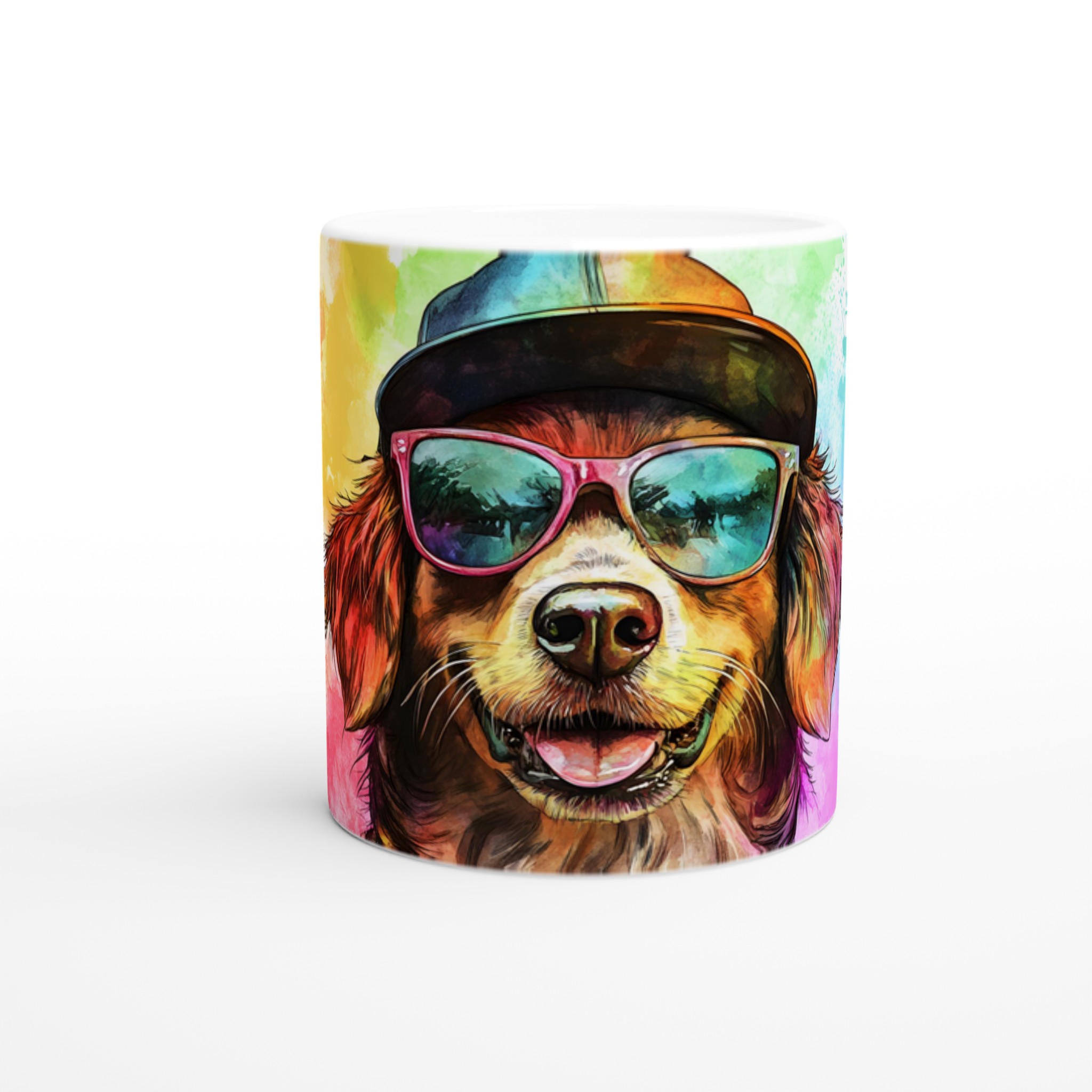 Starta dagen med ett leende med denna lekfulla keramikmugg! Prydd med en ”cool hund” i livfulla akvarellfärger som utstrålar glädje och personlighet, är denna mugg en perfekt stämningshöjare. Den färgstarka designen framträder briljant mot den blanka vita ytan, vilket gör varje klunk till en liten fest. Oavsett om det är morgonkaffet, en lugnande kopp te eller en lyxig varm choklad, blir denna mugg snabbt din nya favorit.
