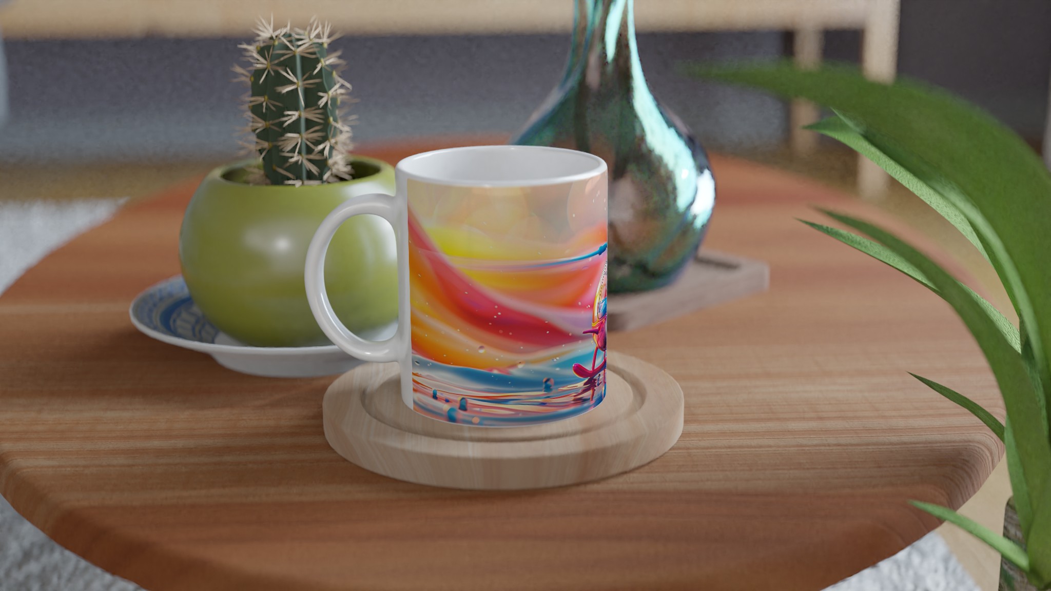 Denna mugg är inte bara vacker utan också praktisk. Trycket framträder klart och färgstarkt på den blanka ytan, och tack vare den höga kvaliteten behåller det sin lyster även efter många omgångar i både mikrovågsugn och diskmaskin. Med en rymlig kapacitet på 11 oz (ca 3,25 dl) är den perfekt för både jobb och hemmabruk. Välj din egen favorit bland våra sju fantastiska keramiska nyanser: Ceramic White, Ceramic Yellow, Ceramic Pink, Ceramic Green, Ceramic Red, Ceramic Black eller Ceramic Blue – och låt din personlighet lysa igenom!