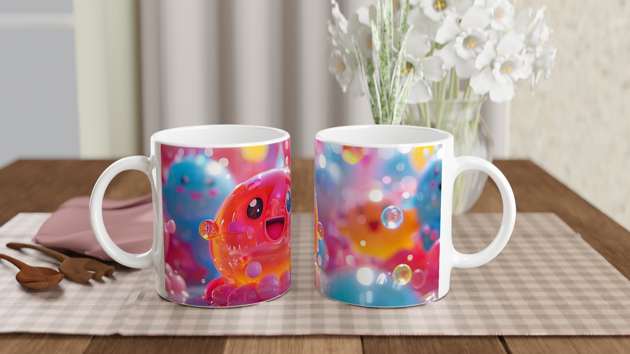 Tillverkad med högsta kvalitet, behåller trycket sin lyster även efter otaliga omgångar i både mikrovågsugn och diskmaskin. Muggen rymmer 11 oz (ca 3,25 dl), en lagom storlek för både jobb och hemmabruk. Den passar lika bra som en personlig vardagsmugg som en uppskattad present till familj, vänner eller kollegor som älskar färg och glädje.