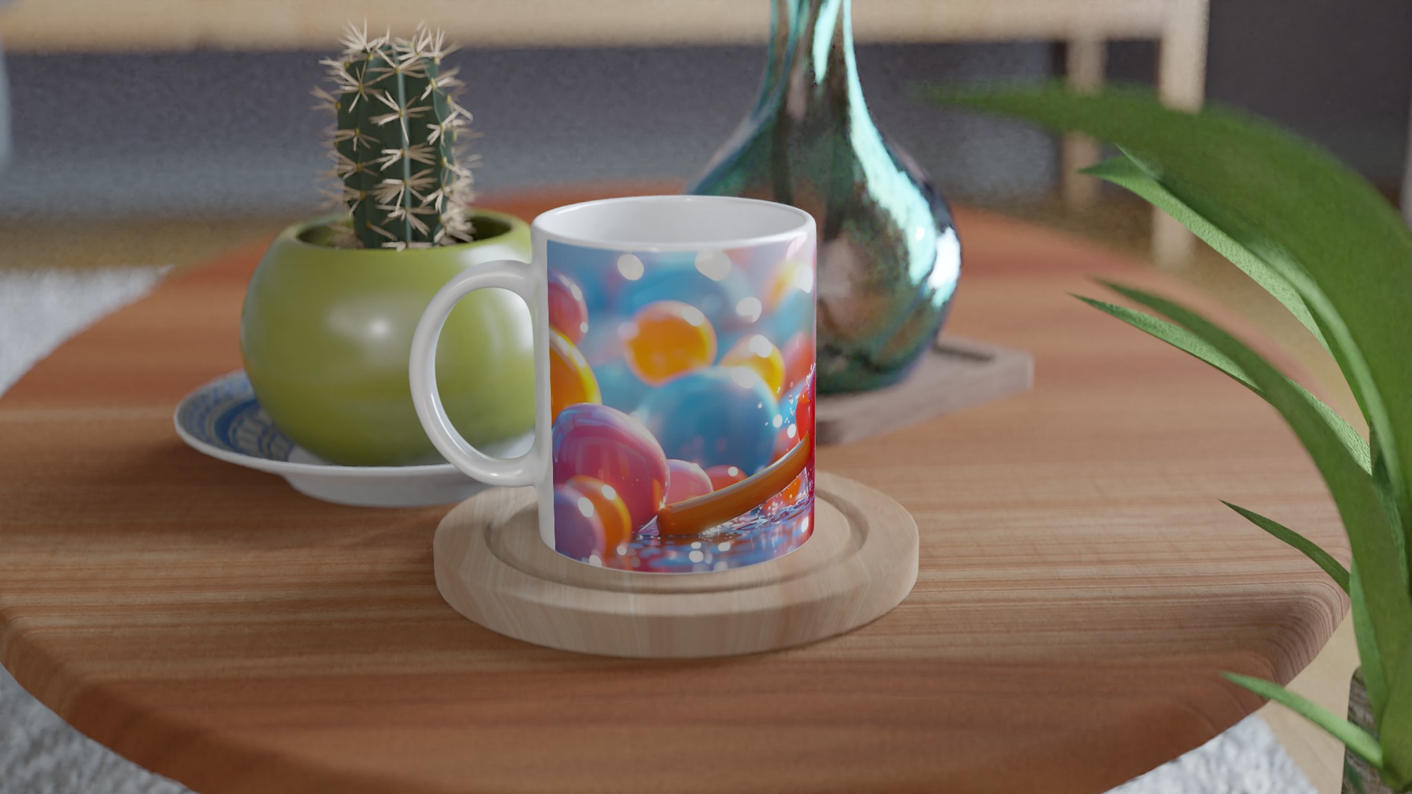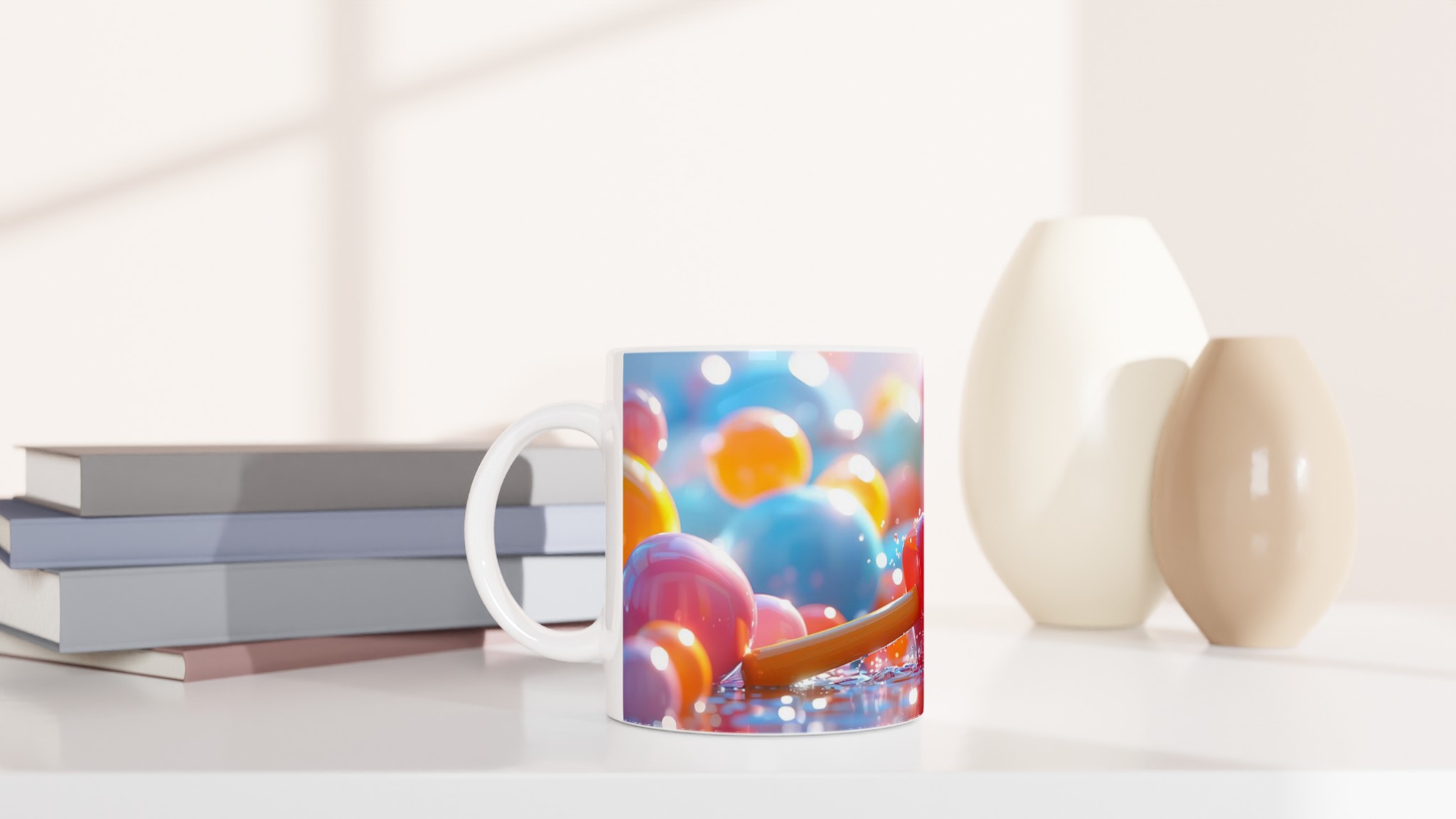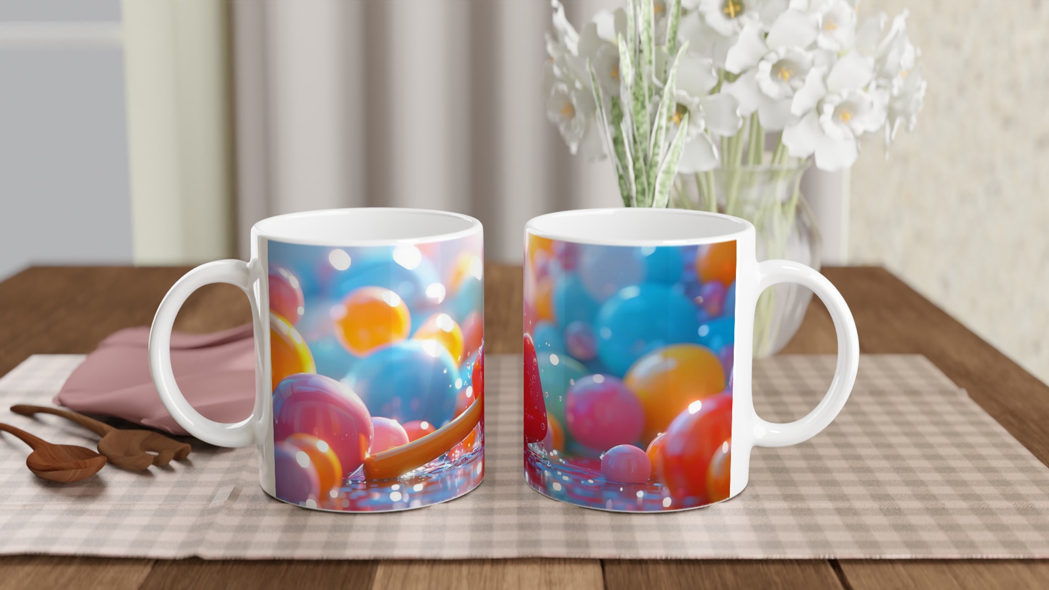 Lyft din vardag med en explosion av färg! Inspirerad av livfulla, lekfulla nyanser, är denna stilrena och vackra keramikmugg perfekt för alla dagens stunder – morgonkaffet, en värmande kopp te eller en härlig varm choklad. Den blanka ytan gör att trycken framträder klart och färgstarkt, vilket gör muggen till en riktig favorit i vardagen. Tack vare den höga kvaliteten behåller trycket sin lyster även efter många omgångar i både mikrovågsugn och diskmaskin.