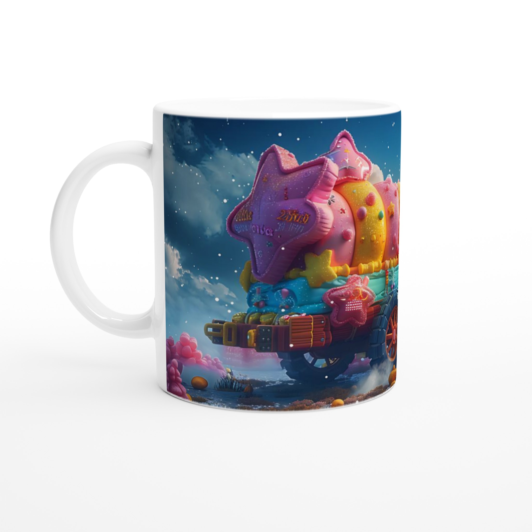 Inspirerad av en lekfull godisvärld, är denna mugg en explosion av färg och fantasi. Den blanka vita ytan ger ett skarpt och levande tryck som verkligen sticker ut, oavsett om det är en personlig design, ett roligt citat eller en present till någon du tycker om. Varje klunk blir en resa till en söt och magisk plats.