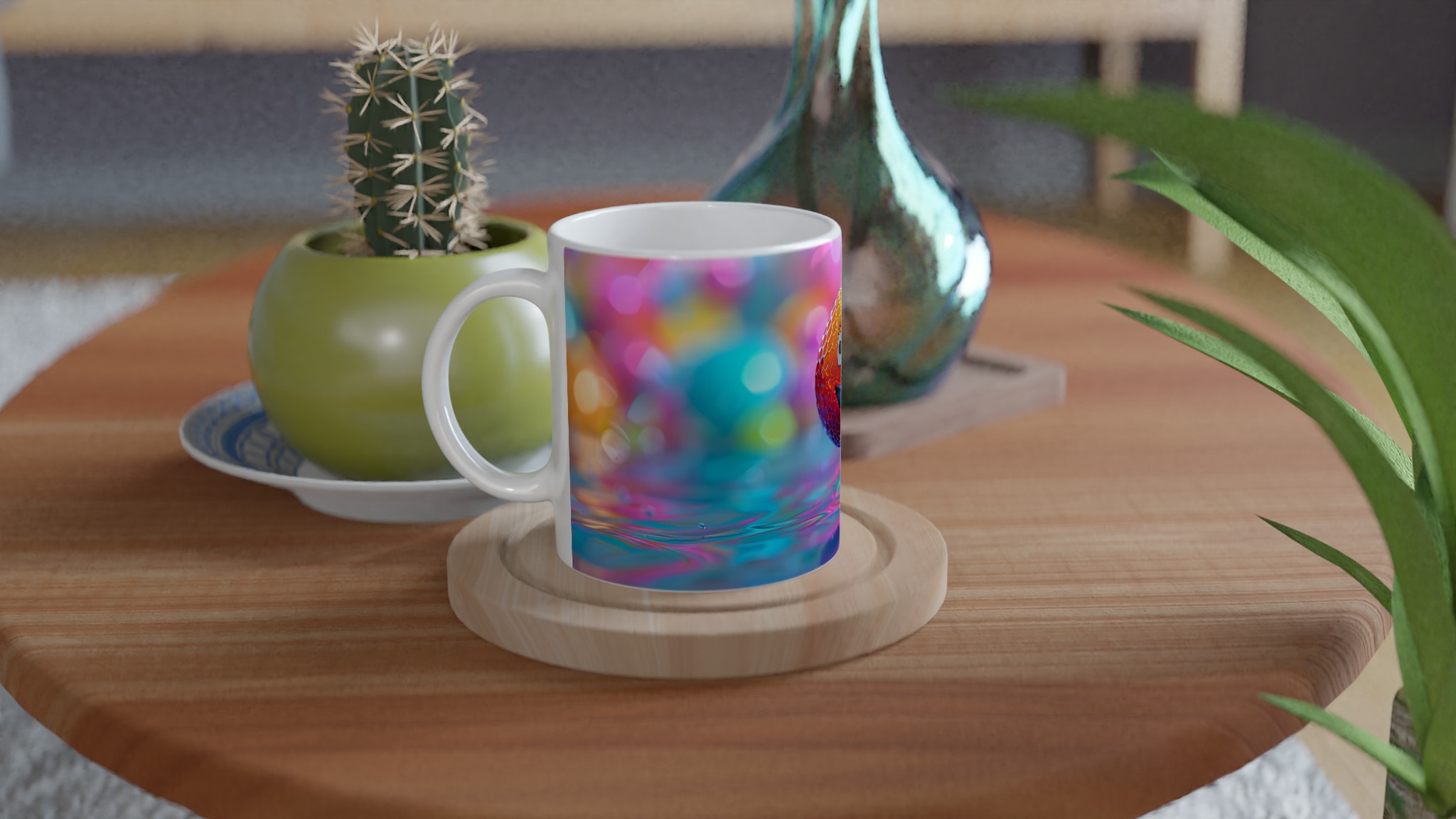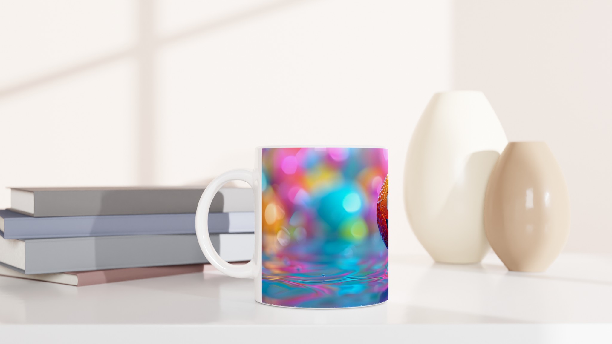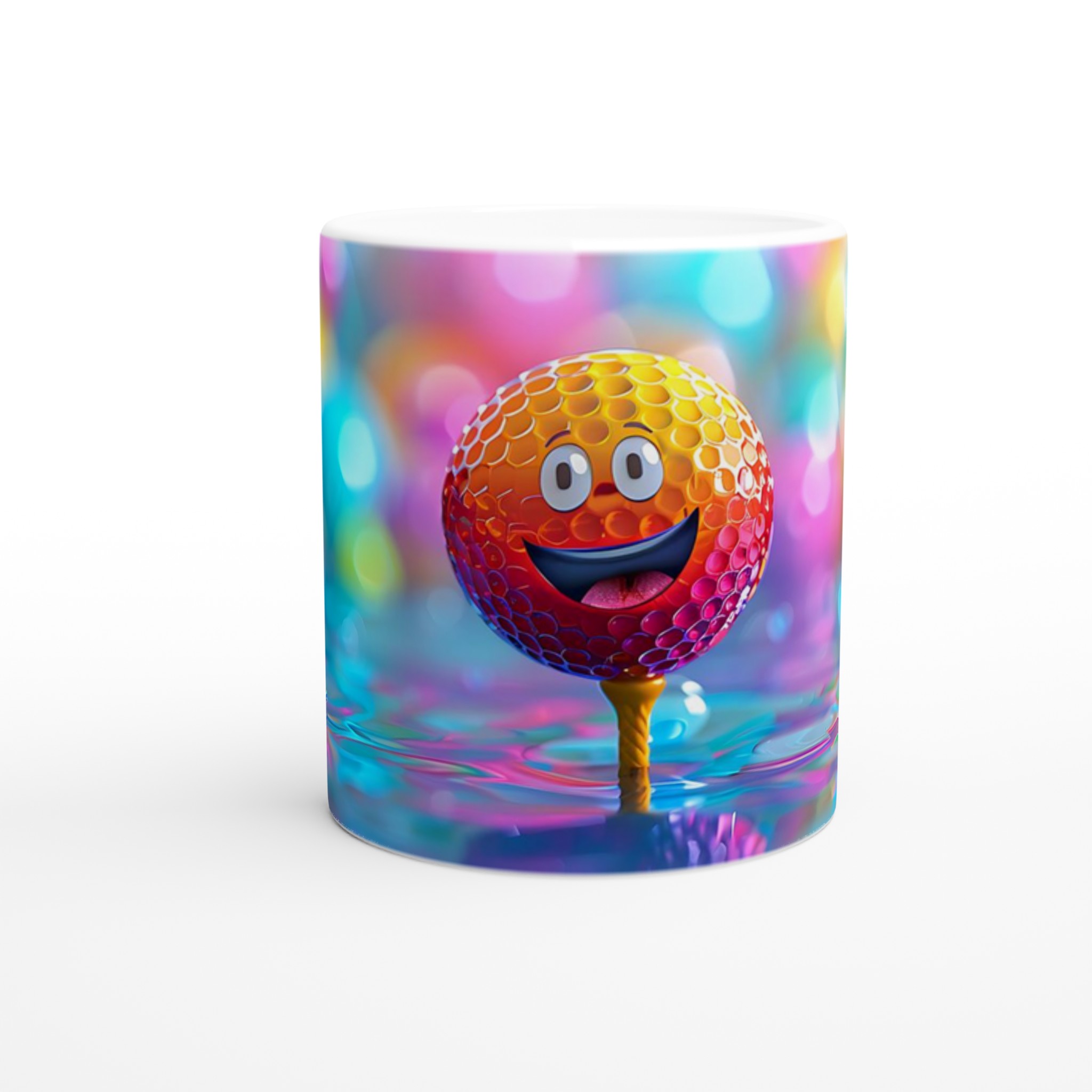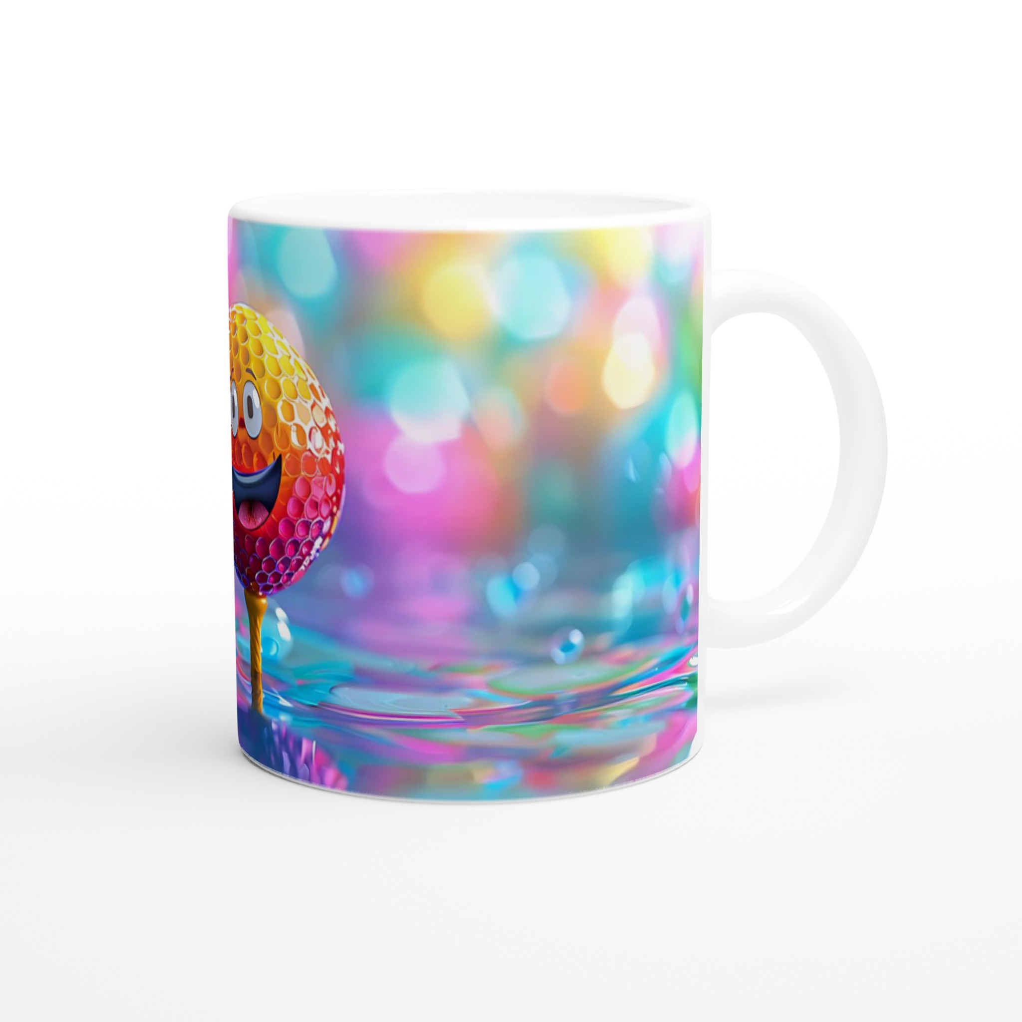 Gör varje fika till en glädjefylld stund med vår unika keramikmugg! Med sin lekfulla golfbollsdesign och livfulla färgpalett, inspirerad av bildens sprudlande bakgrund, är denna mugg mer än bara en dryckesbehållare – den är en humörhöjare. Perfekt för morgonkaffet, en värmande kopp te eller en härlig varm choklad, kommer den att lysa upp din dag med sin charm och färg.