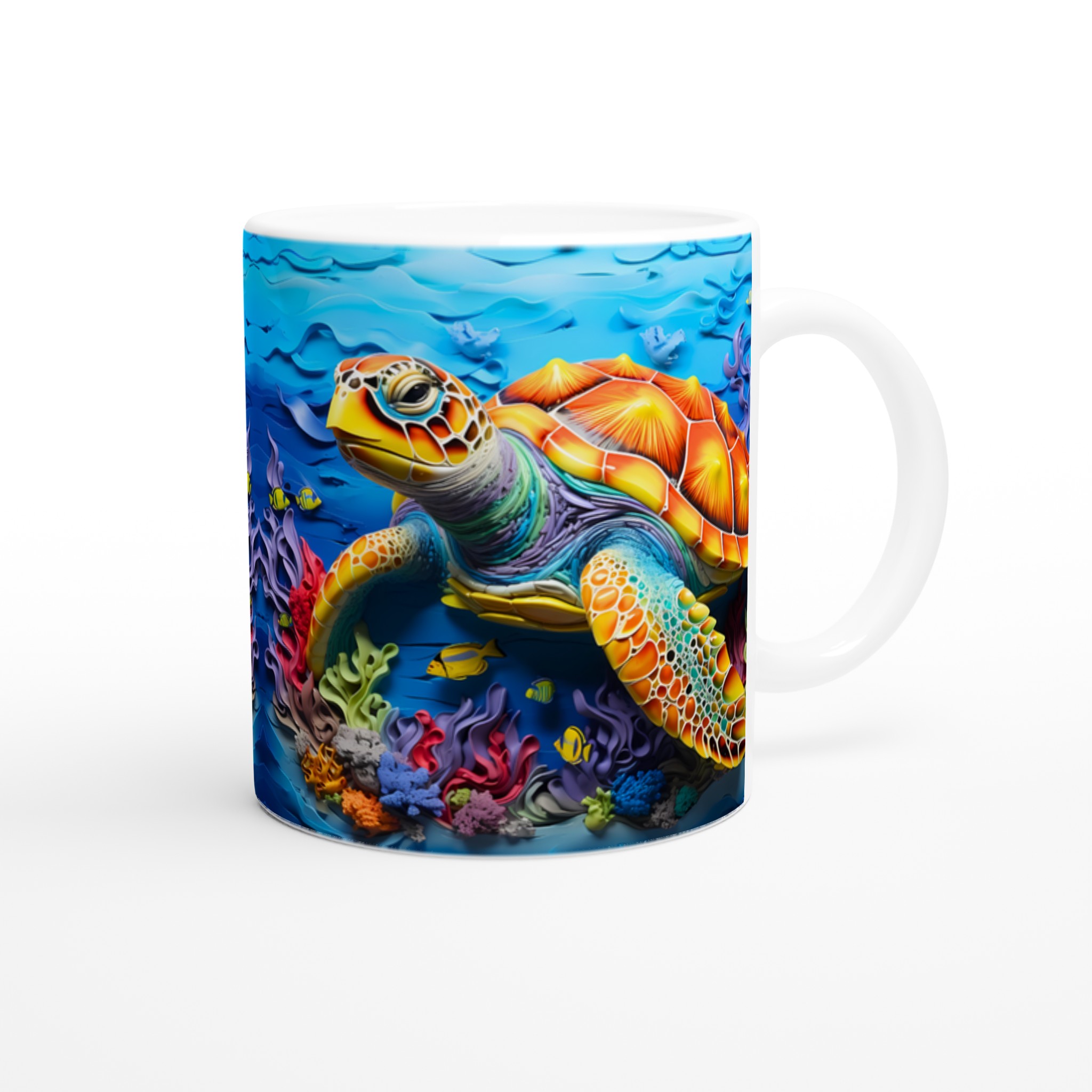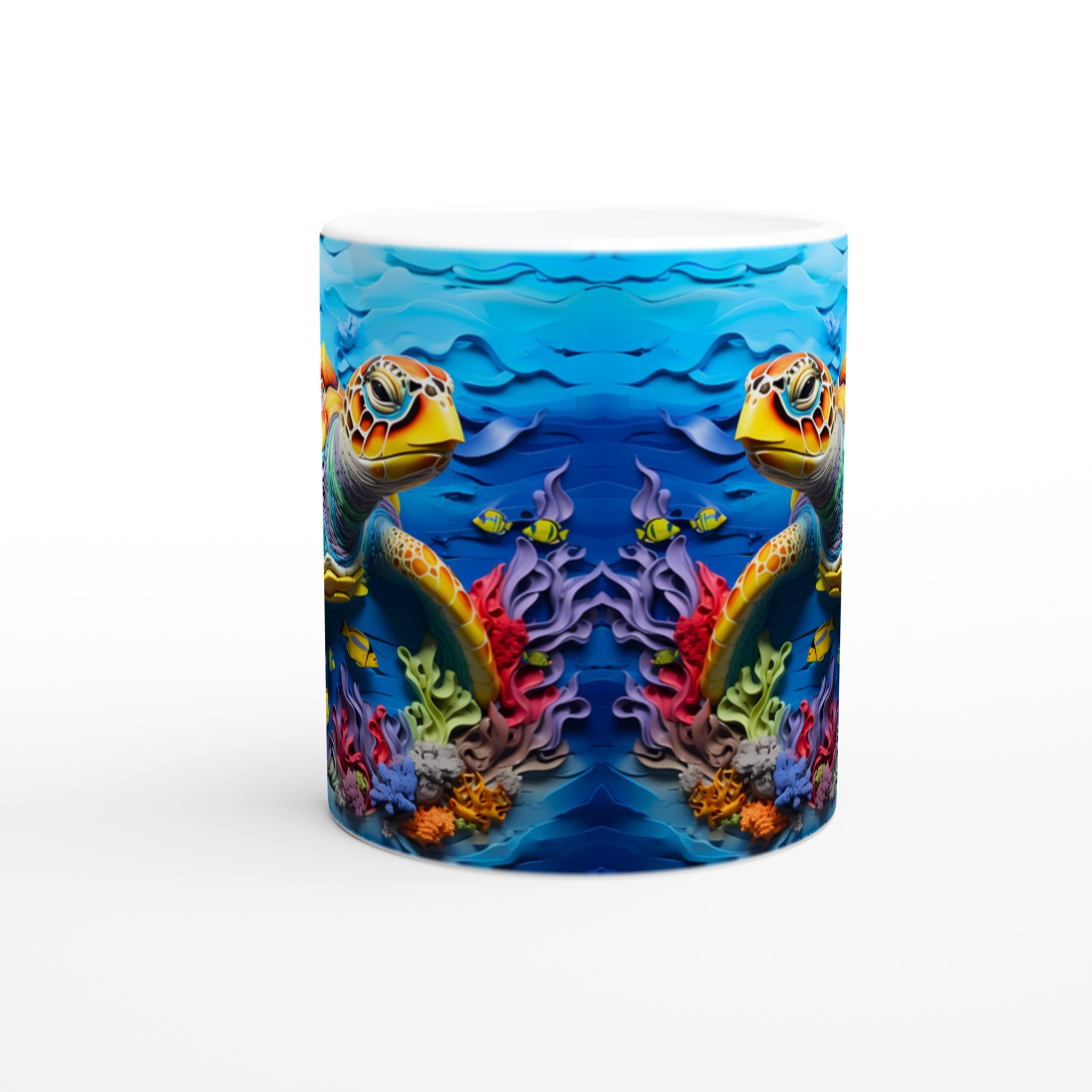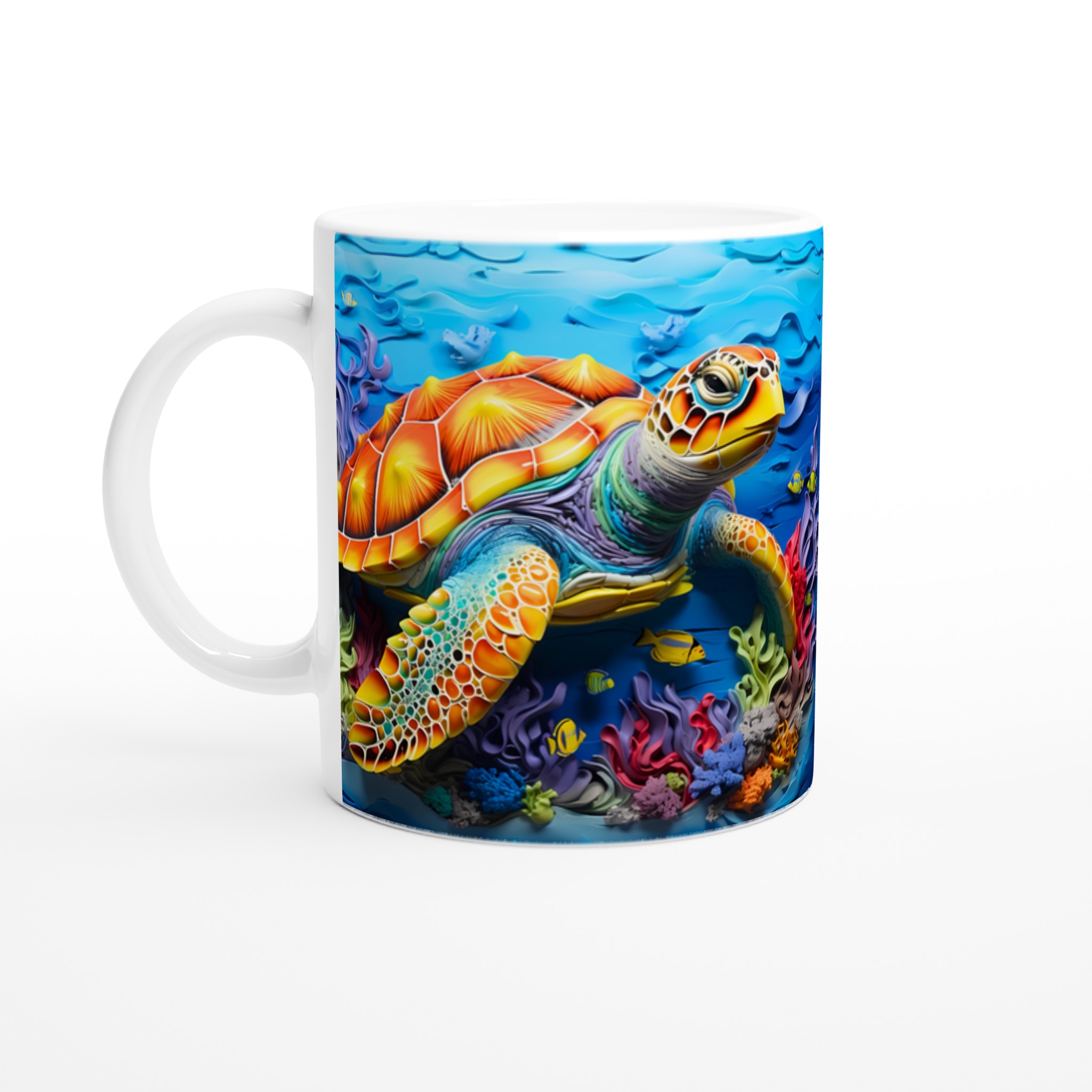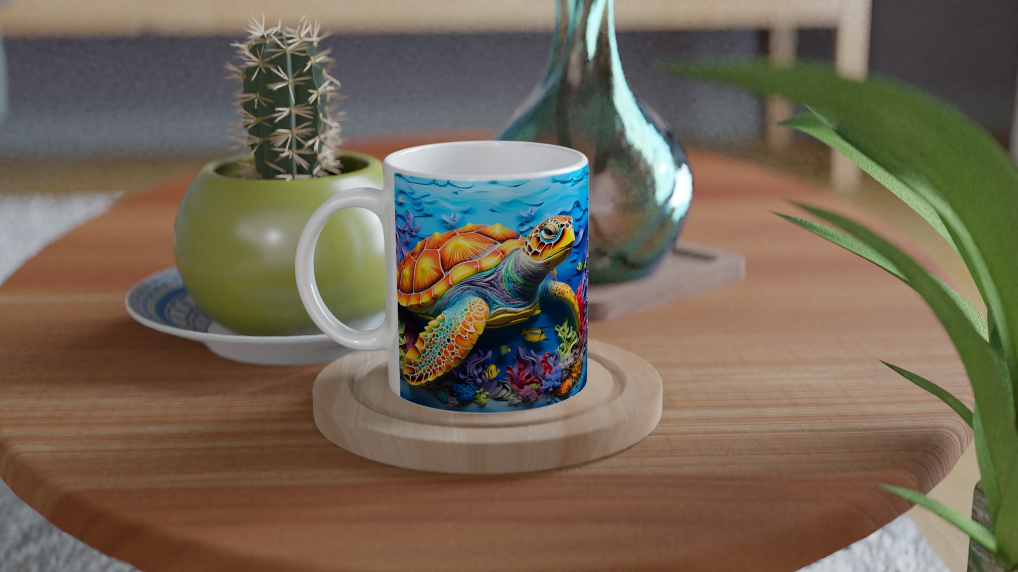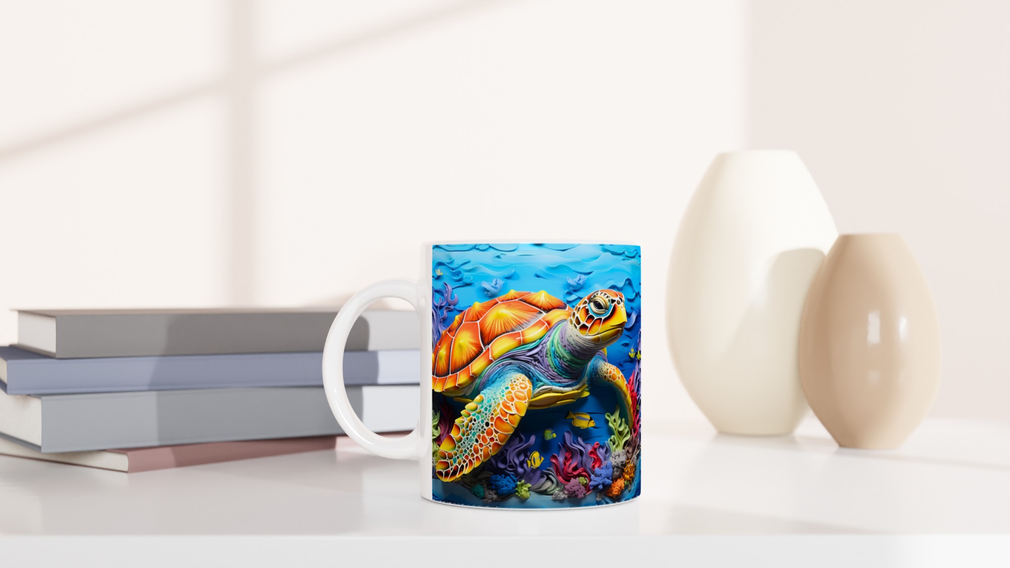 Låt din morgonrutin blomstra med denna fantastiska keramiska mugg, som för dig rakt ner i havets djup med en livfull och konstnärlig havssköldpadda. Den här stilrena muggen blir snabbt en vardagsfavorit. Perfekt för morgonkaffet, kvällens varma choklad eller när du bara vill njuta av en kopp te. Den blanka vita ytan gör att trycken framhävs med klara och levande färger, som håller sig fina även efter många turer i mikron och diskmaskinen.