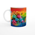 Lys upp din dag med denna fantastiska keramiska mugg, som kombinerar budskapet om ’HOPE’ med en explosion av akvarellfärger. De drömska blommorna i levande nyanser av rött, orange, gult och lila smälter samman med stänk av akvamarin och rosa, vilket skapar en energisk och konstnärlig känsla. Den är perfekt för att ge dig en inspirerande start på morgonen med kaffe, en lugnande tekopp på kvällen eller för att addera en färgklick till ditt skrivbord.