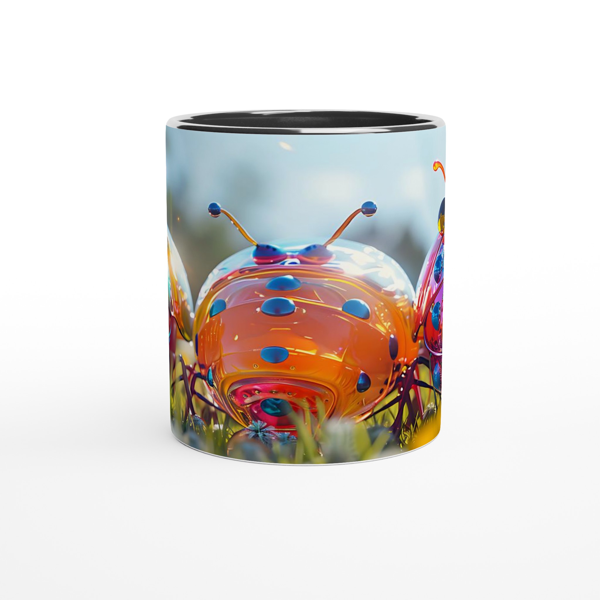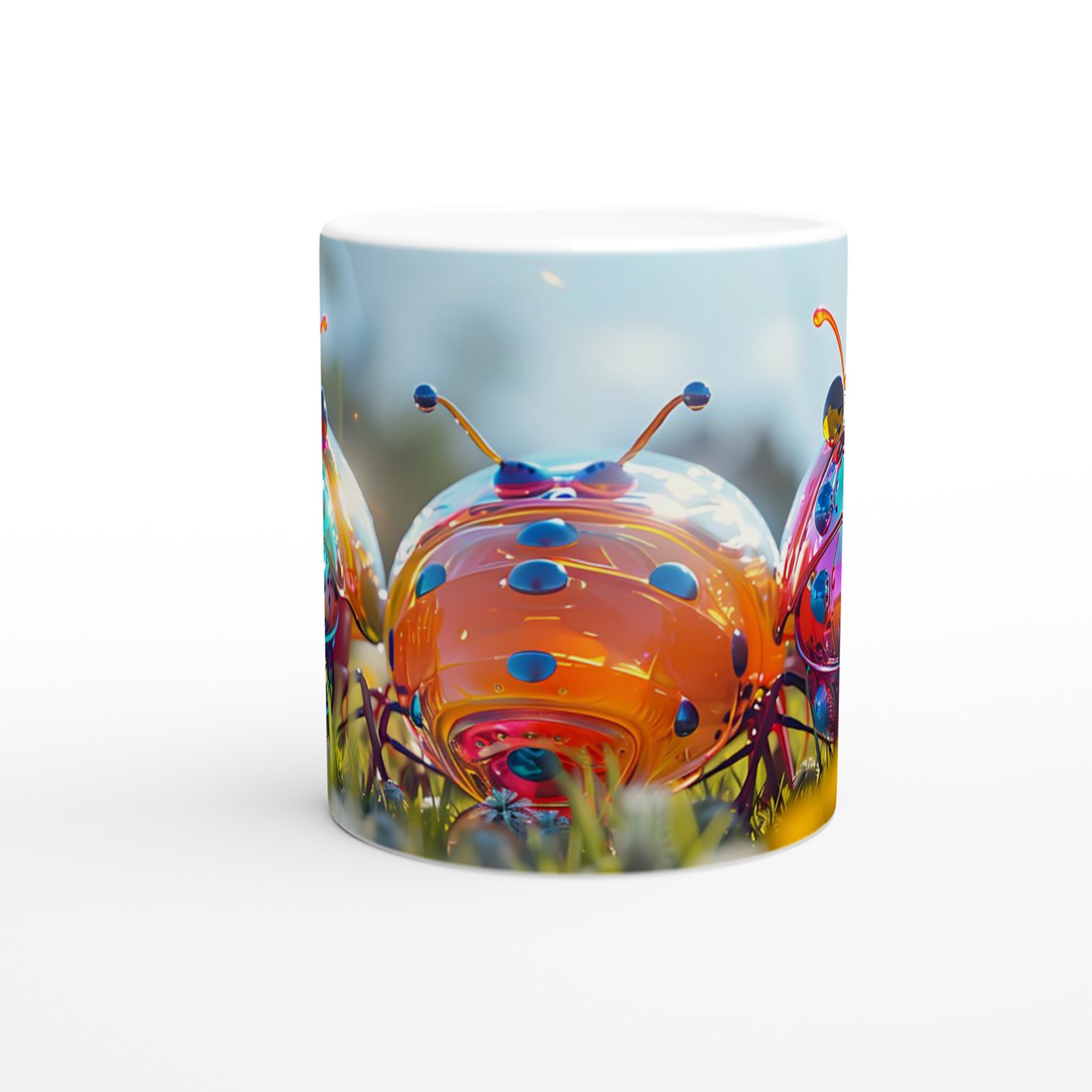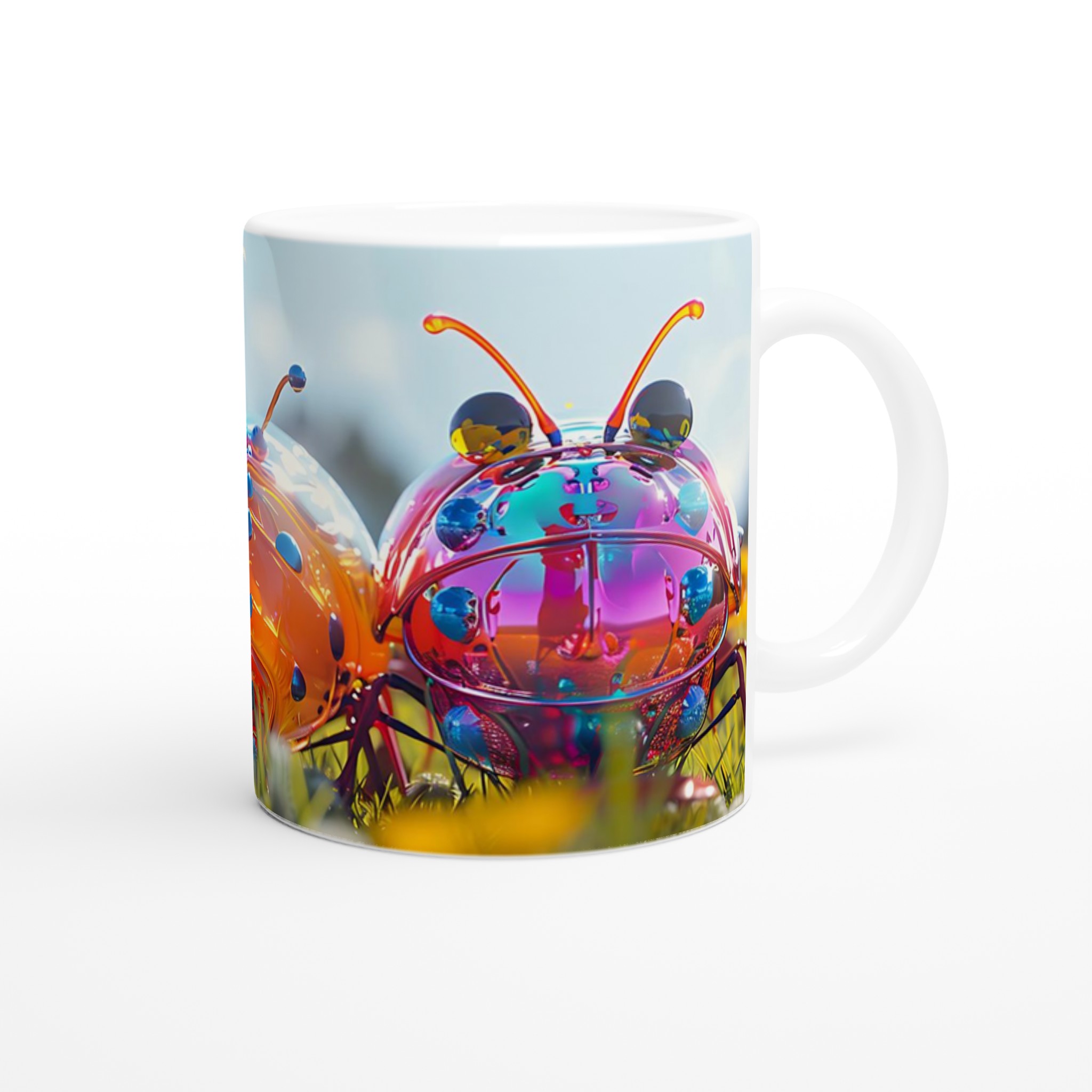Liva upp din vardag med denna lekfulla keramikmugg, prydd med ett fantastiskt konstverk av glänsande, fantasifulla insekter i en levande färgpalett. Varje klunk blir en fest för ögat med dess drömlika och futuristiska design som garanterat sprider glädje och konversation. Oavsett om du föredrar morgonkaffet, en värmande kopp te eller en härlig varm choklad, är denna mugg den perfekta följeslagaren för alla dagens stunder.