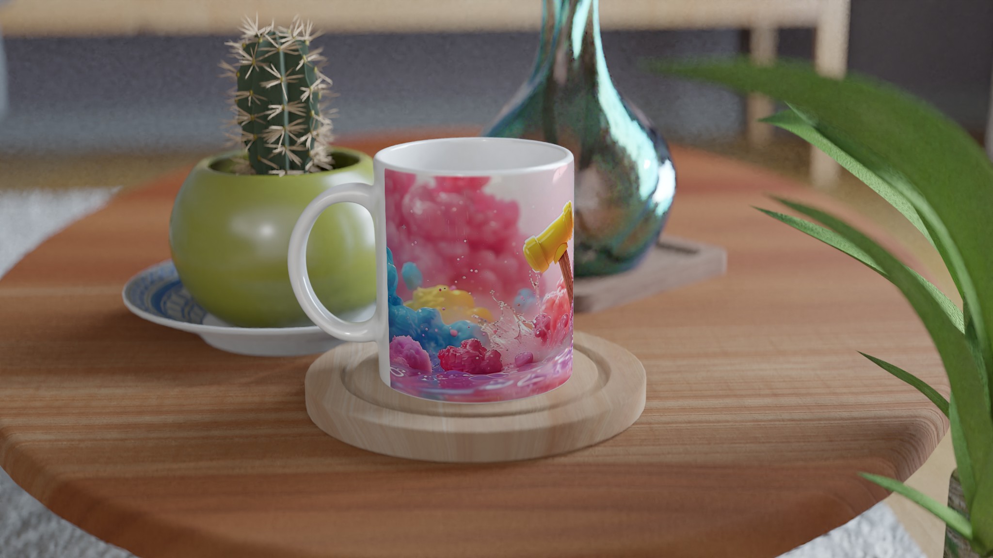 Muggen rymmer 11 oz (ca 3,25 dl), en perfekt storlek för alla tillfällen, både hemma och på kontoret. Den är inte bara en underbar vardagsfavorit för dig själv, utan också en uppskattad och personlig present till familj, vänner eller kollegor. Gör din egen färgsprakande kaskad och beställ din unika mugg idag!