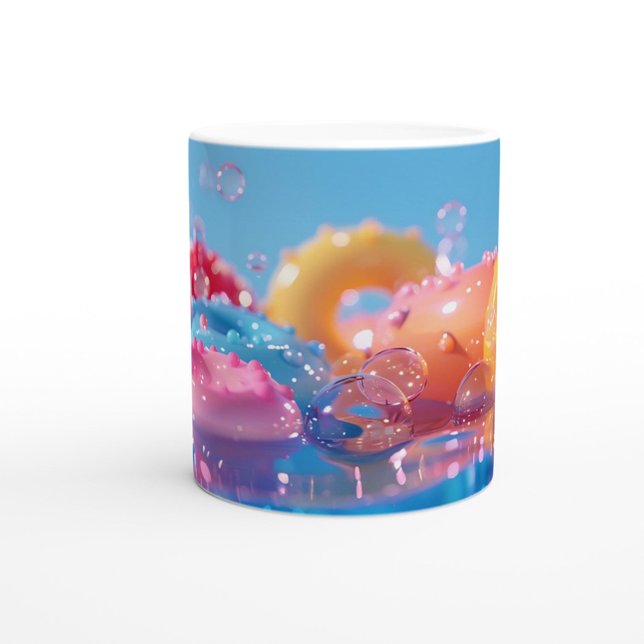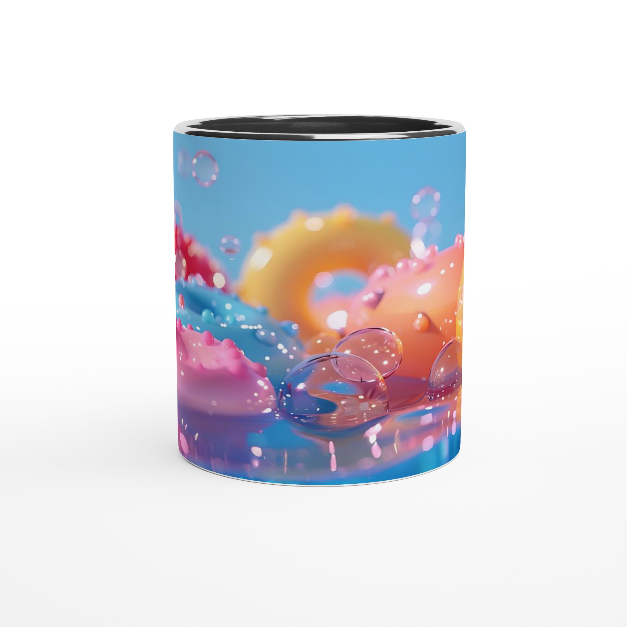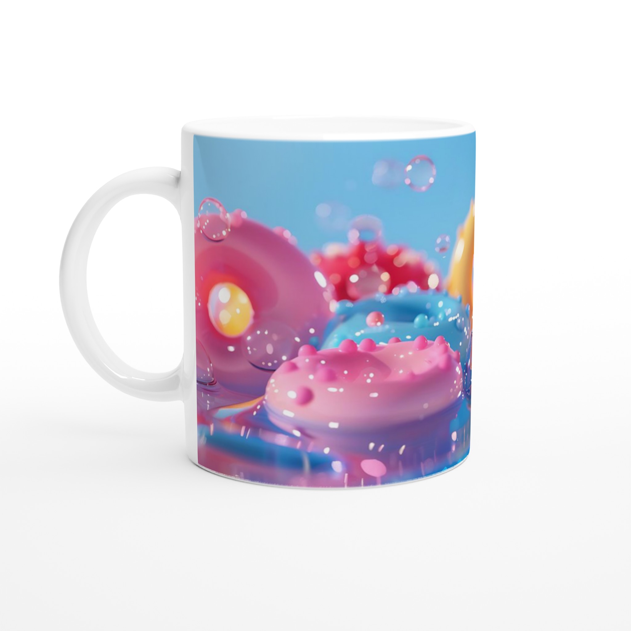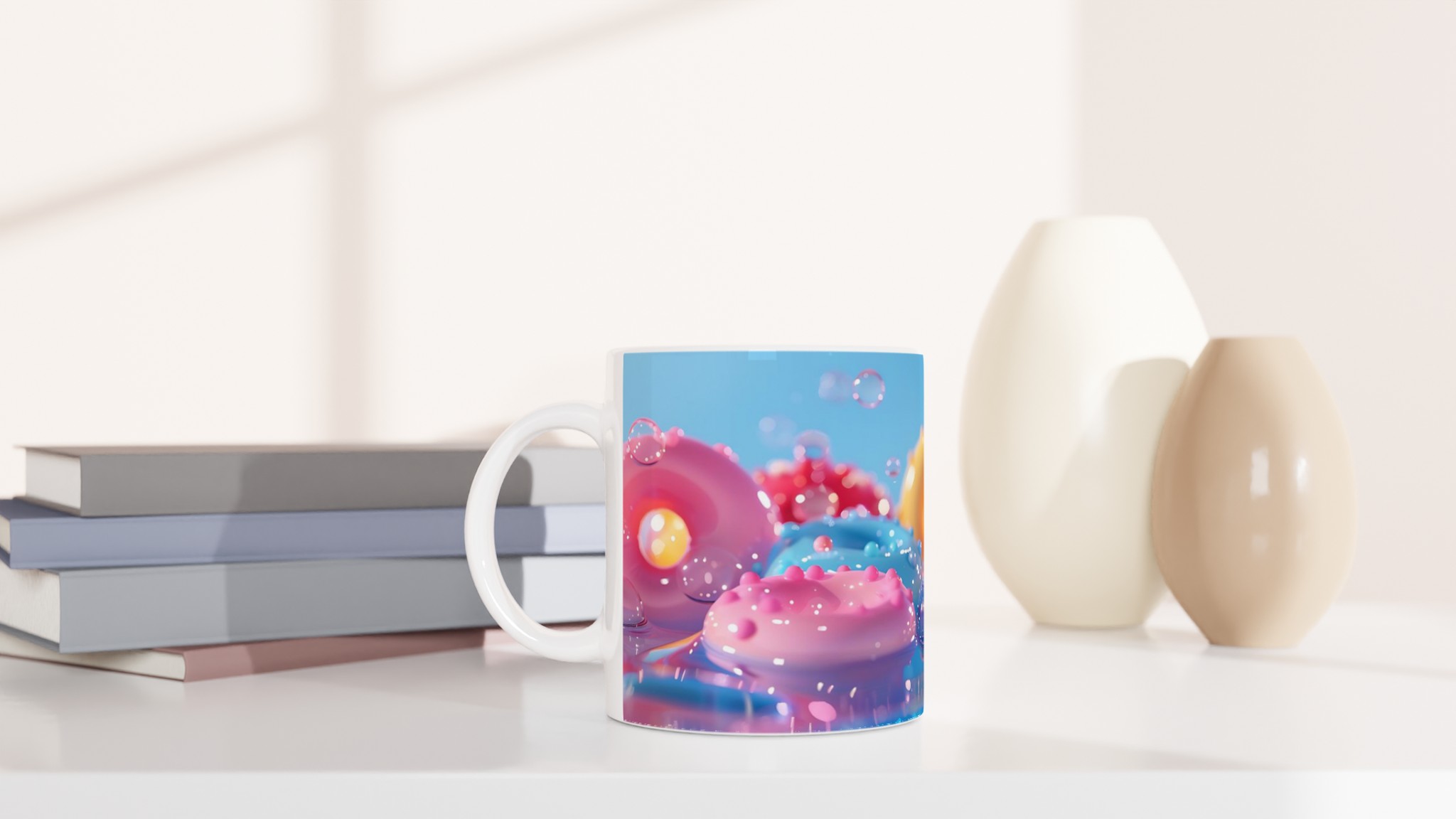 Lyft dina fikastunder med vår lekfulla 11oz keramiska mugg, inspirerad av glädjen och de klara färgerna i bilden. Denna charmiga mugg är designad för att sprida goda vibbar och göra varje sipp till en upplevelse, oavsett om det är ditt morgonkaffe, en lugnande kopp te eller en festlig varm choklad.
