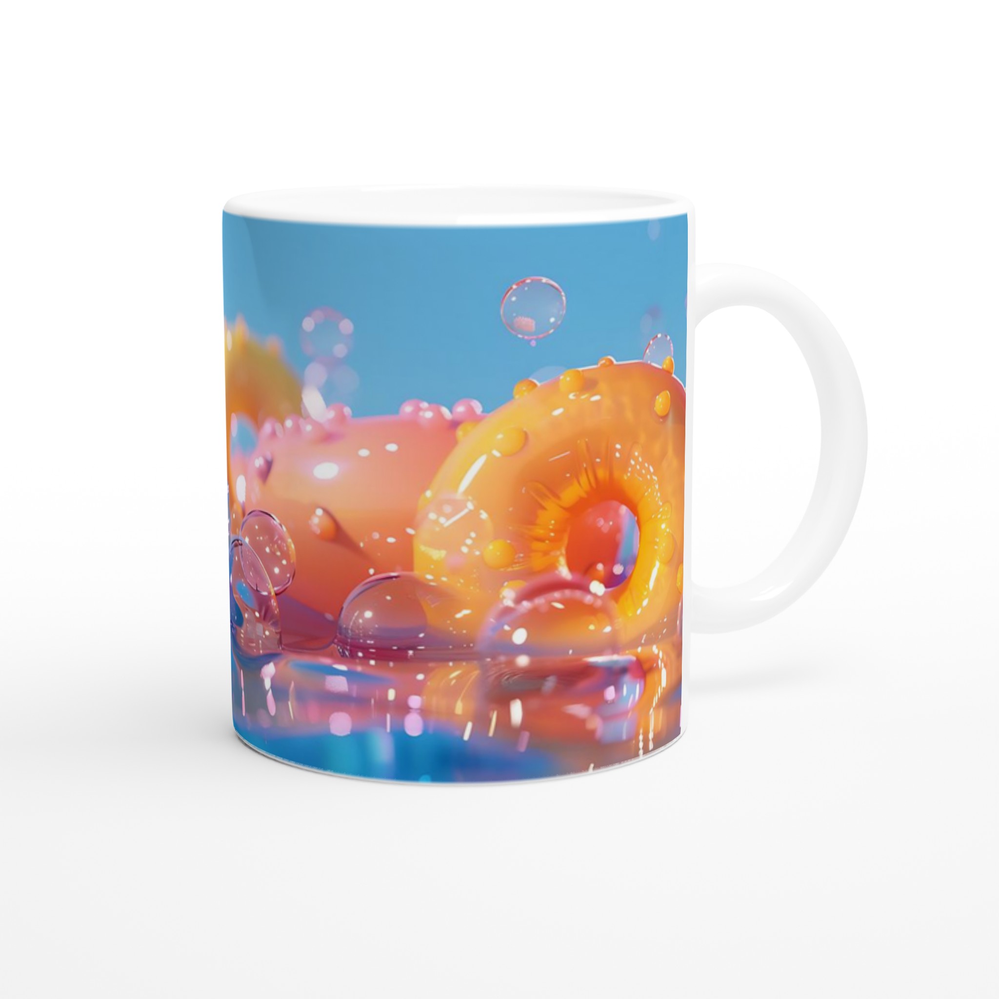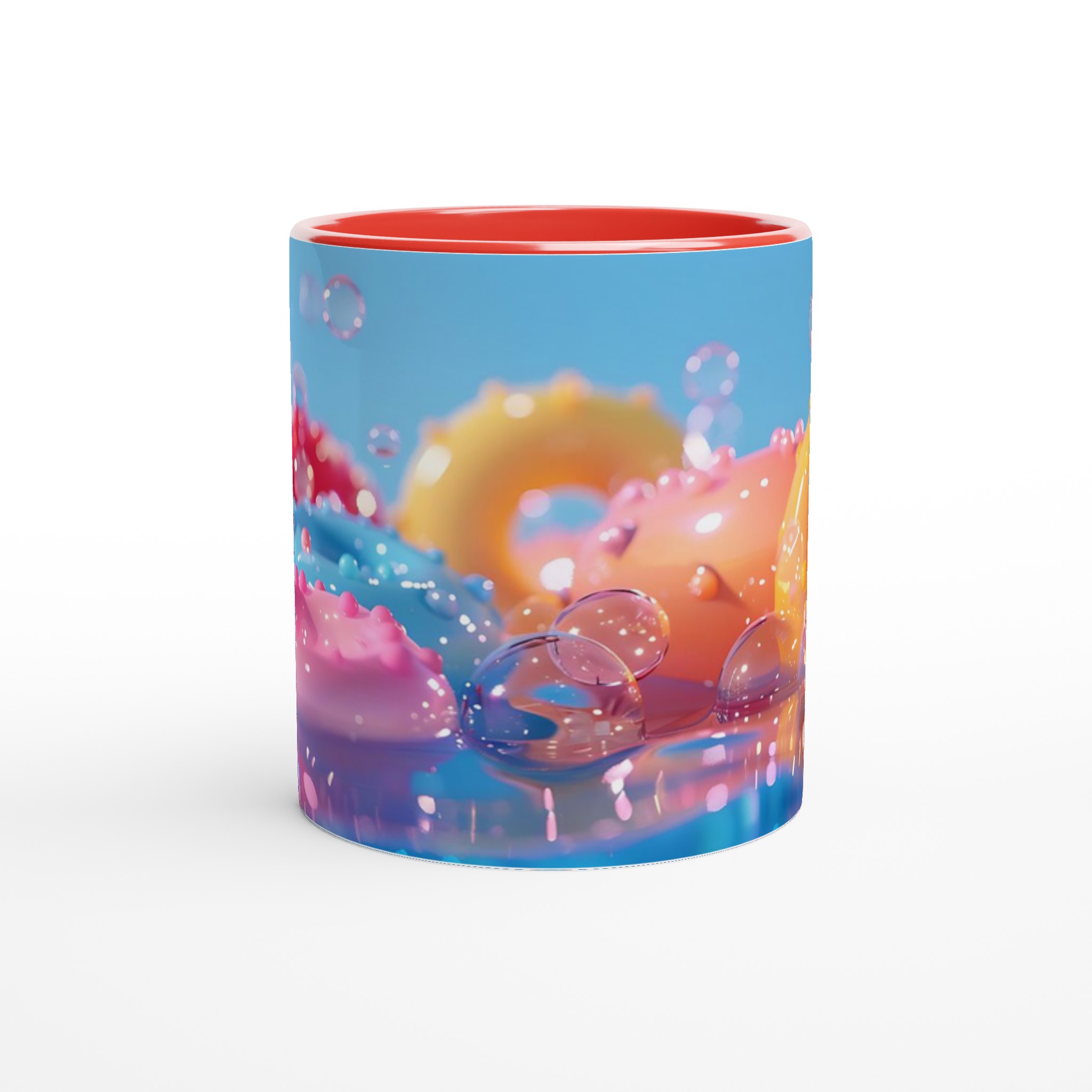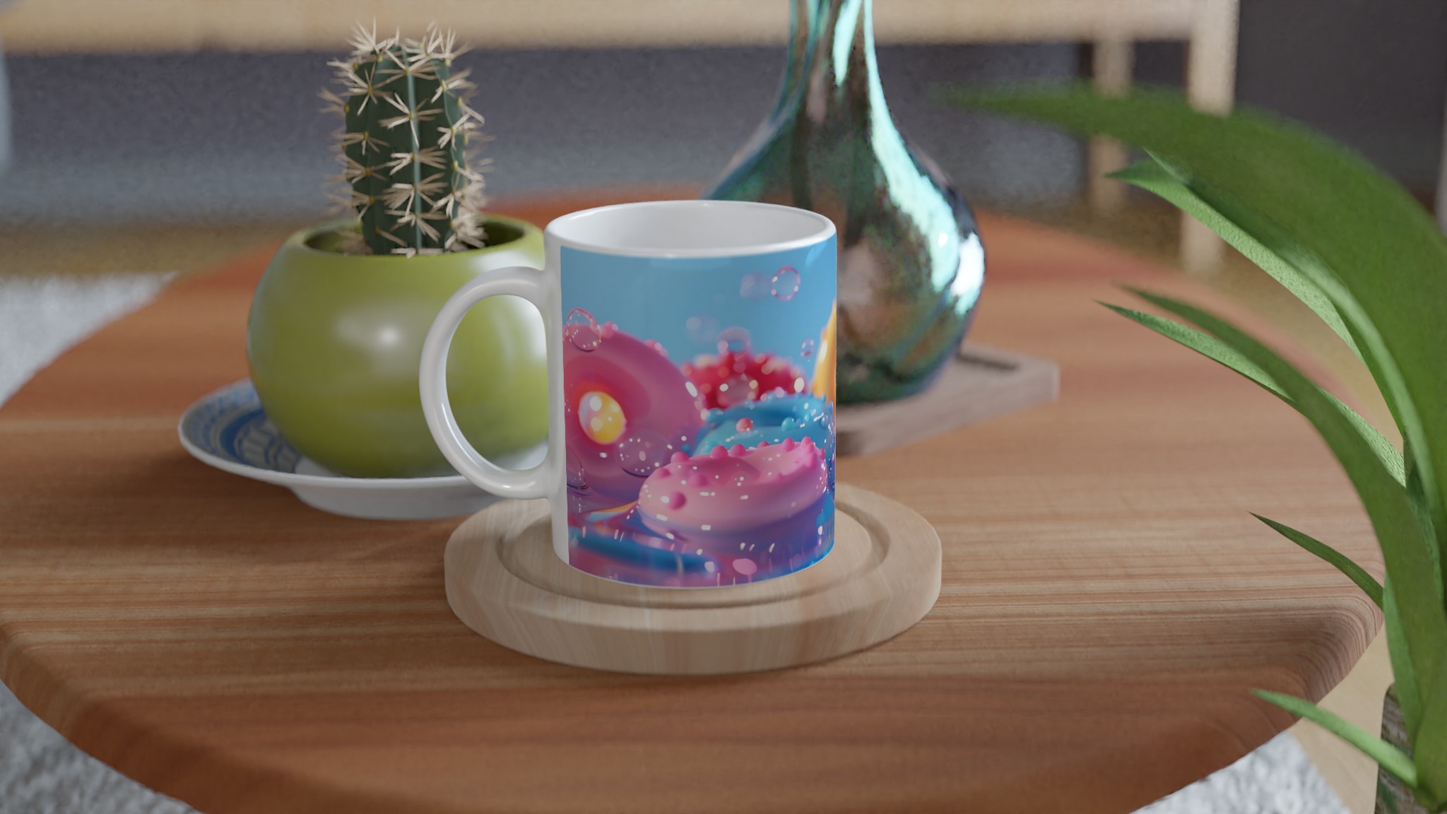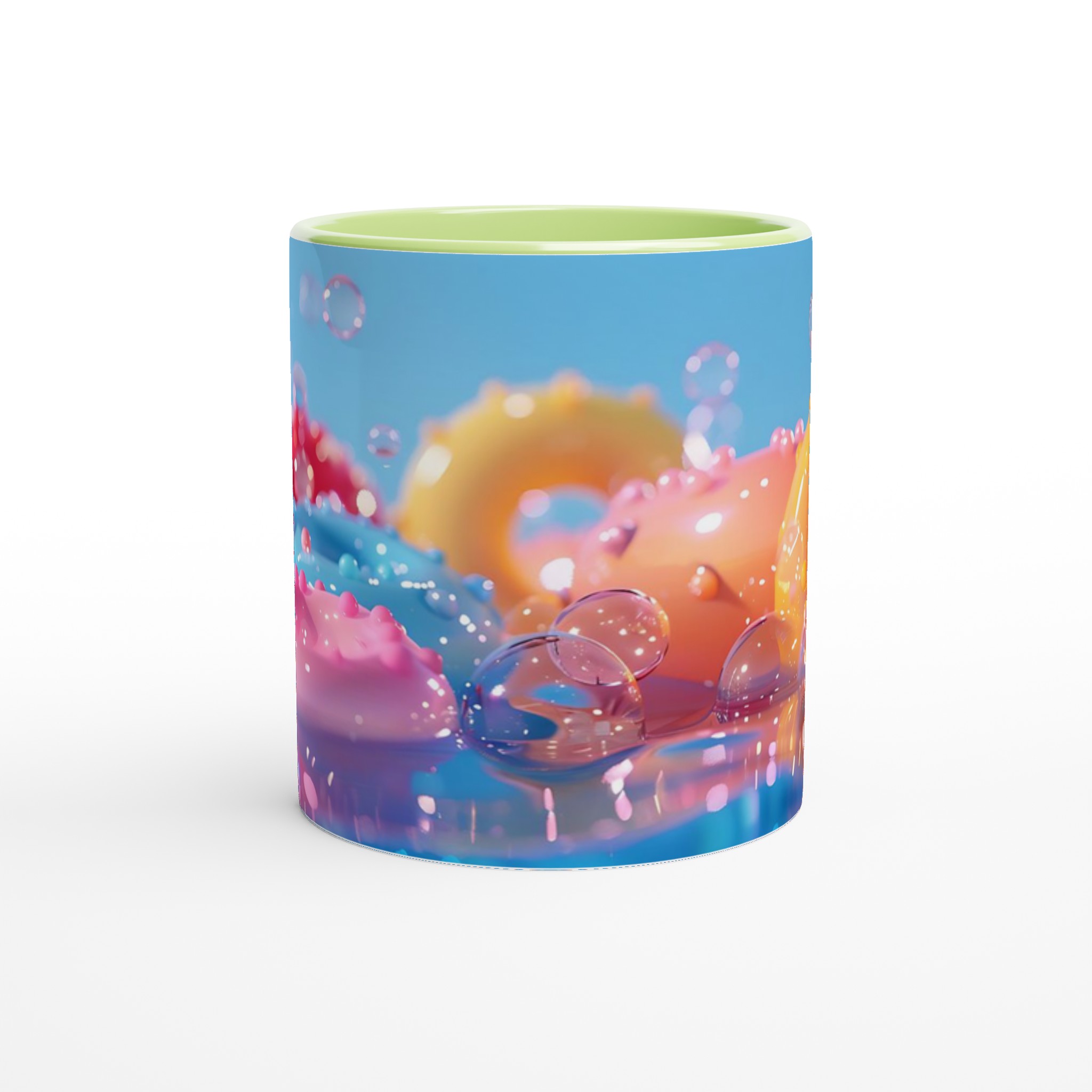 Lyft dina fikastunder med vår lekfulla 11oz keramiska mugg, inspirerad av glädjen och de klara färgerna i bilden. Denna charmiga mugg är designad för att sprida goda vibbar och göra varje sipp till en upplevelse, oavsett om det är ditt morgonkaffe, en lugnande kopp te eller en festlig varm choklad.