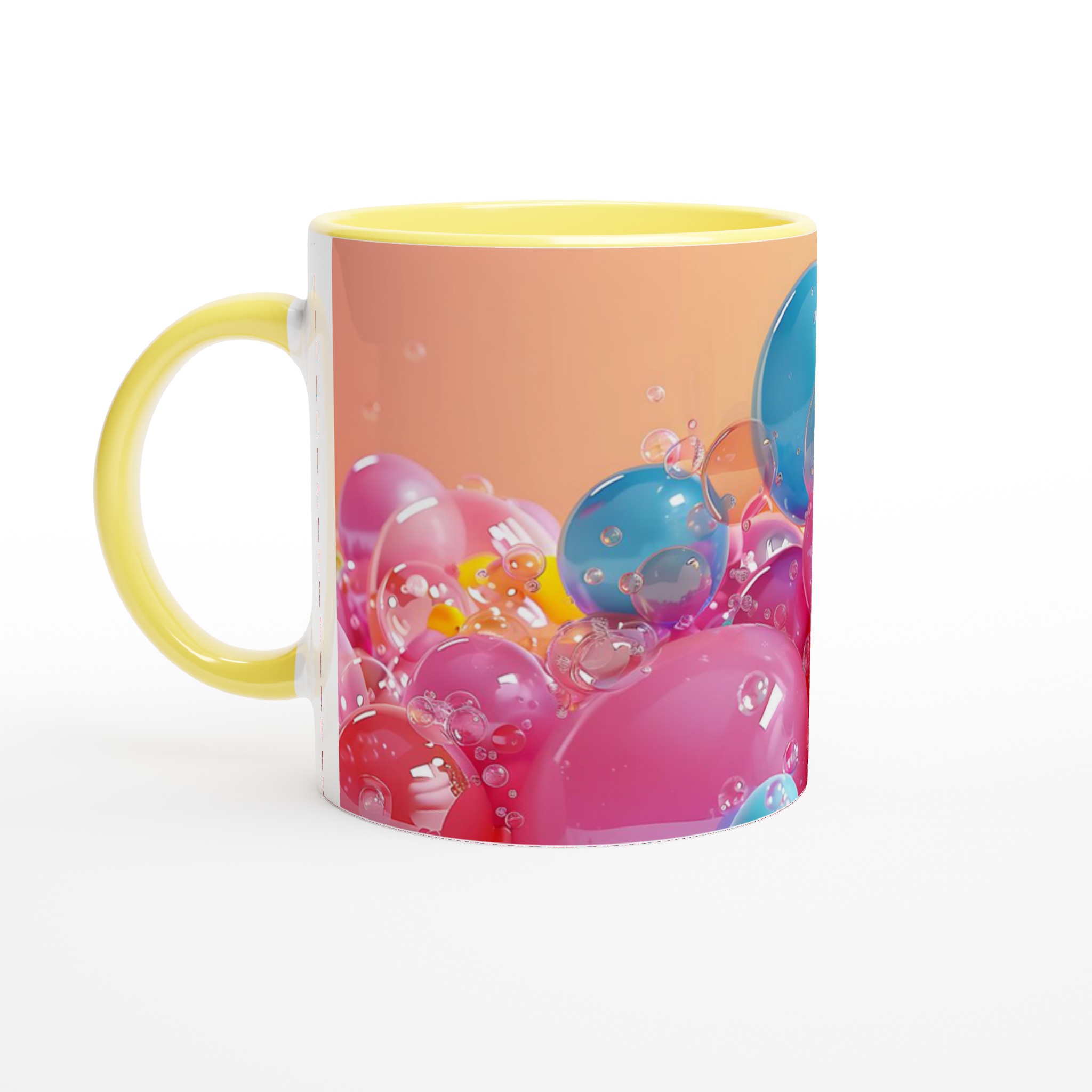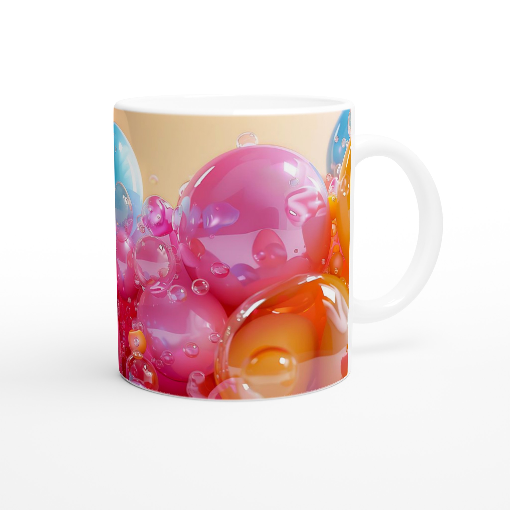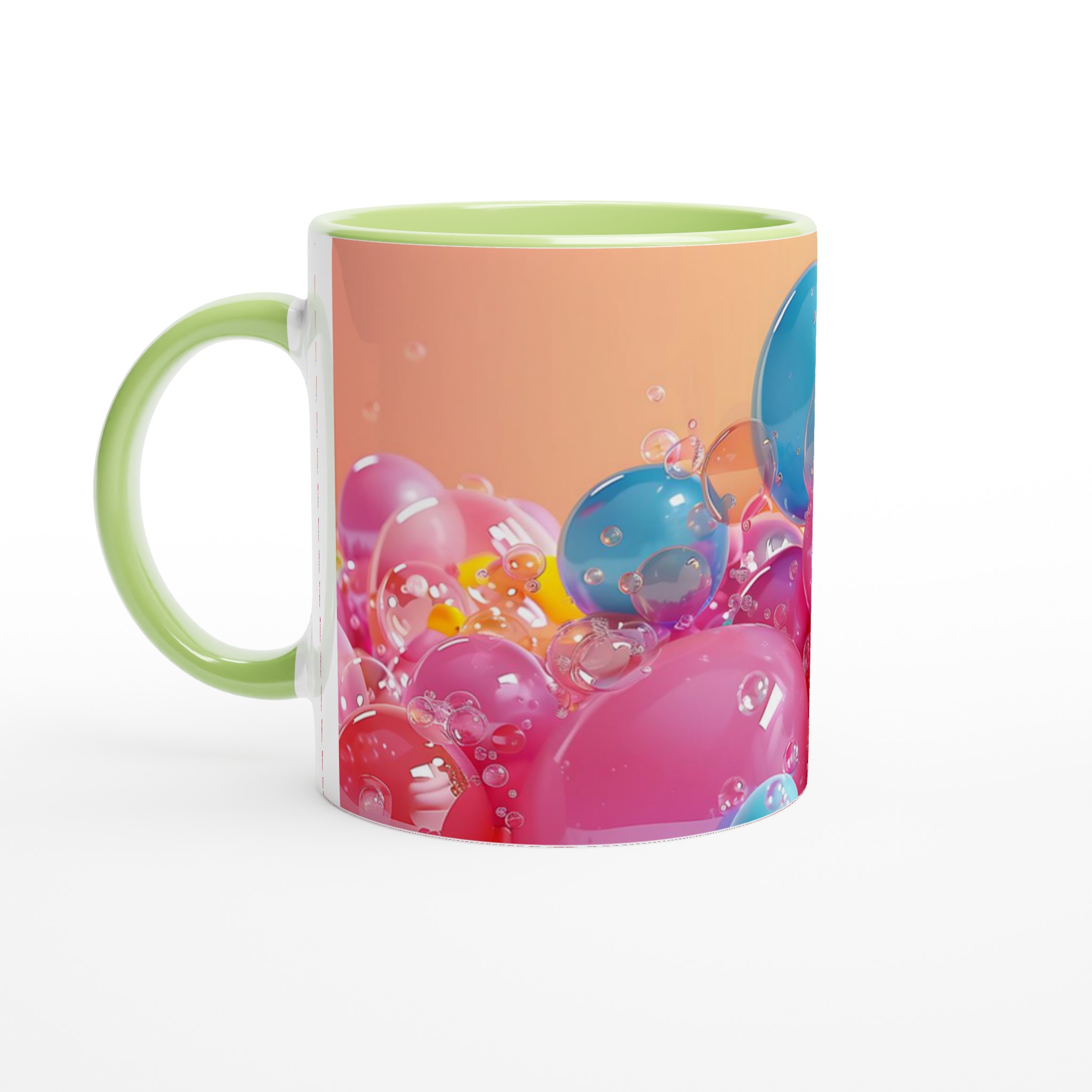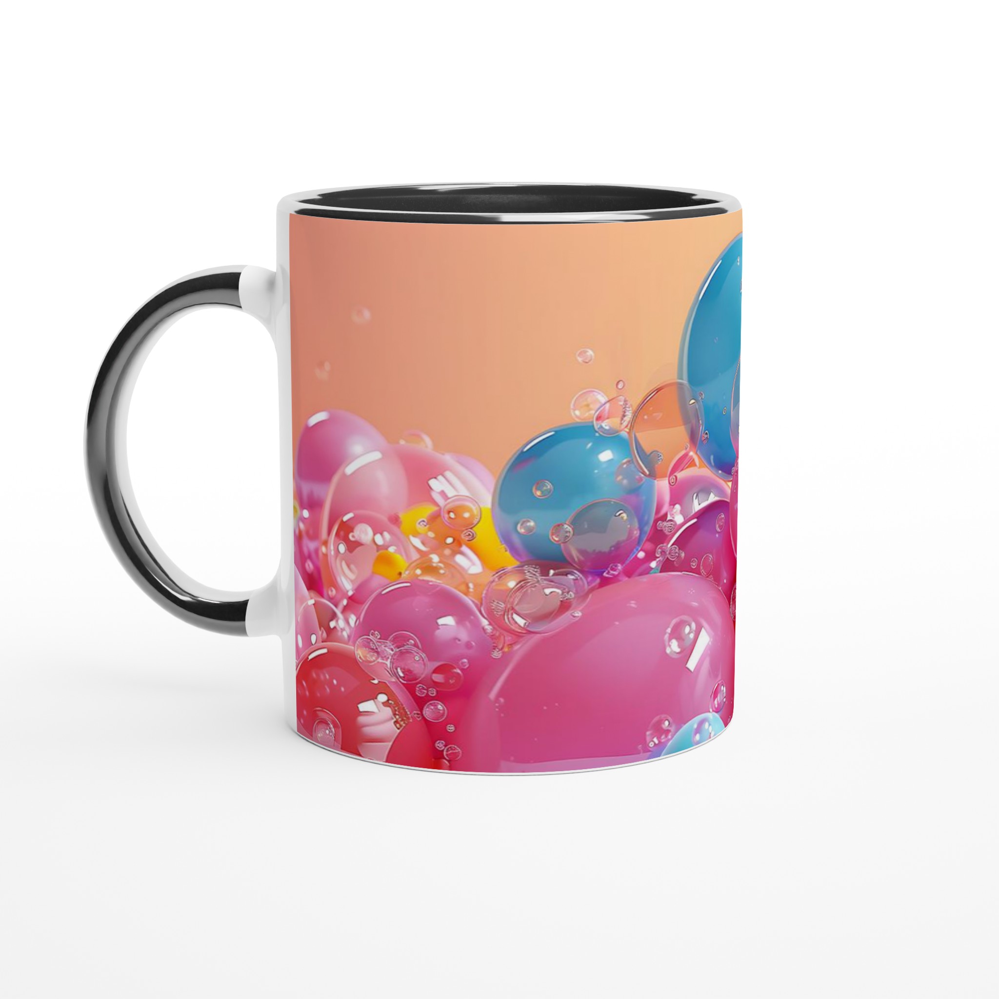 Denna charmiga keramiska mugg, inspirerad av glada, flytande bubblor i levande färger, blir snabbt en vardagsfavorit. Perfekt för morgonkaffet, kvällens varma choklad eller när du bara vill njuta av en kopp te med en touch av lekfullhet. Den blanka ytan framhäver trycken med klara och levande färger, som håller sig fina även efter många turer i mikron och diskmaskinen, precis som de glänsande bubblorna i bilden.