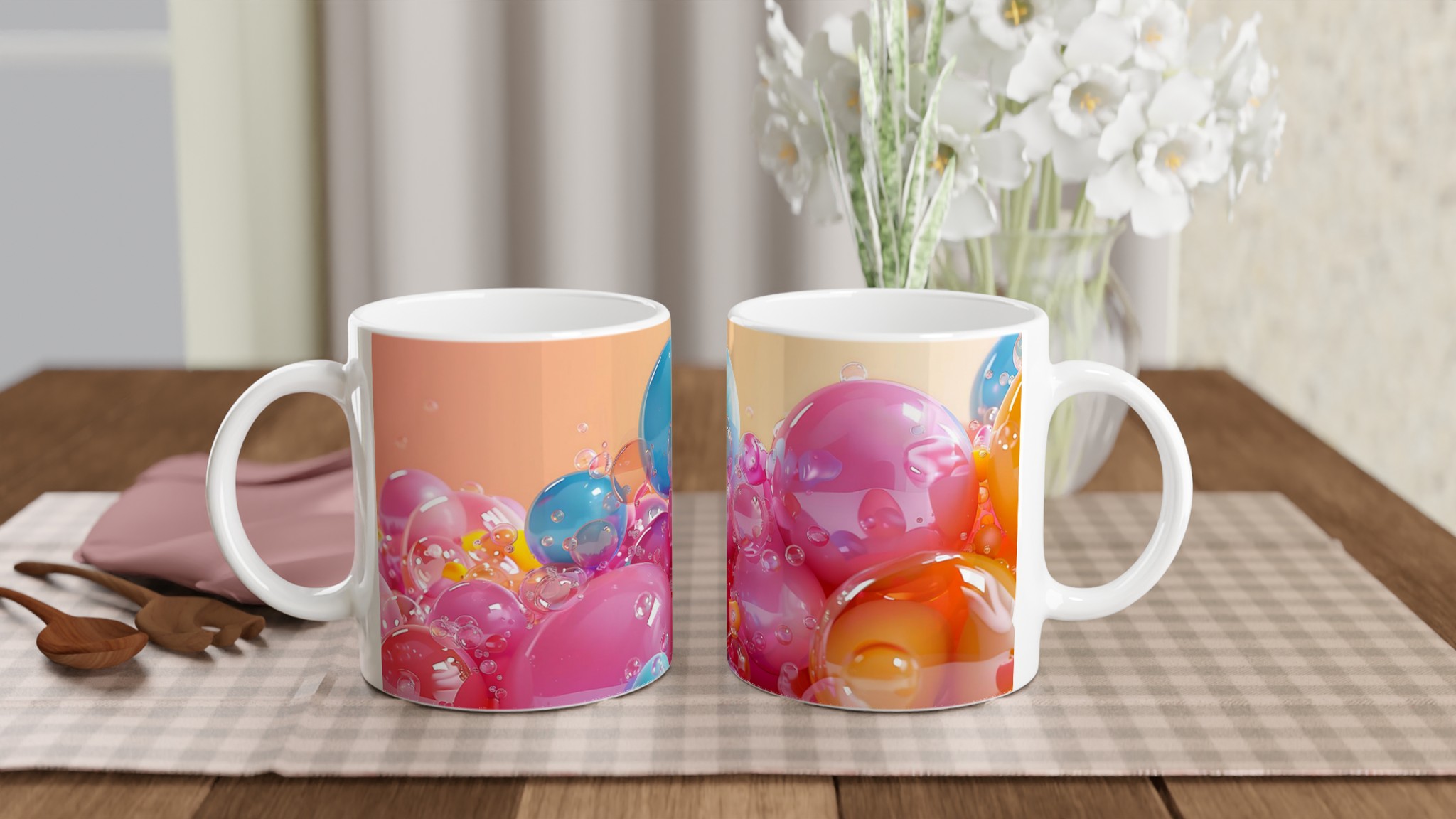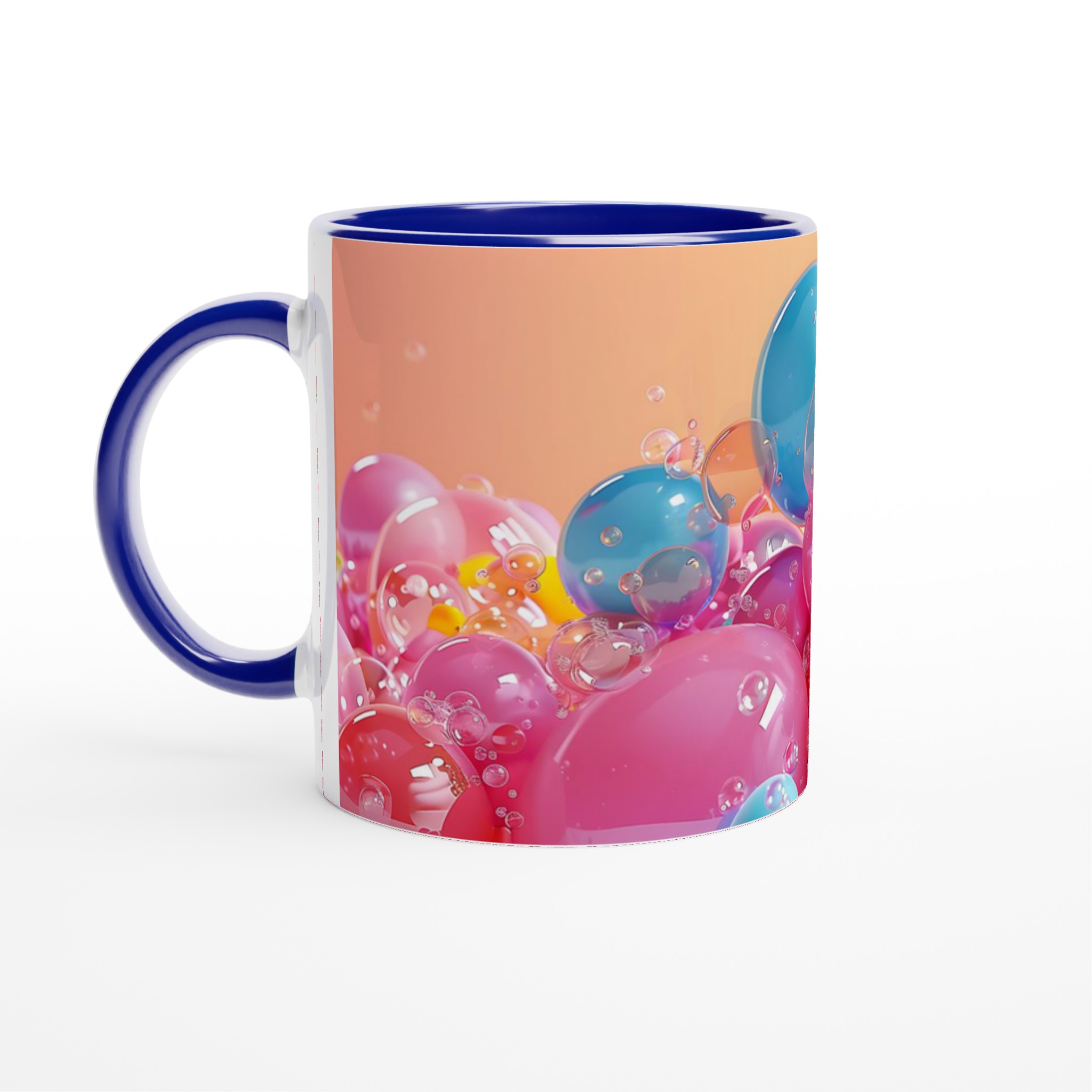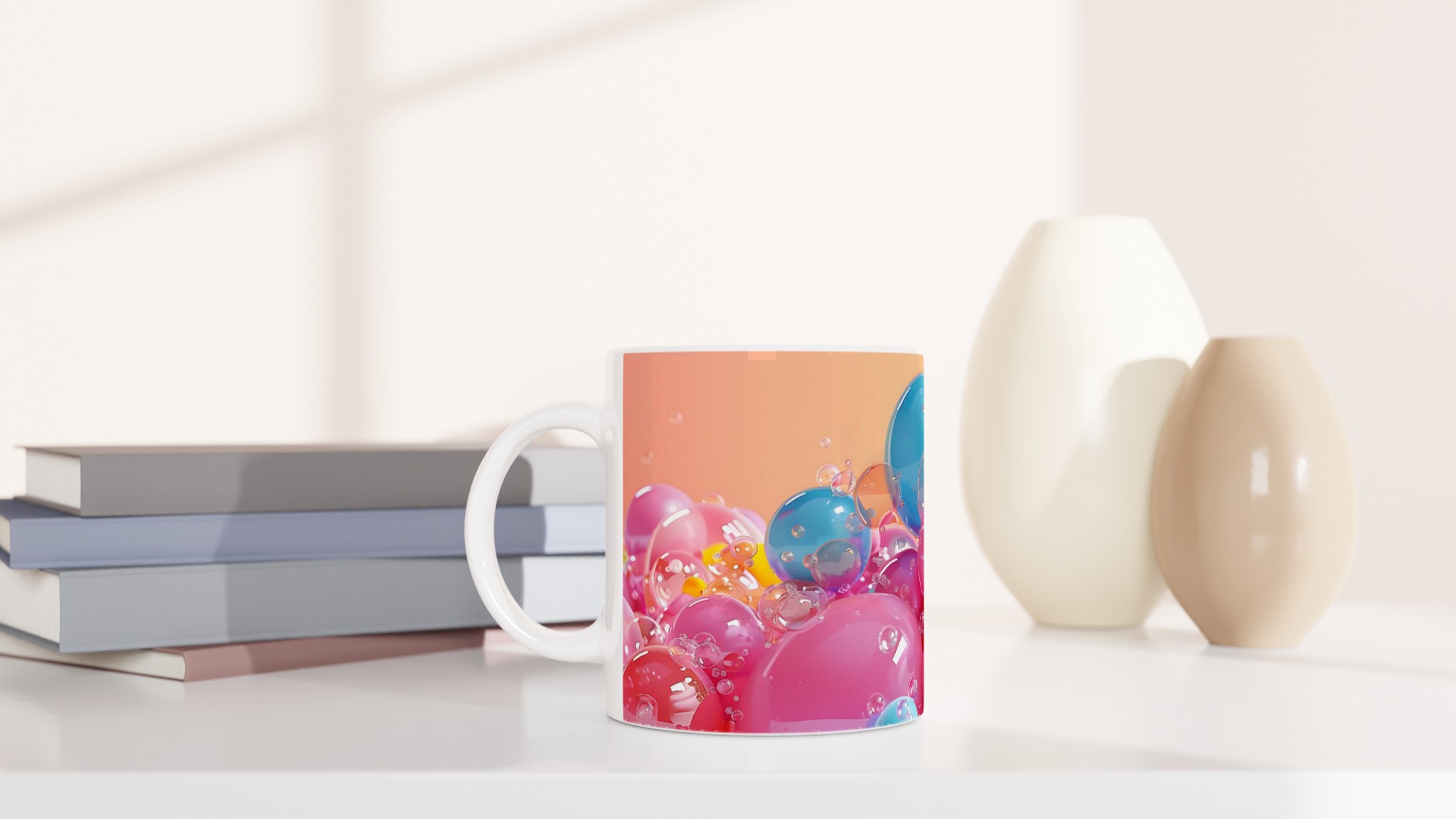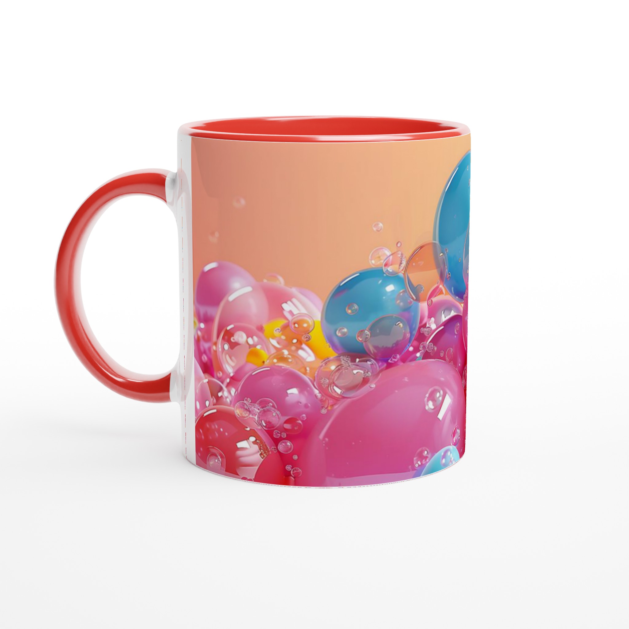 Denna charmiga keramiska mugg, inspirerad av glada, flytande bubblor i levande färger, blir snabbt en vardagsfavorit. Perfekt för morgonkaffet, kvällens varma choklad eller när du bara vill njuta av en kopp te med en touch av lekfullhet. Den blanka ytan framhäver trycken med klara och levande färger, som håller sig fina även efter många turer i mikron och diskmaskinen, precis som de glänsande bubblorna i bilden.