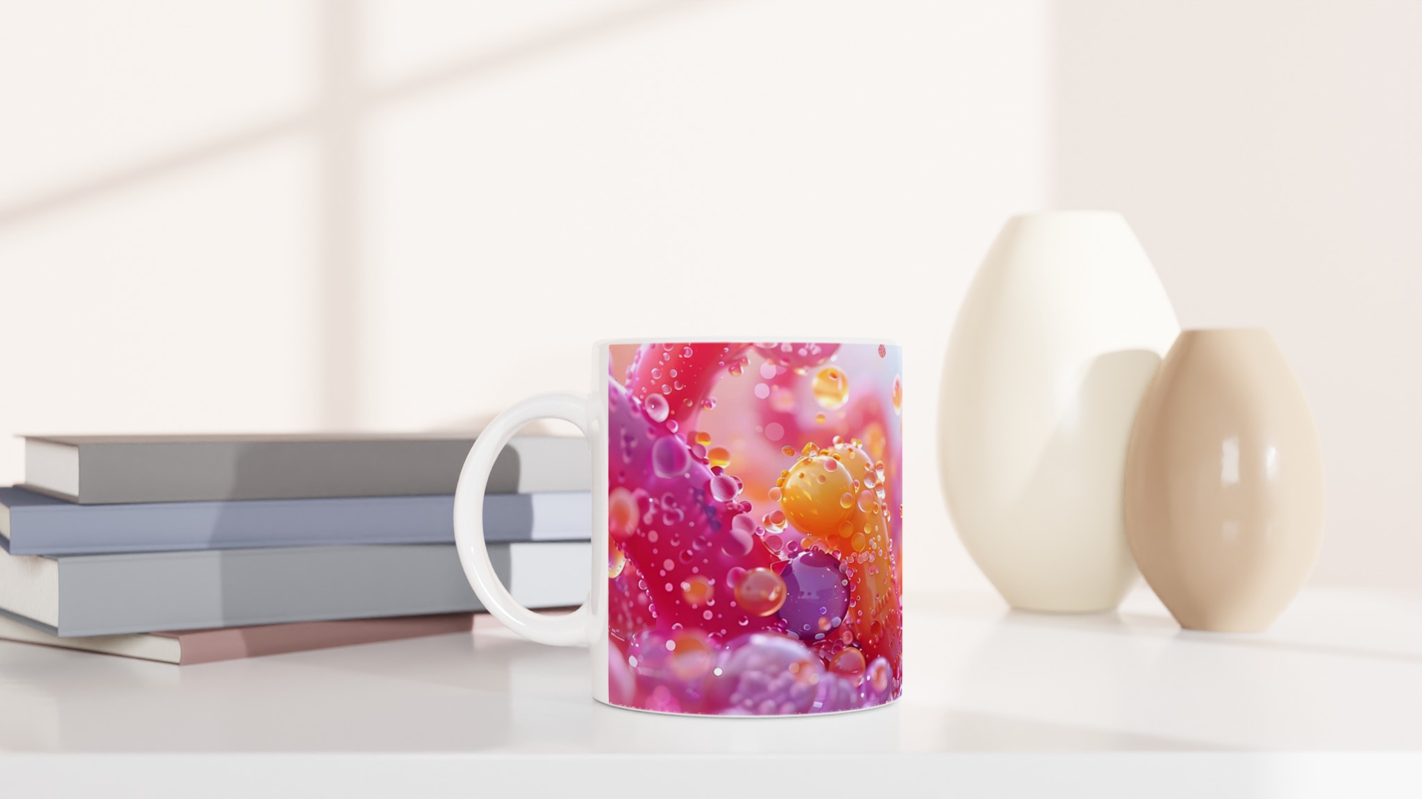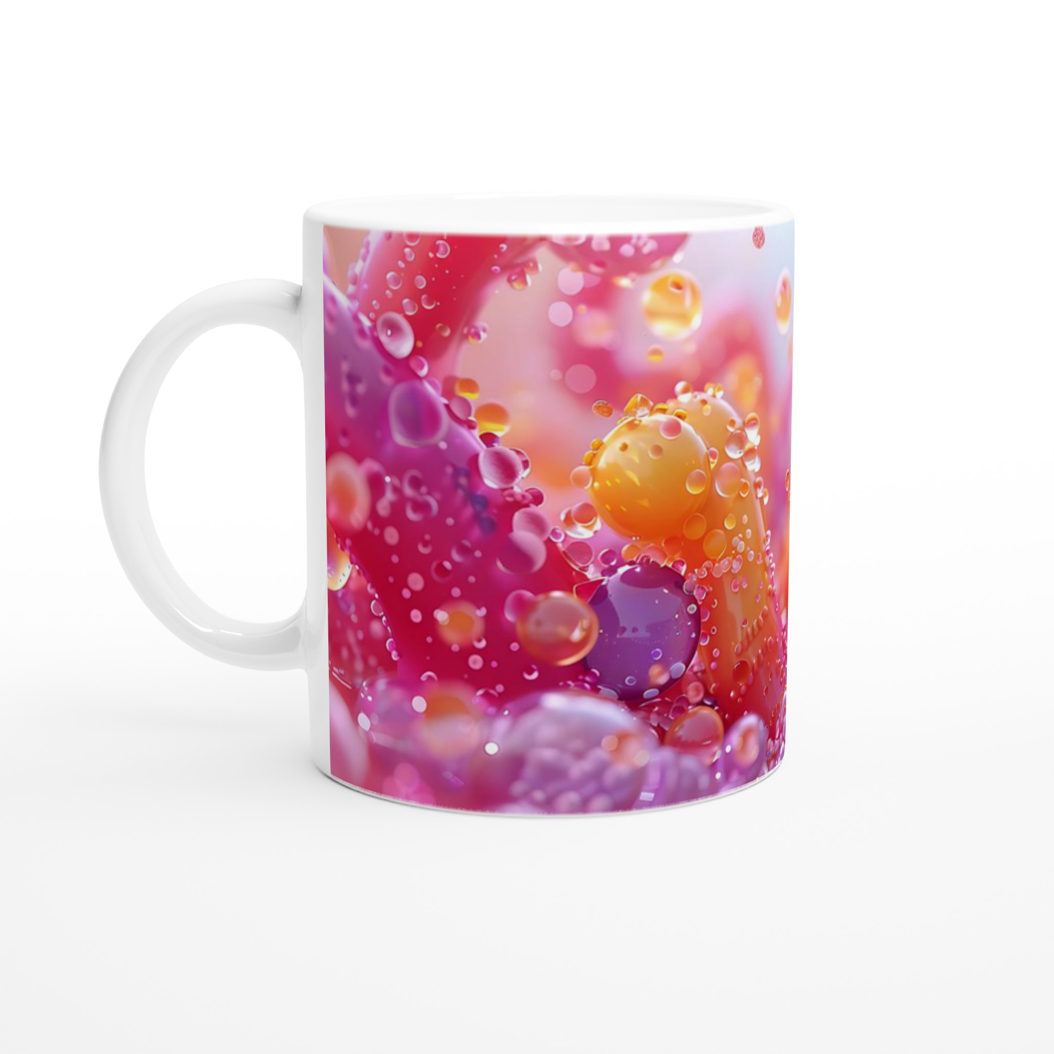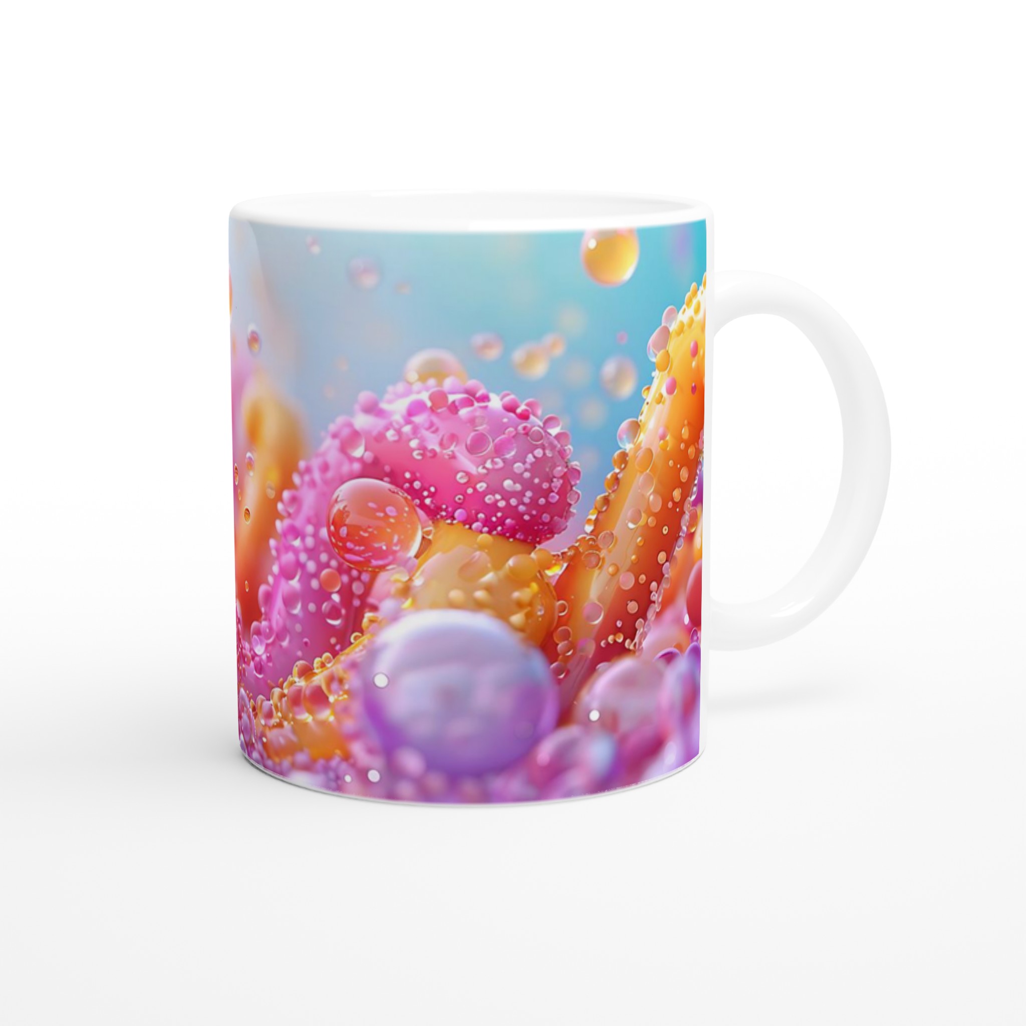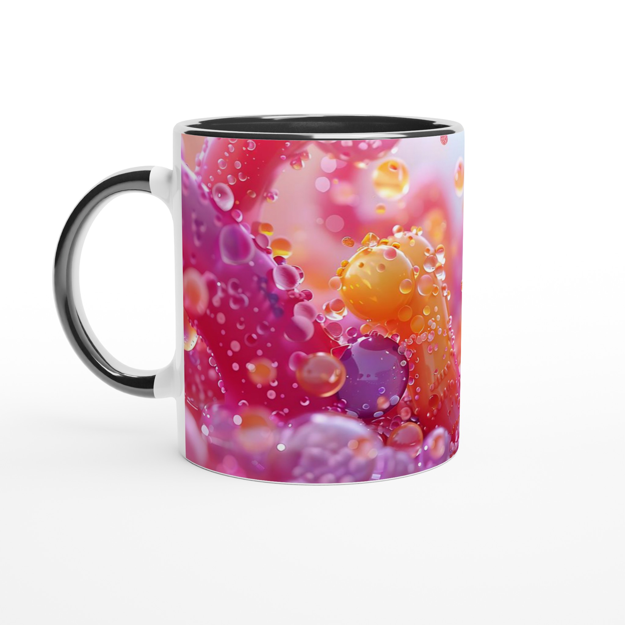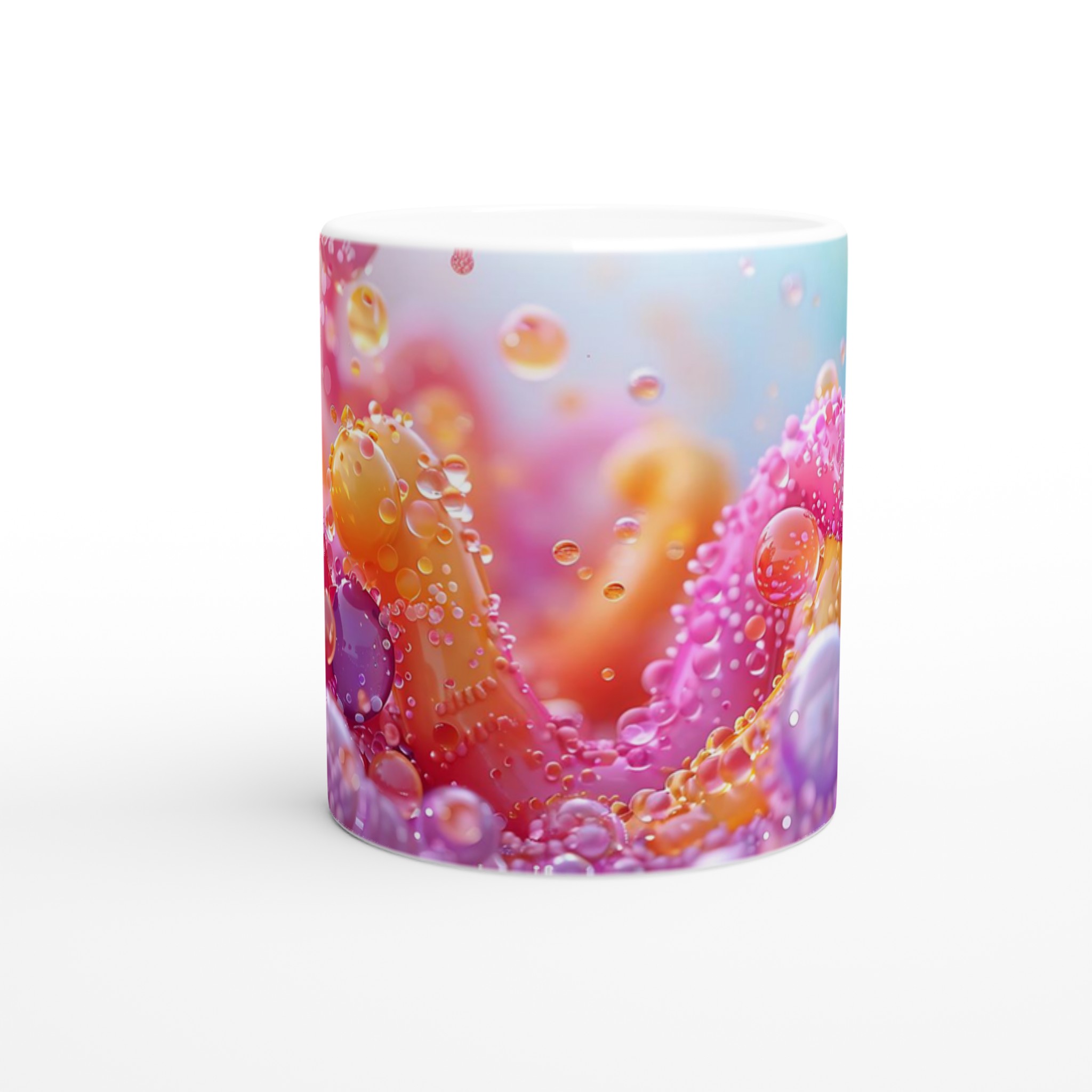 Lyft din vardagsrutin med denna livfulla keramiska mugg, inspirerad av en lekfull explosion av bubblor och strålande färger. Denna mugg är mer än bara en kopp – den är en daglig påminnelse om glädje och kreativitet, perfekt för att starta morgonen med kaffe, mysa med varm choklad på kvällen, eller njuta av en lugn te-stund.