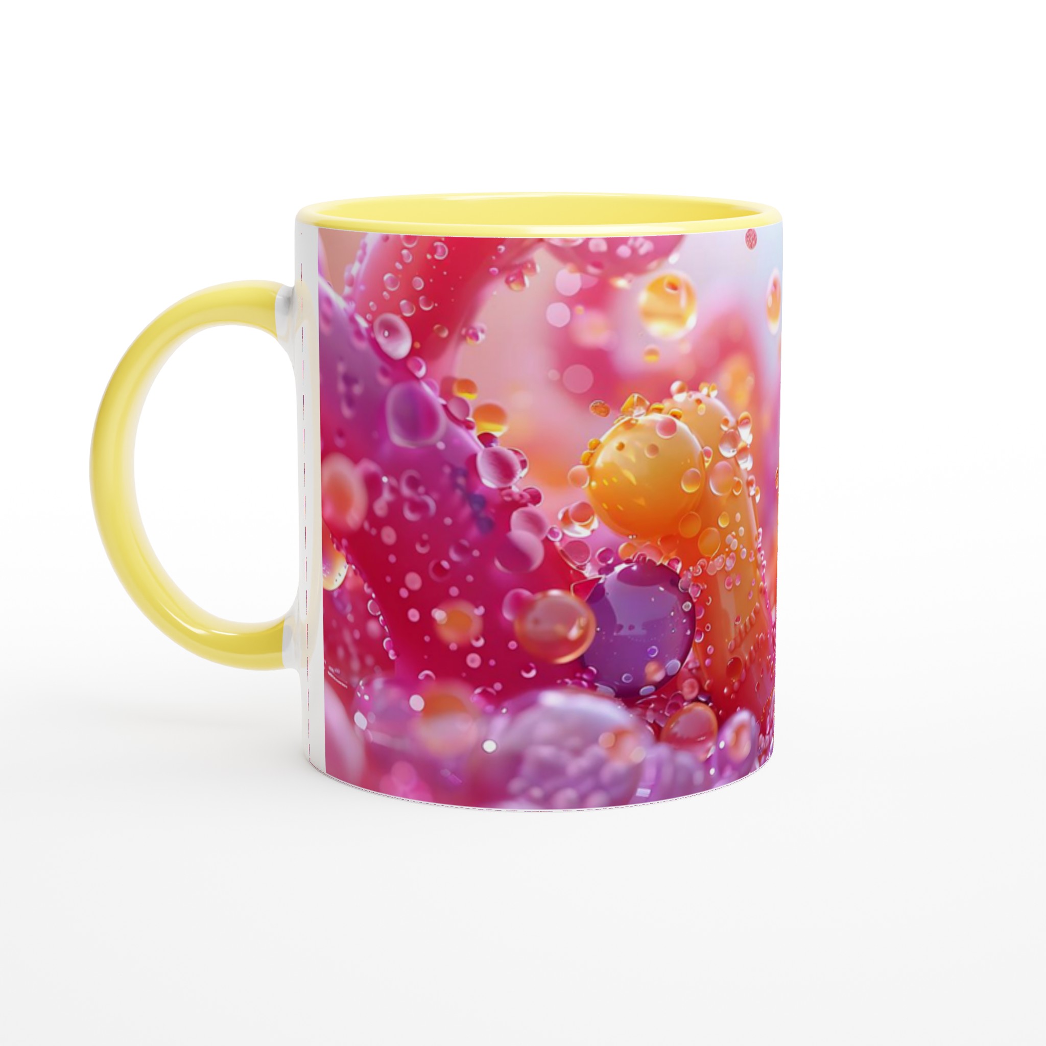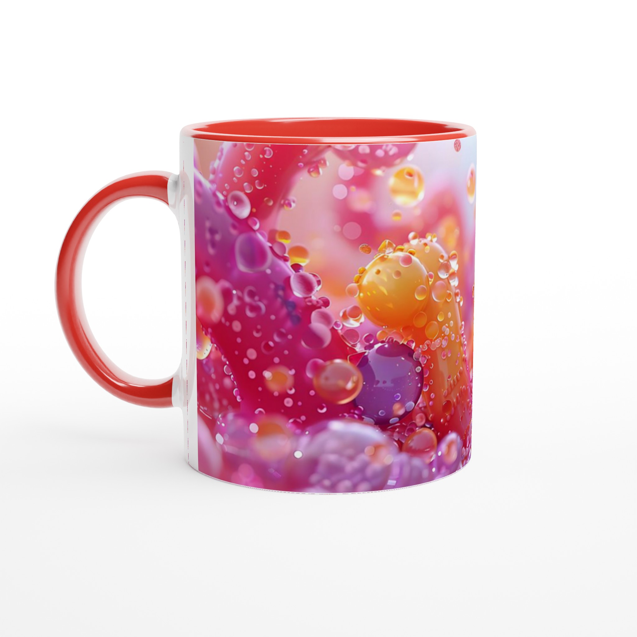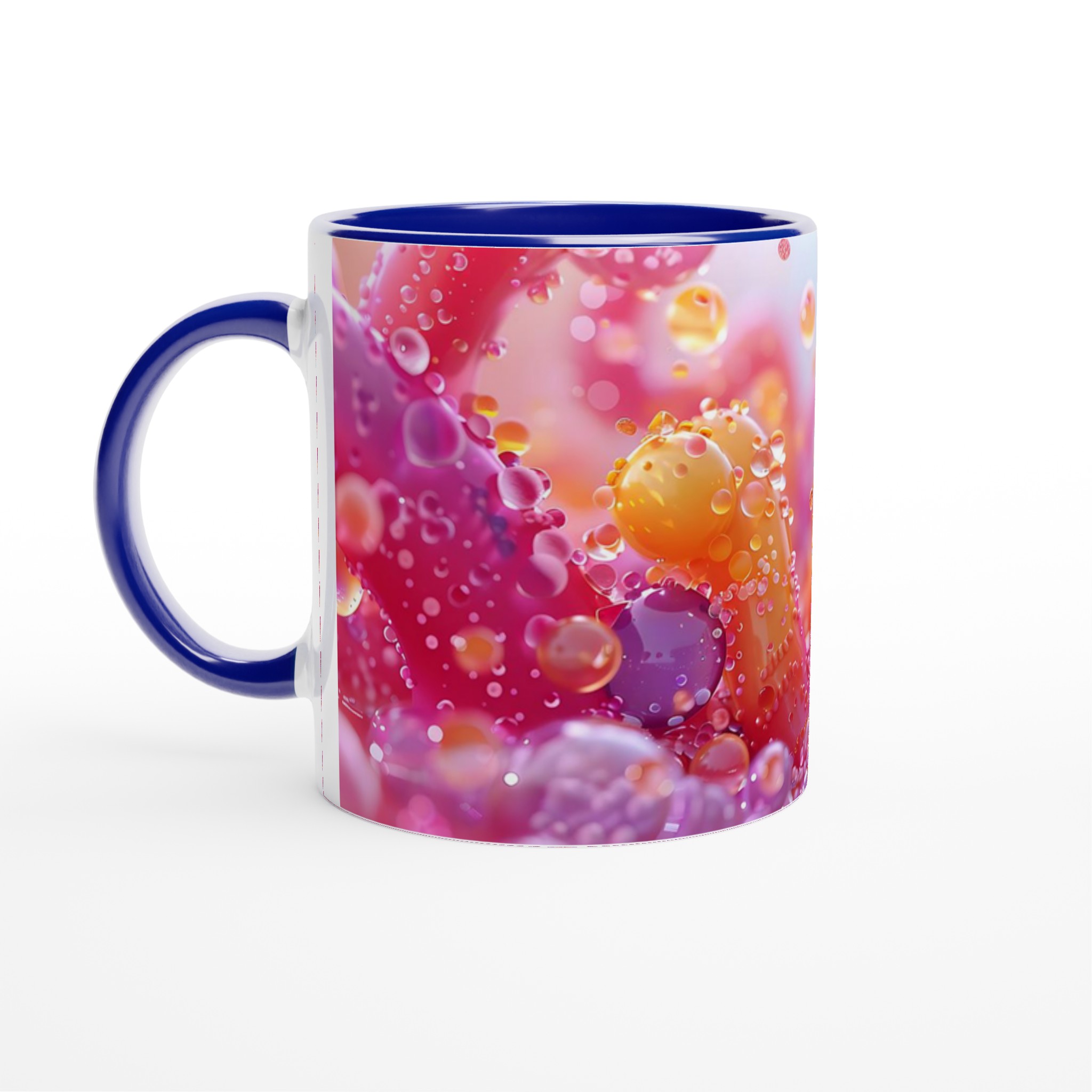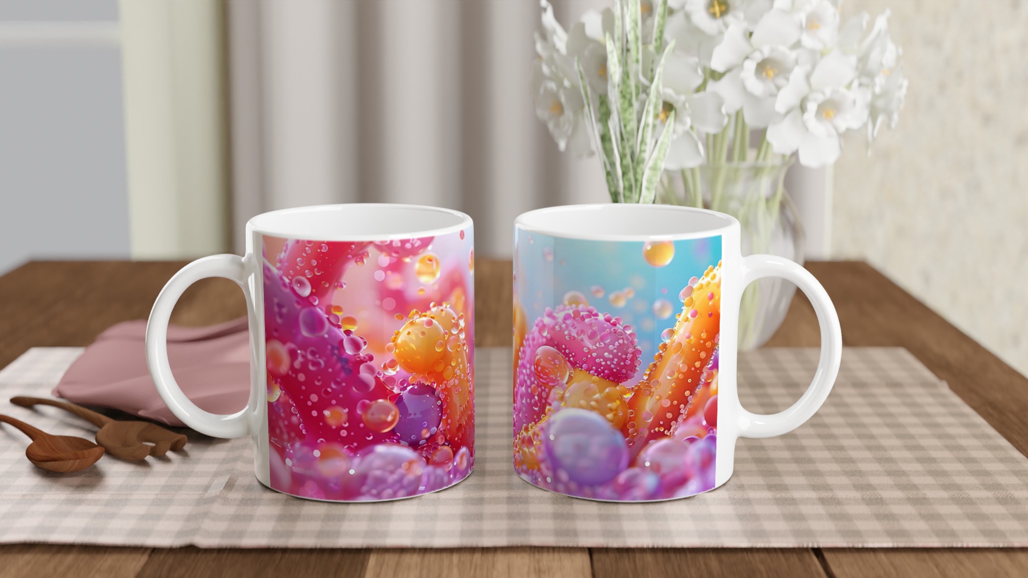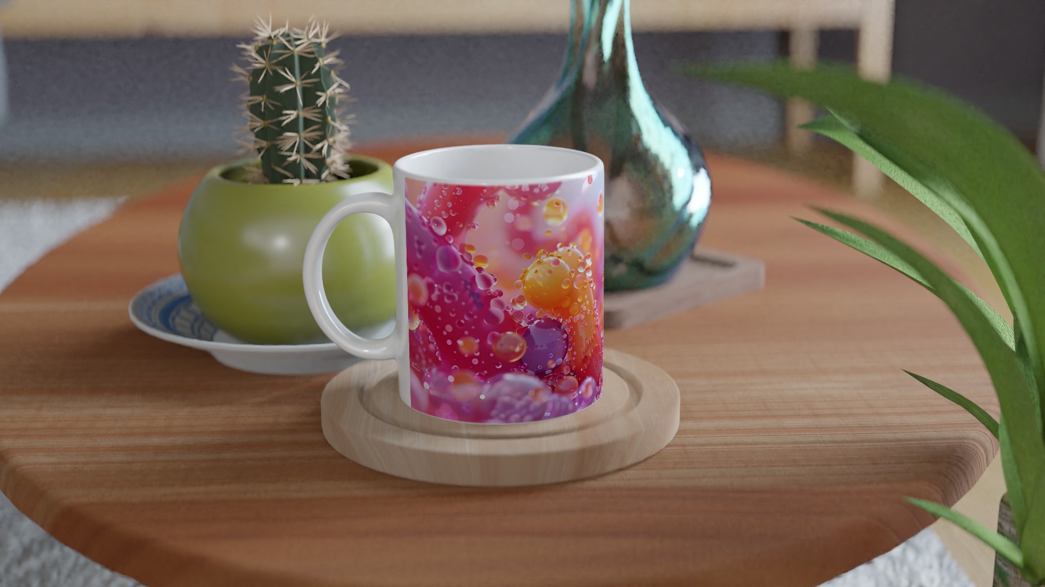 Lyft din vardagsrutin med denna livfulla keramiska mugg, inspirerad av en lekfull explosion av bubblor och strålande färger. Denna mugg är mer än bara en kopp – den är en daglig påminnelse om glädje och kreativitet, perfekt för att starta morgonen med kaffe, mysa med varm choklad på kvällen, eller njuta av en lugn te-stund.