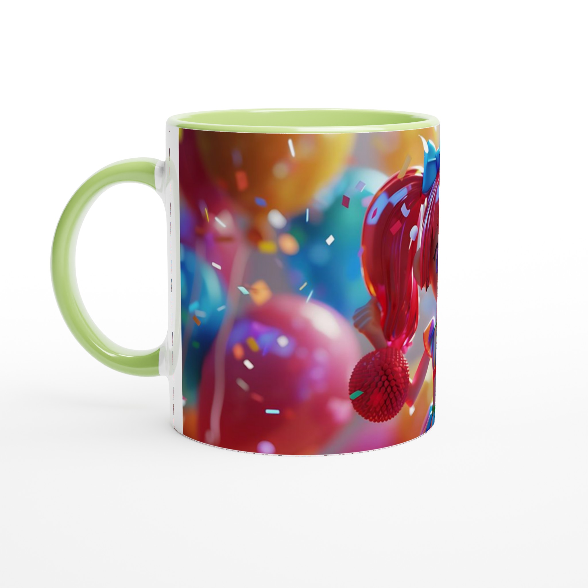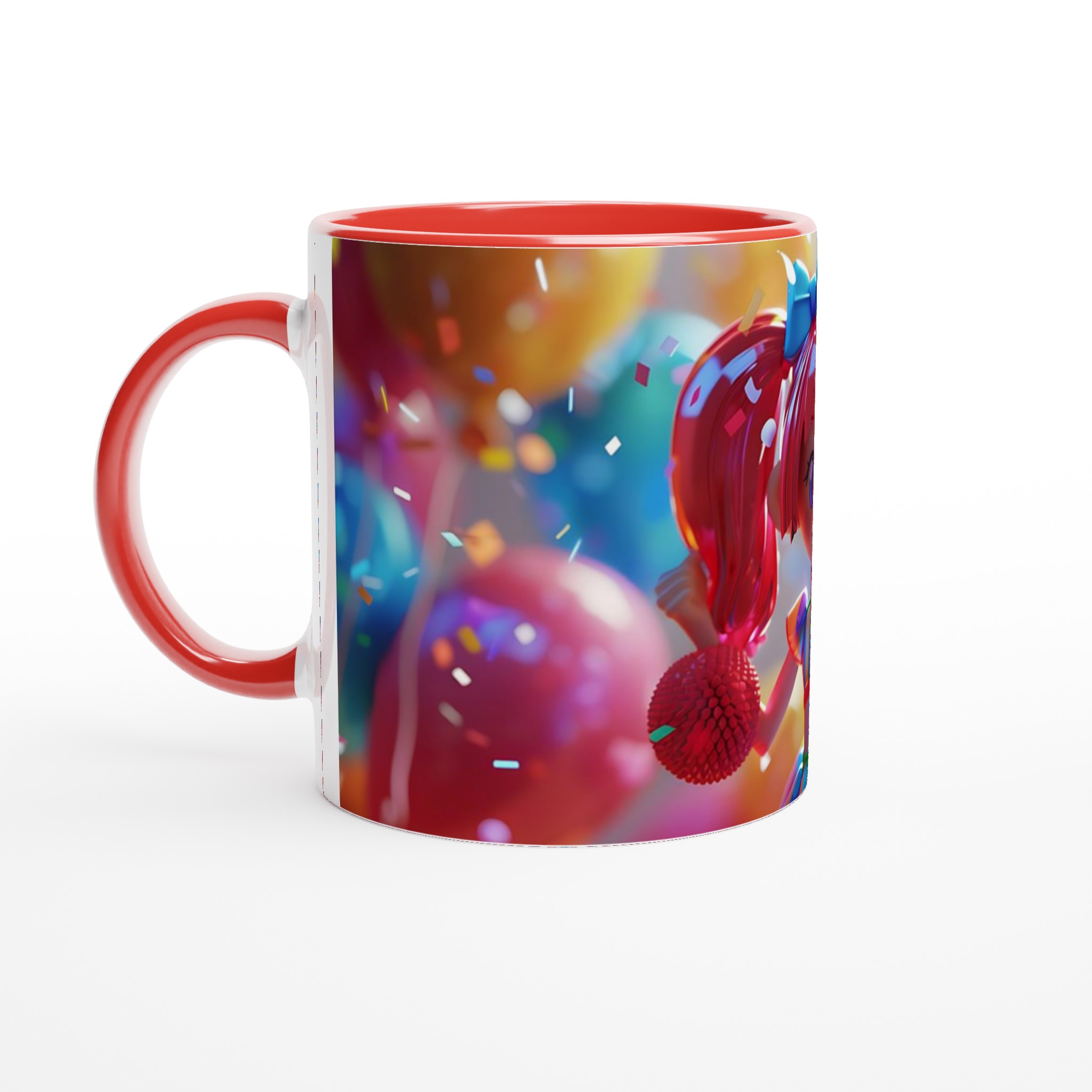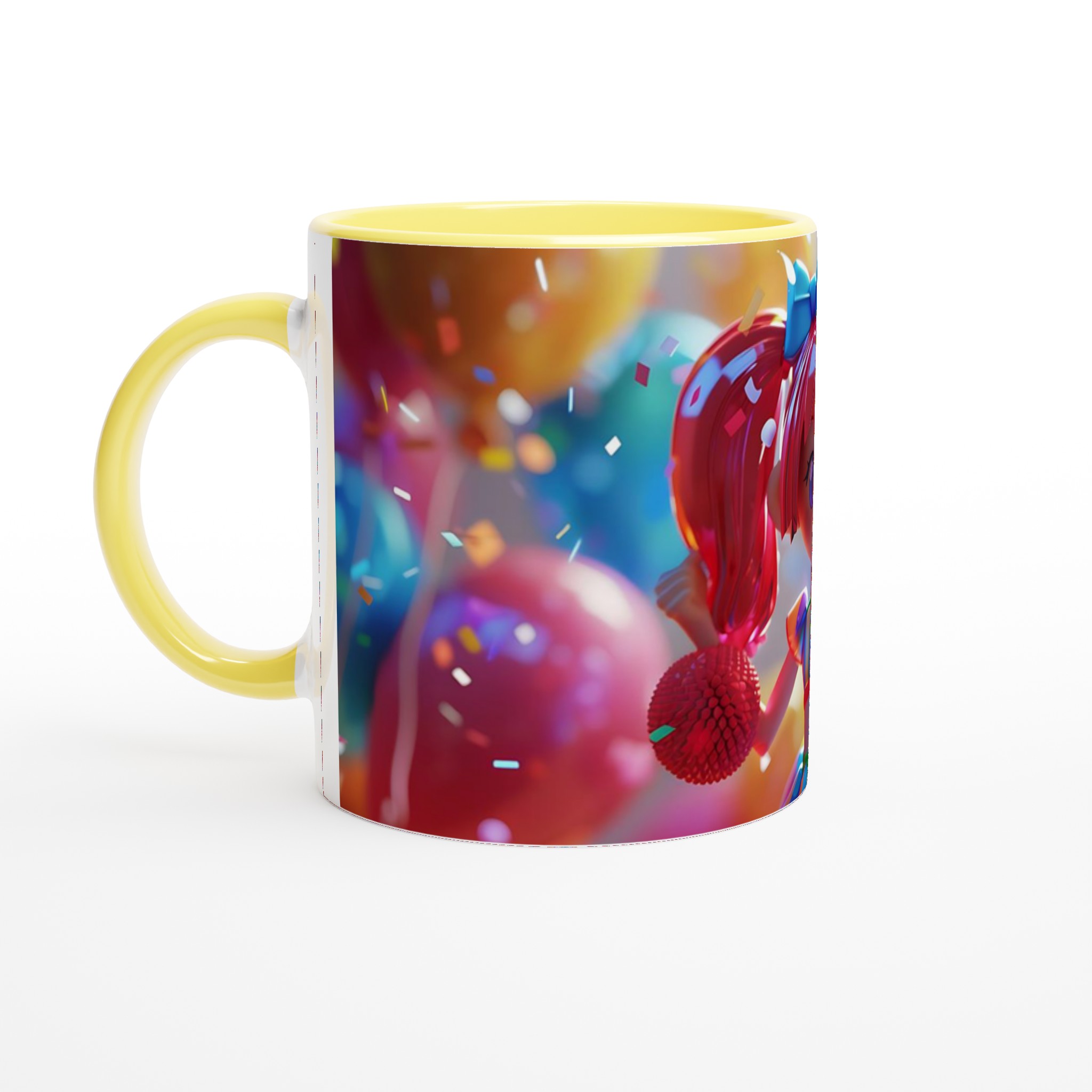 Lys upp din dag med denna otroligt festliga keramiska mugg! Inspirerad av en värld av glädje och konfetti, bjuder denna mugg in till en explosion av färg och lekfullhet. Den är perfekt för morgonkaffet, kvällens varma choklad eller när du bara vill njuta av en kopp te och drömma dig bort till ett karnevalstema. Den blanka ytan gör att trycken framhävs med klara och levande färger, som håller sig fina även efter många turer i mikron och diskmaskinen.