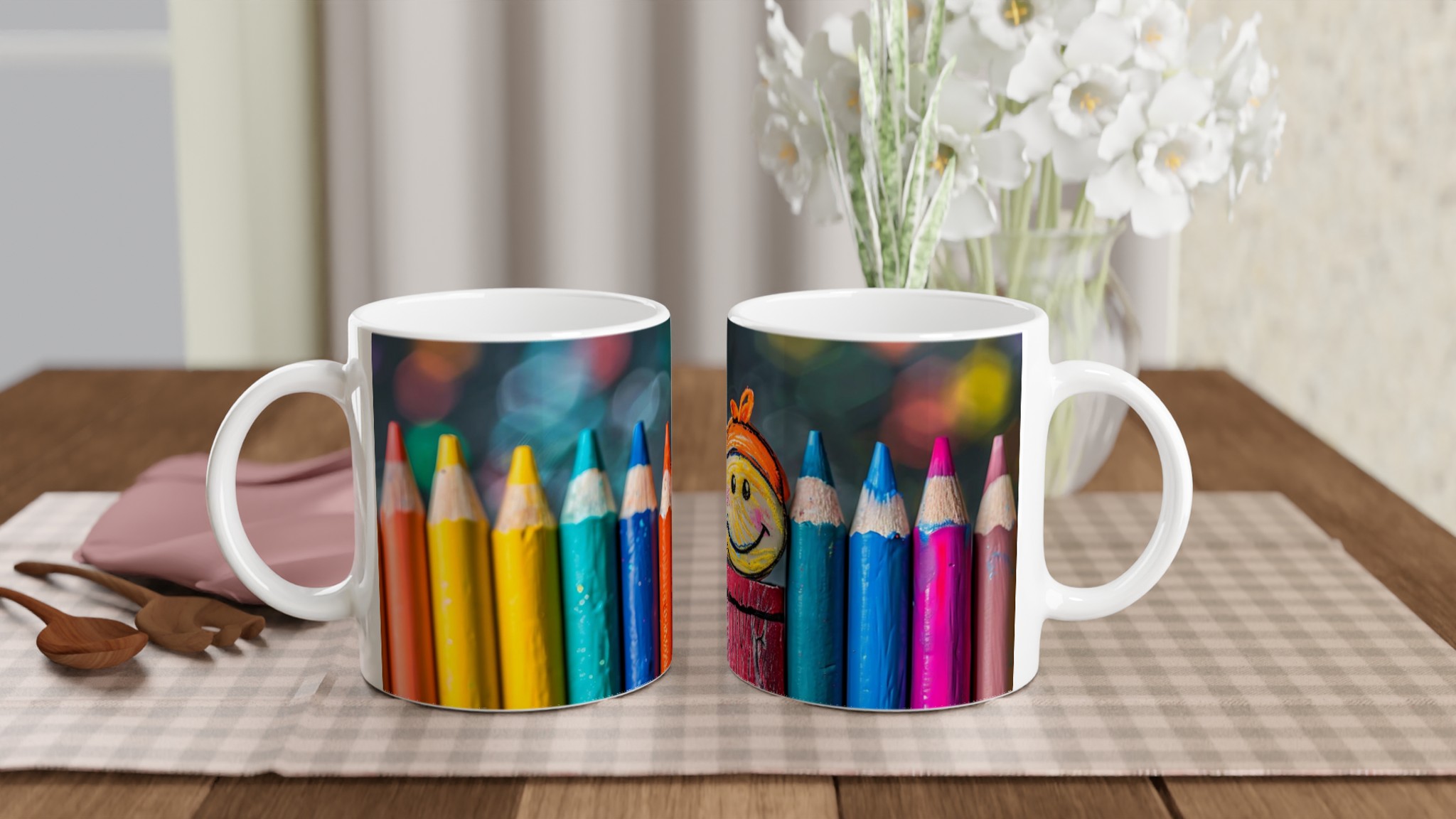 Lys upp din dag med vår färgglada keramiska mugg! Inspirerad av den lekfulla glädjen hos barnens teckningar och regnbågens alla färger, blir denna mugg snabbt din nya favorit. Oavsett om det är till morgonkaffet, kvällens mysiga varma choklad, eller en lugn stund med en kopp te, ger den en extra dos av glädje och färg till din rutin. Den blanka ytan får alla färger att stråla och behålla sin lyster, även efter otaliga turer i mikron och diskmaskinen.