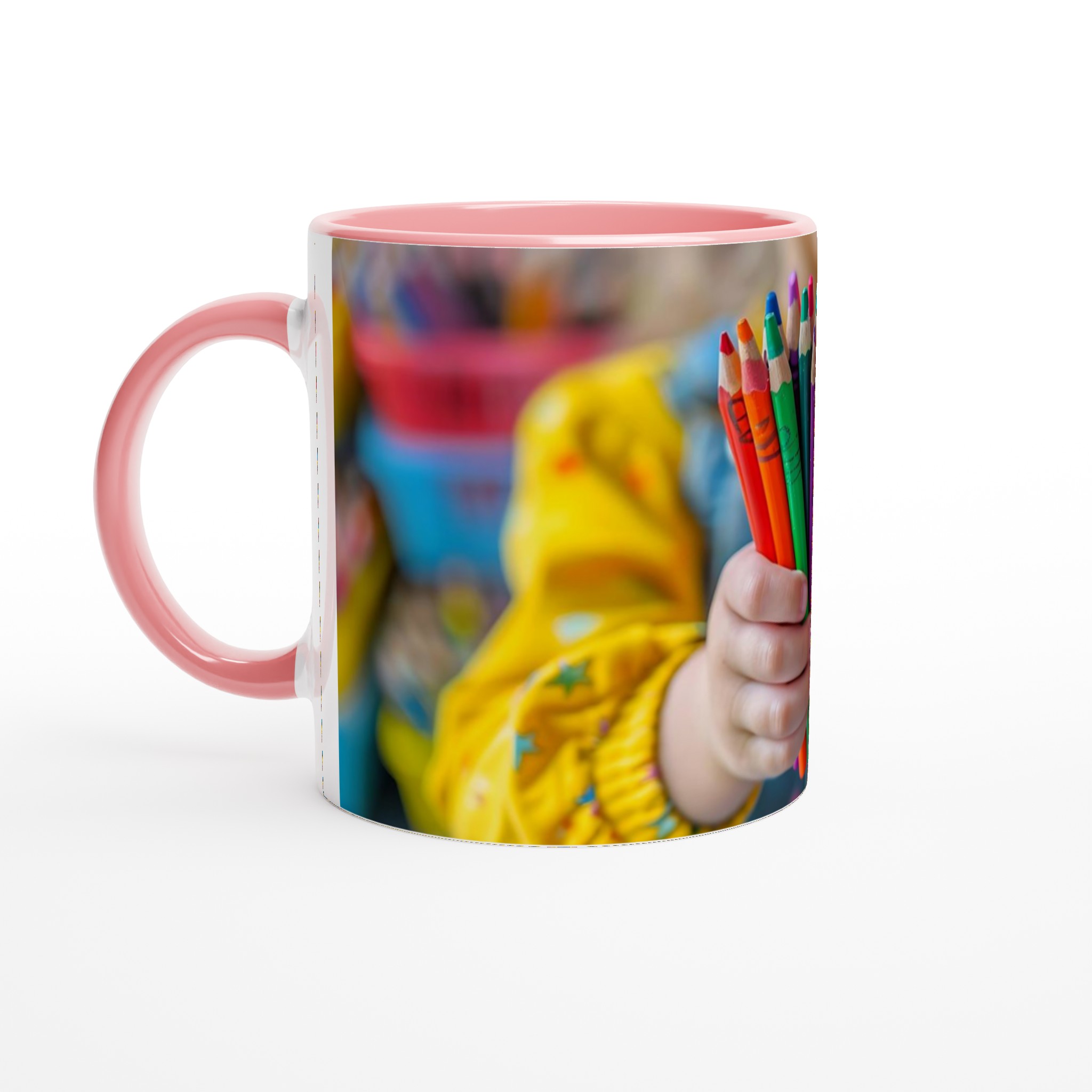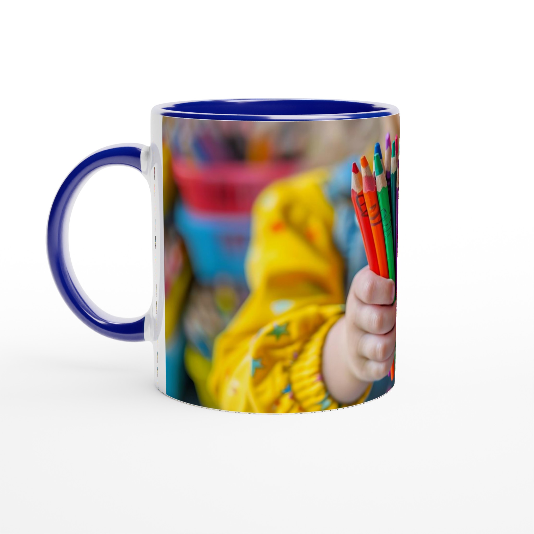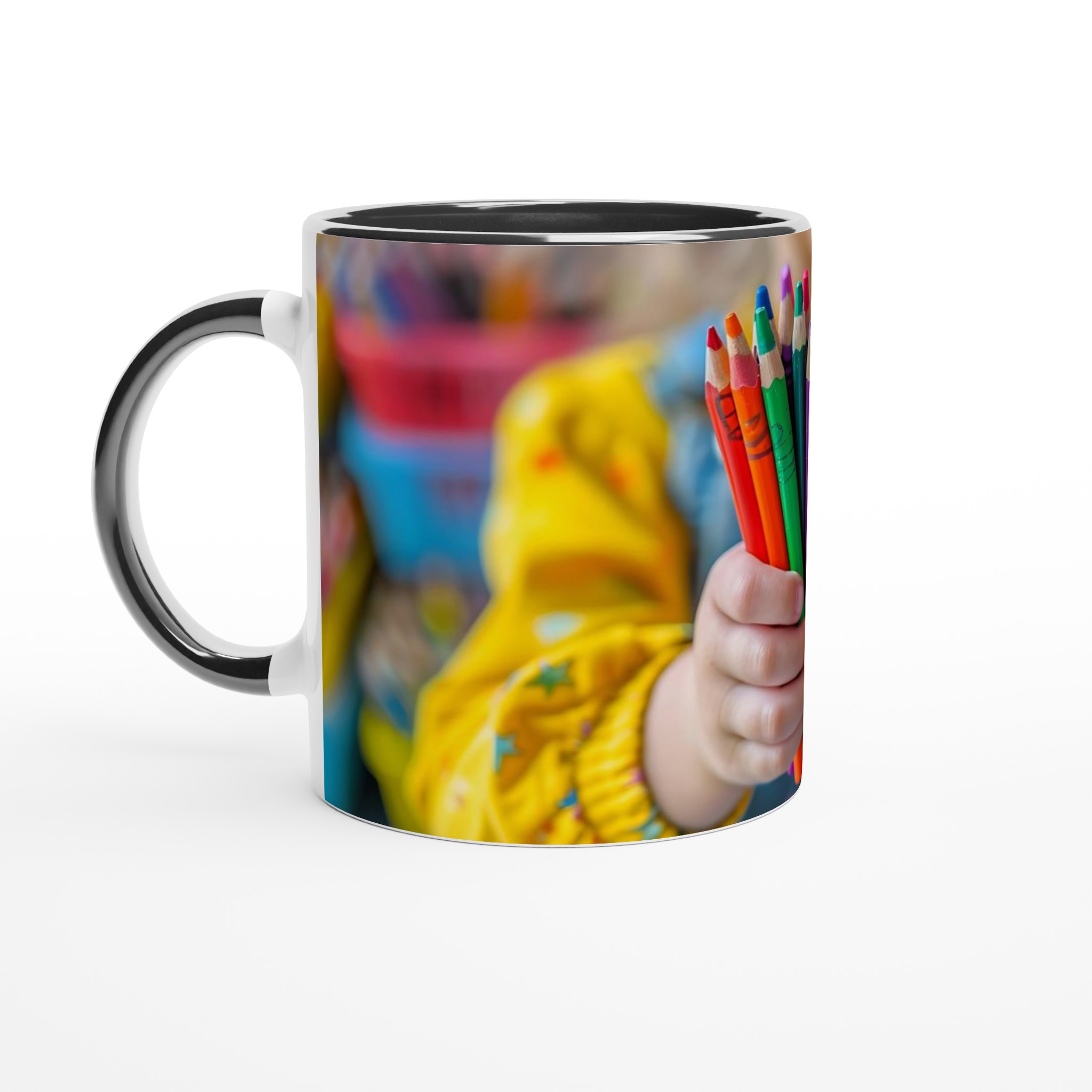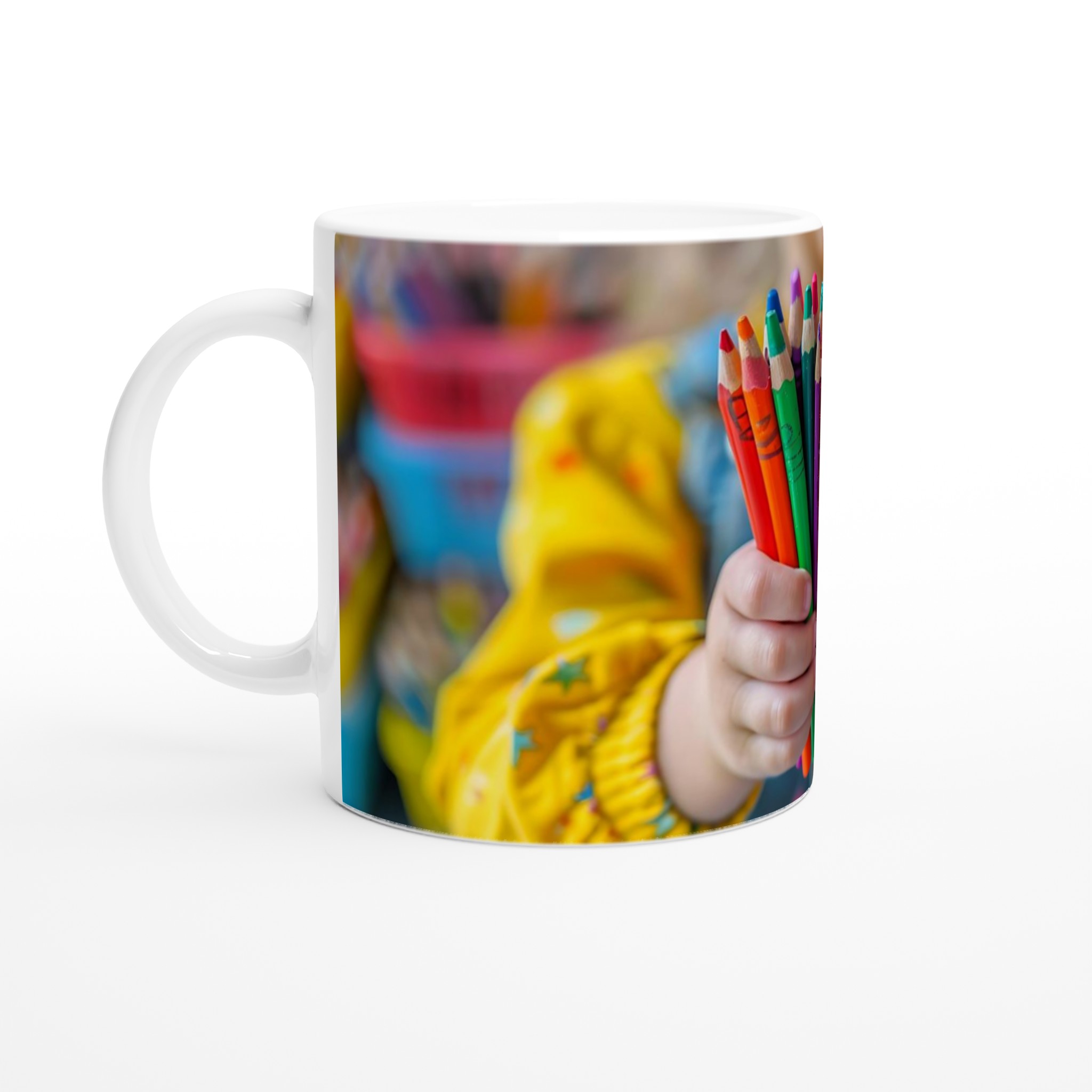 Låt din inre konstnär blomstra varje gång du tar en klunk! Inspirerad av livfulla färgpennor och glädjen i att skapa, blir denna stilrena keramiska mugg snabbt en vardagsfavorit. Perfekt för morgonkaffet, kvällens varma choklad, eller när du bara vill njuta av en kopp te medan du planerar ditt nästa mästerverk. Den blanka vita ytan gör att trycken framhävs med klara och levande färger, som håller sig fina även efter många turer i mikron och diskmaskinen.