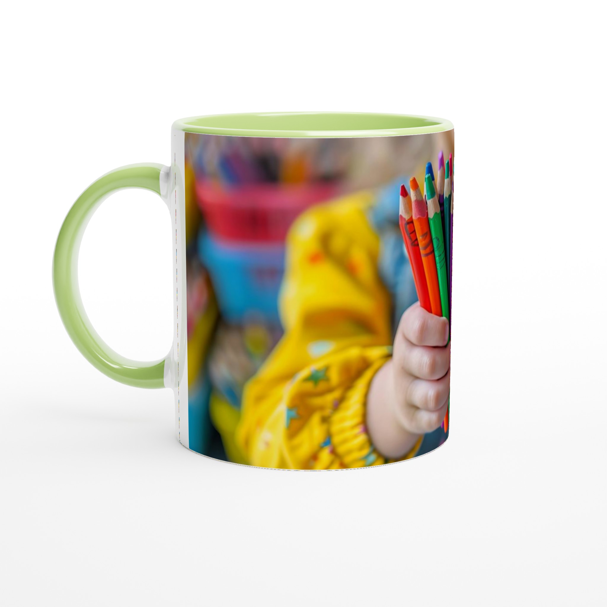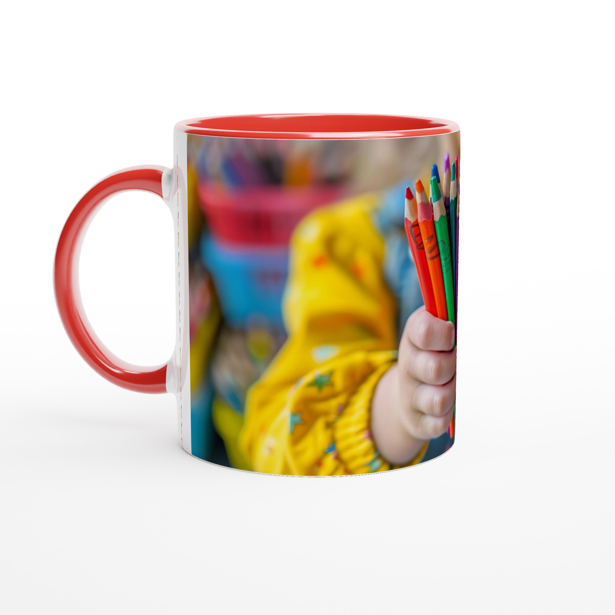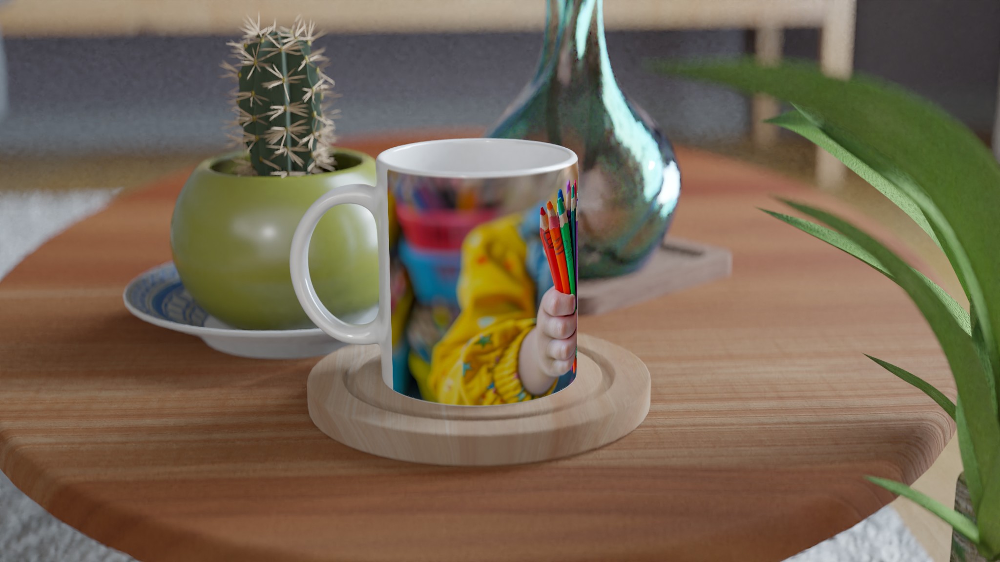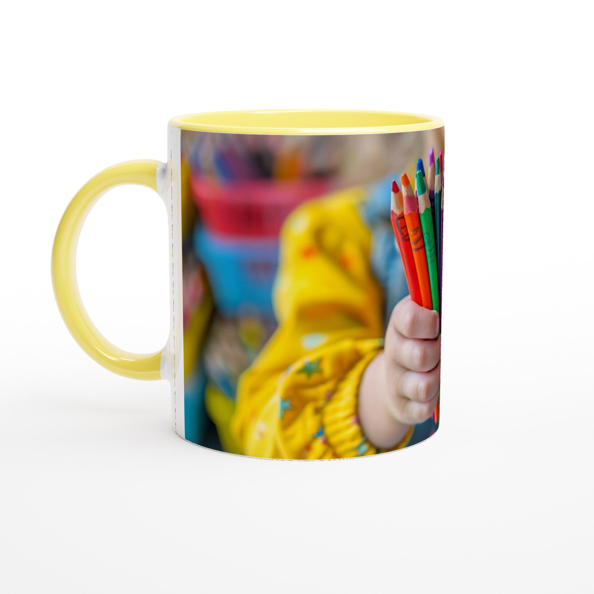 Låt din inre konstnär blomstra varje gång du tar en klunk! Inspirerad av livfulla färgpennor och glädjen i att skapa, blir denna stilrena keramiska mugg snabbt en vardagsfavorit. Perfekt för morgonkaffet, kvällens varma choklad, eller när du bara vill njuta av en kopp te medan du planerar ditt nästa mästerverk. Den blanka vita ytan gör att trycken framhävs med klara och levande färger, som håller sig fina även efter många turer i mikron och diskmaskinen.
