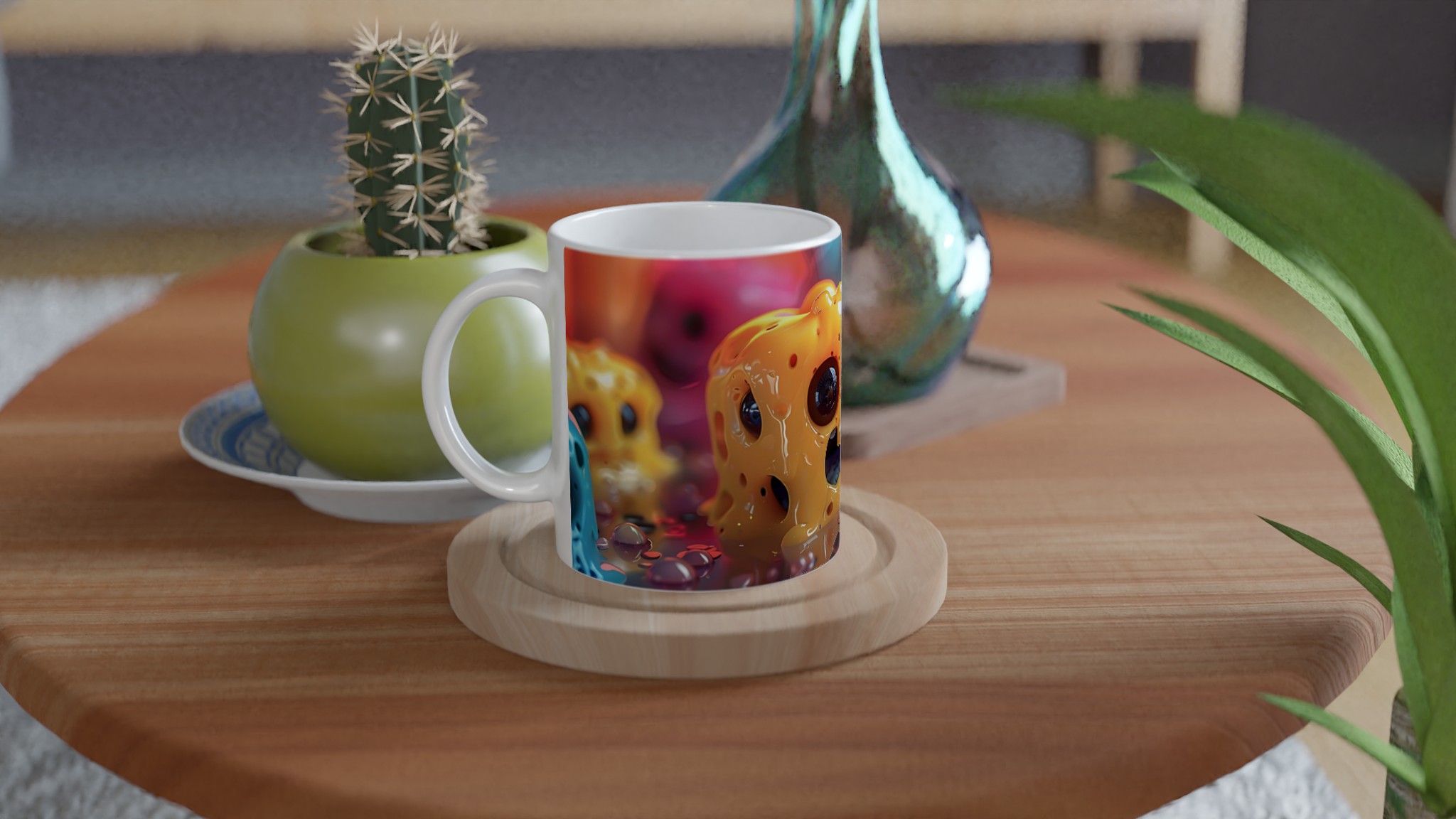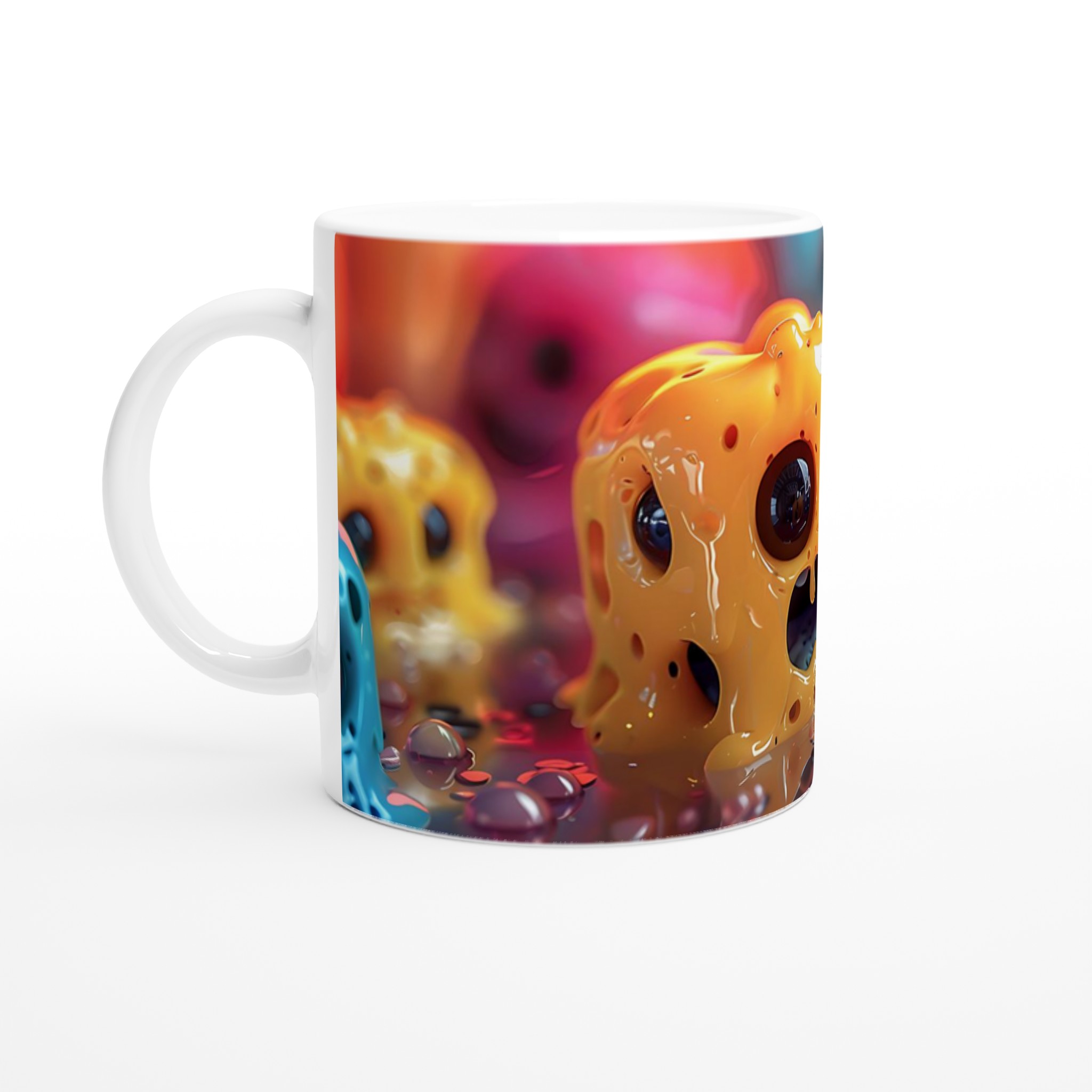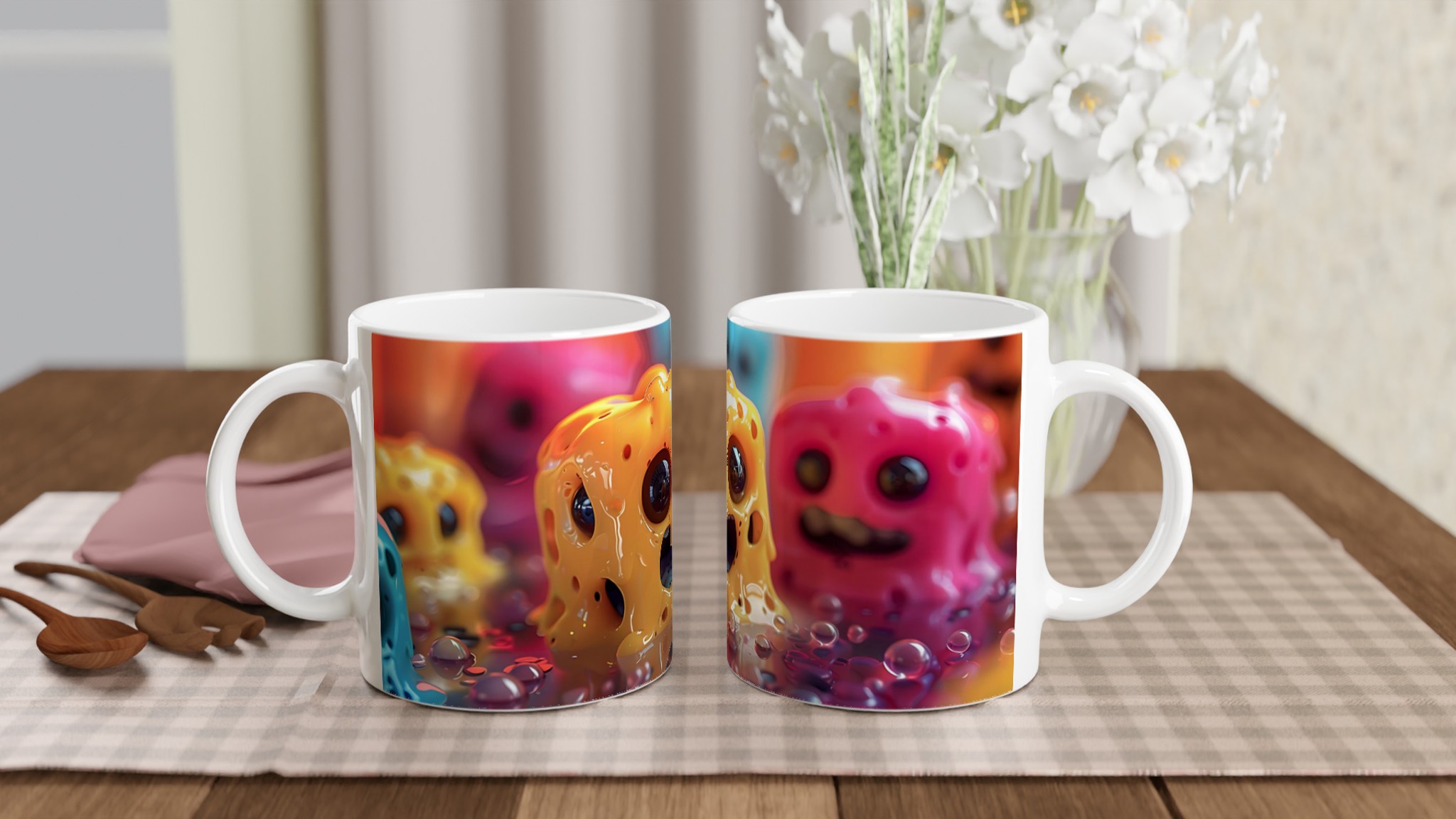 Lys upp din morgon med denna charmiga keramiska mugg, som tar en lekfull twist på vardagsfavoriten. Inspirerad av bilden, där glada, färgstarka karaktärer bubblar av liv, är denna mugg designad för att sprida glädje med sin blanka yta som framhäver tryck i klara, levande färger. Oavsett om det är för ditt morgonkaffe, en mysig kvällschoklad eller en lugn stund med te, kommer denna mugg att bli din nya favorit.