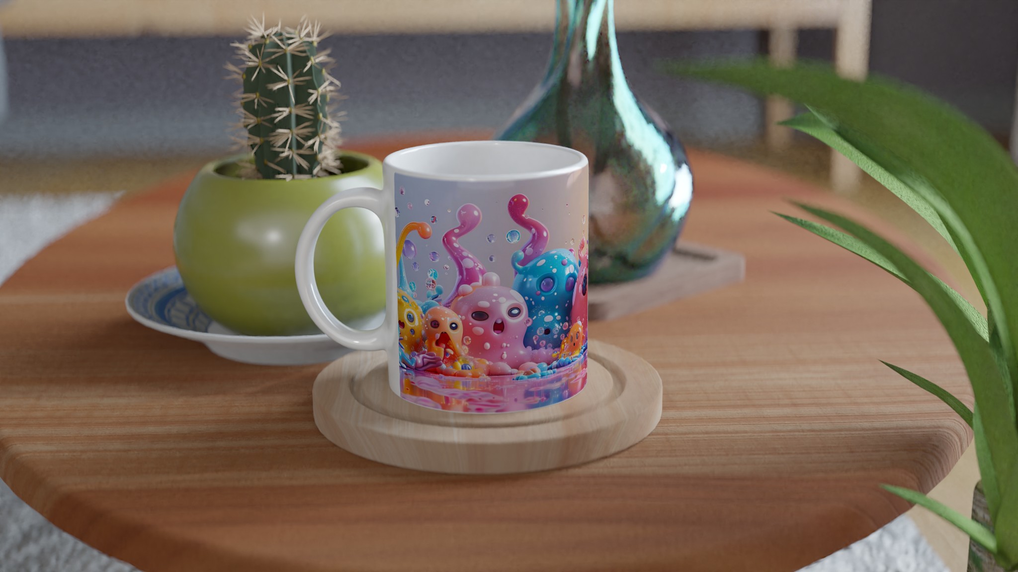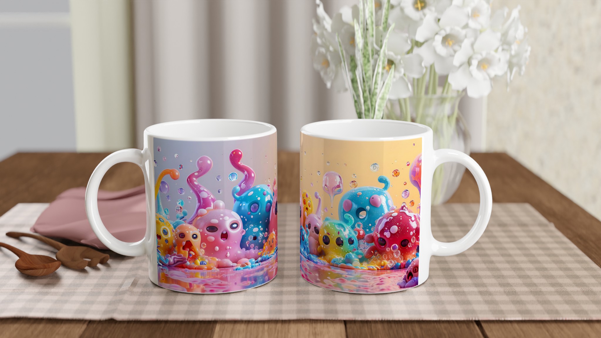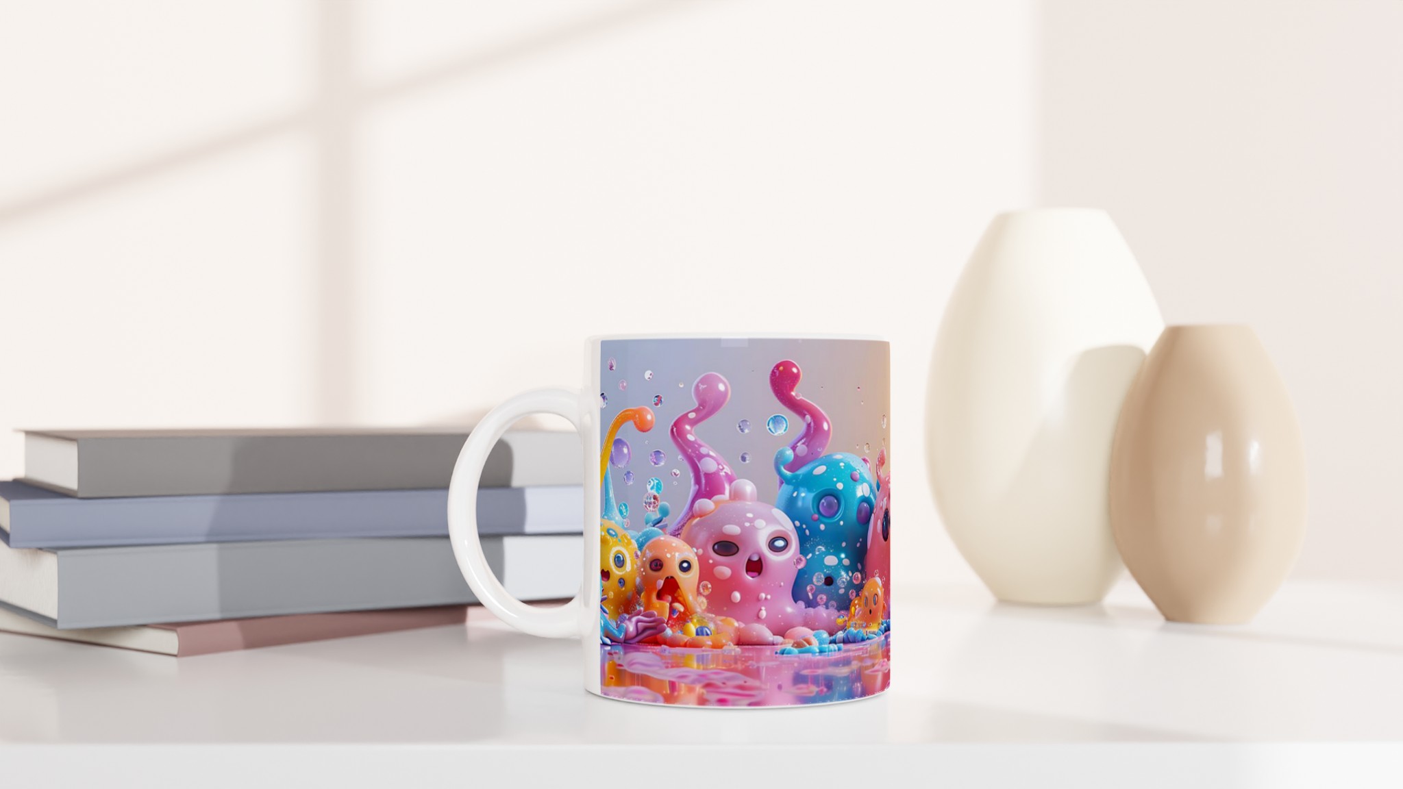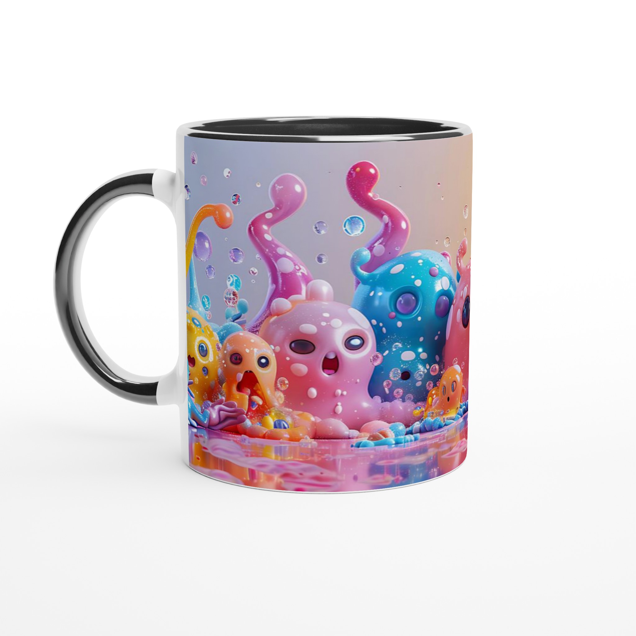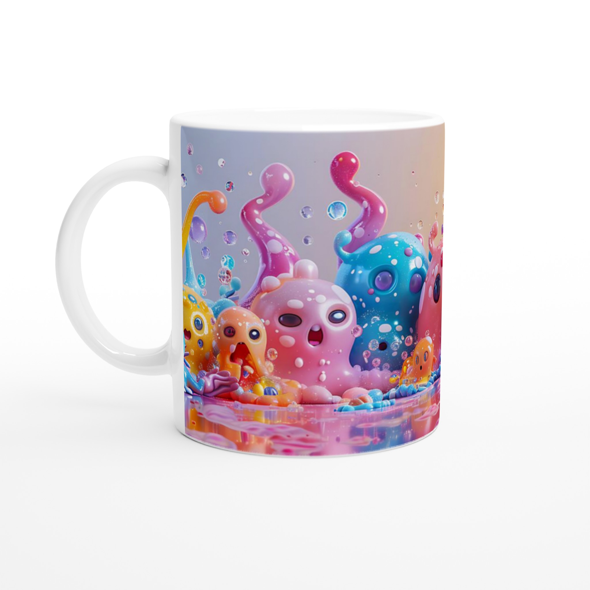 Lys upp din dag med vår färgglada keramiska mugg, dekorerad med fantasifulla, bläckfiskliknande varelser i en explosion av pastellfärger. Denna mugg är en hyllning till glädje och lekfullhet, perfekt för dig som älskar att addera en personlig och bubblig touch till dina dryckesstunder. Oavsett om det är morgonkaffet, kvällens varma choklad eller en lugn kopp te, förvandlar denna mugg varje sipp till en fest för sinnena.