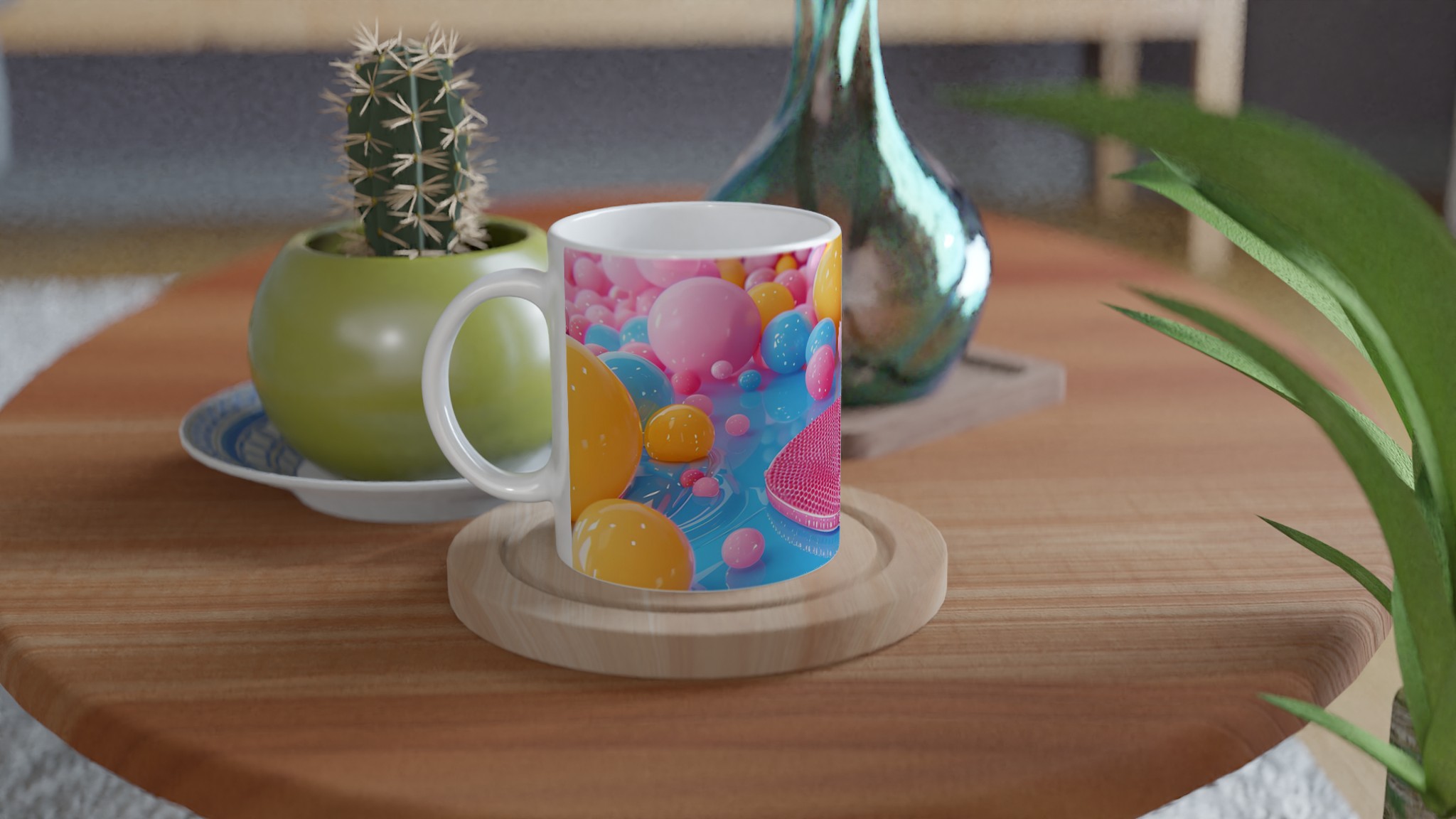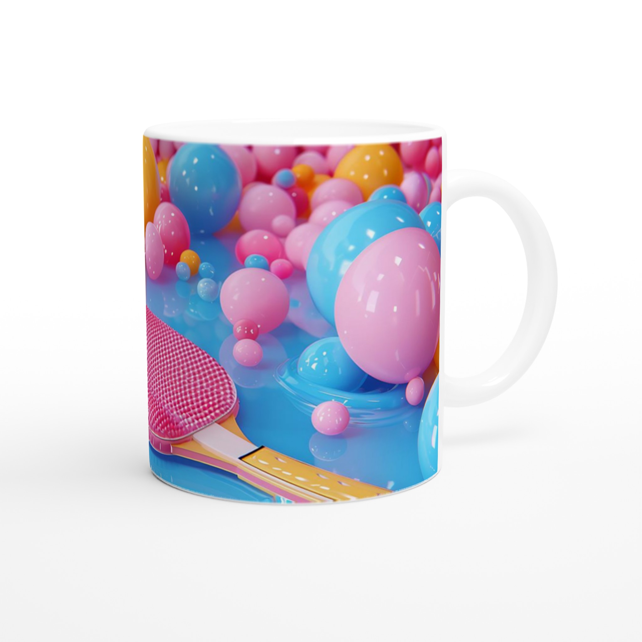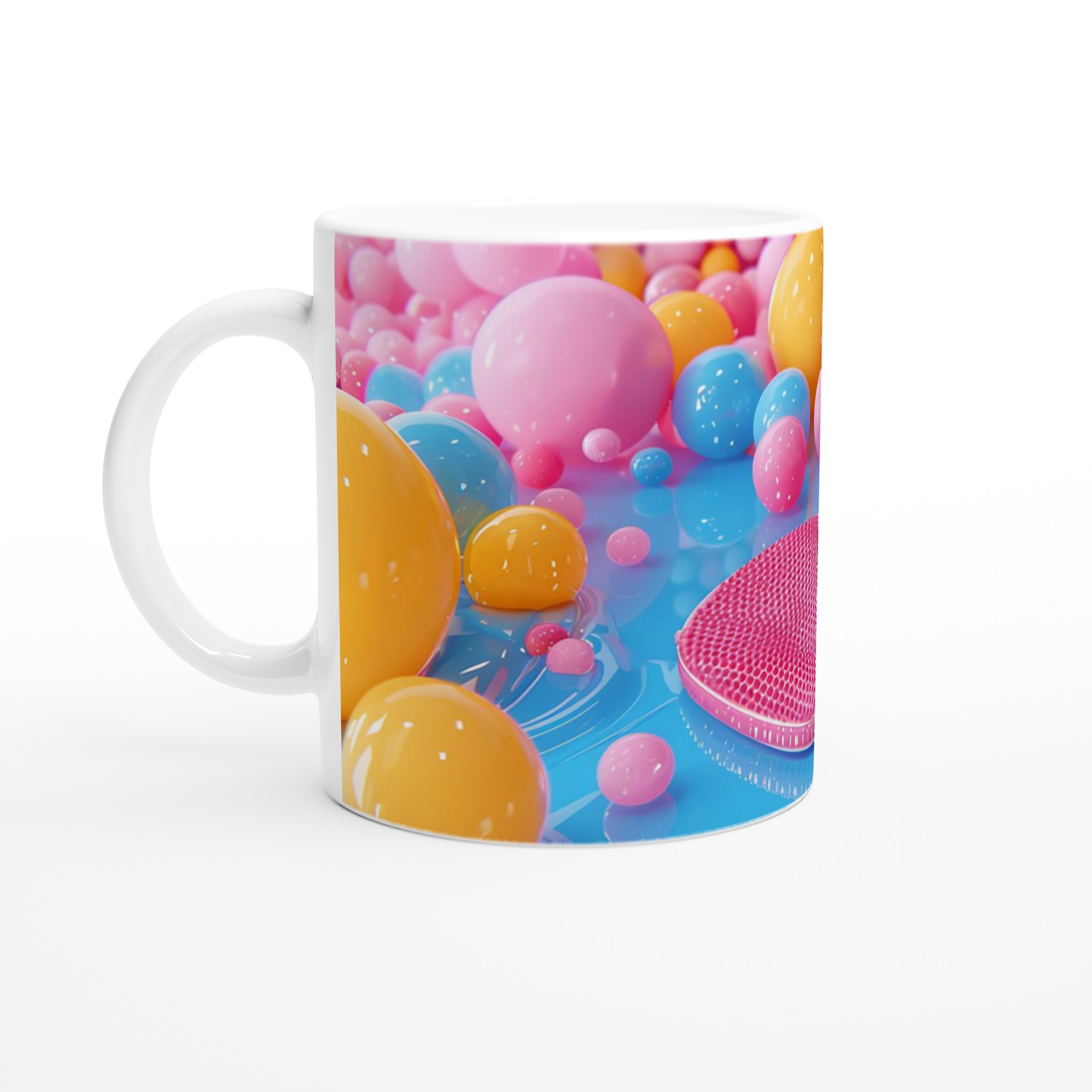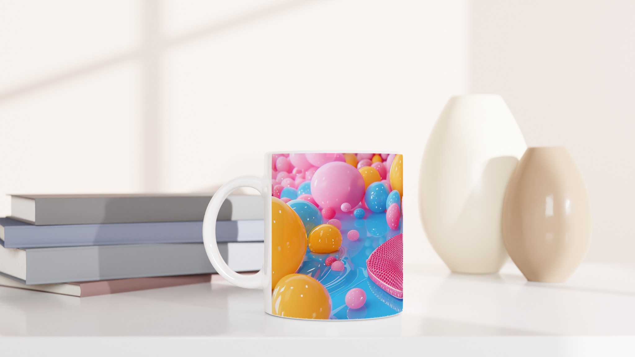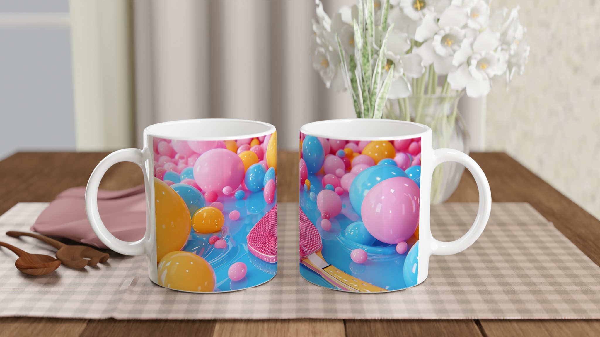 Den här stilrena keramiska muggen blir snabbt en vardagsfavorit. Perfekt för morgonkaffet, kvällens varma choklad eller när du bara vill njuta av en kopp te. Den blanka vita ytan gör att trycken framhävs med klara och levande färger, som håller sig fina även efter många turer i mikron och diskmaskinen.